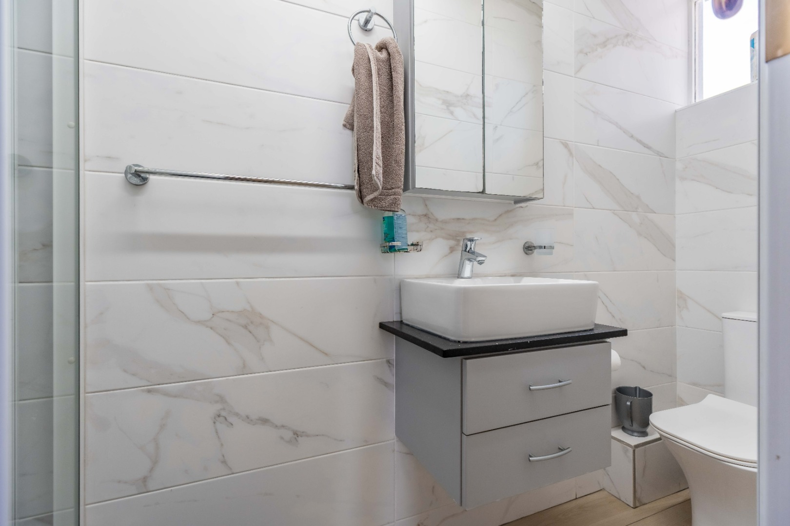 Situated on sought-after Essenwood Road, this well-maintained block offers convenience, comfort, and security. The property includes two parking spaces — one undercover and one open bay. The unit welcomes you with an open-plan kitchen featuring quartz countertops, built-in cupboards, a double sink, hob, oven, extractor, and plumbing for both a washing machine and dishwasher. The kitchen flows seamlessly into the dining and lounge area, filled with natural light and complemented by elegant laminate flooring.