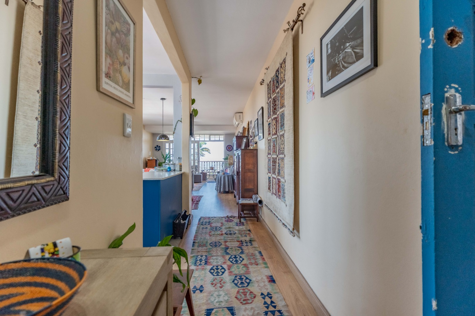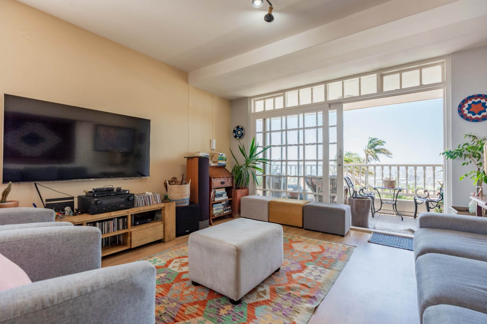 The lounge opens onto a spacious balcony — ideal for entertaining family and friends, or simply unwinding while enjoying the stunning sea views. The main bedroom is generously sized, with built-in cupboards and a modern ensuite bathroom fitted with a shower, toilet, and basin. The second bedroom also includes built-in cupboards, while the guest bathroom is stylishly finished and fully tiled.