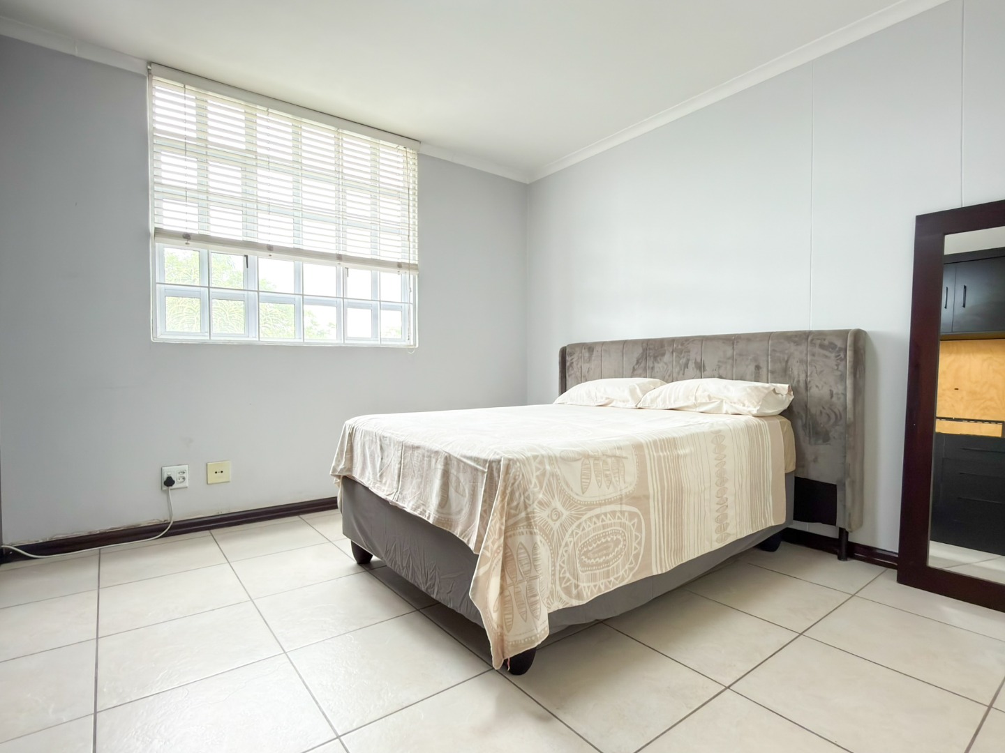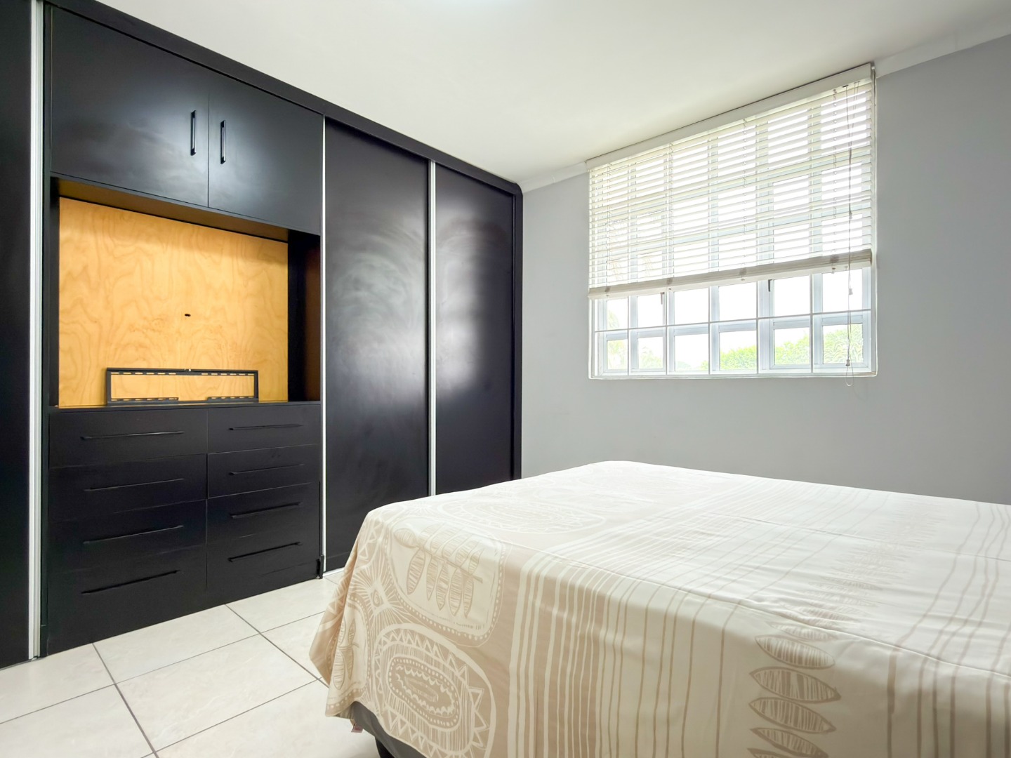There are two well-sized bedrooms, each with built-in cupboards. The main bedroom offers ample cupboard space and includes an en-suite bathroom.