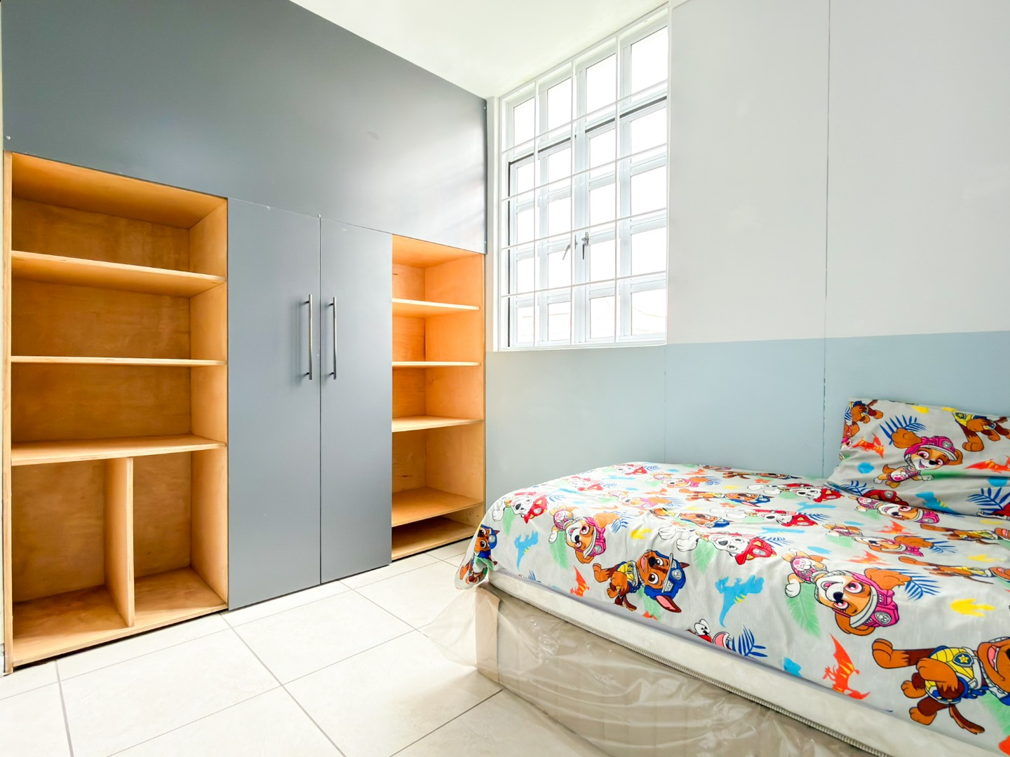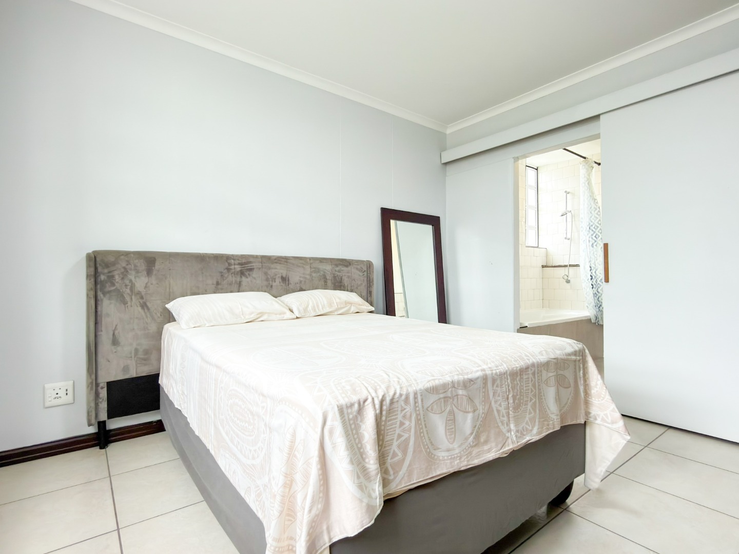 There are two well-sized bedrooms, each with built-in cupboards. The main bedroom offers ample cupboard space and includes an en-suite bathroom.