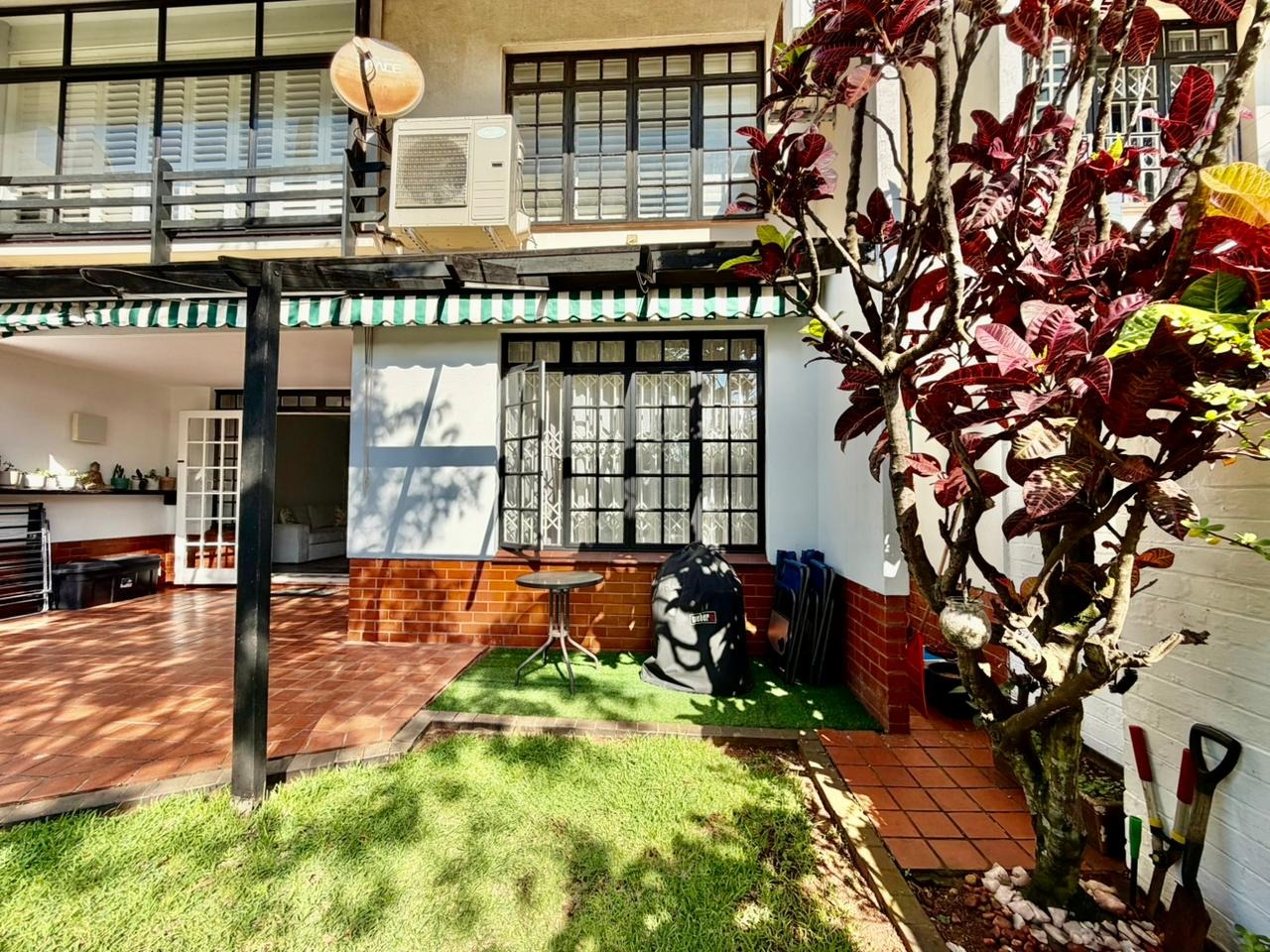 Security is paramount in this property, offering residents peace of mind with a comprehensive suite of features. These include 24-hour security, a dedicated security post, access gates, an intercom system, and robust security gates, all within a fenced perimeter. Practical amenities further enhance this home, with a single garage and an additional parking space provided. The property also benefits from a well-maintained garden area, contributing to the pleasant suburban ambiance.