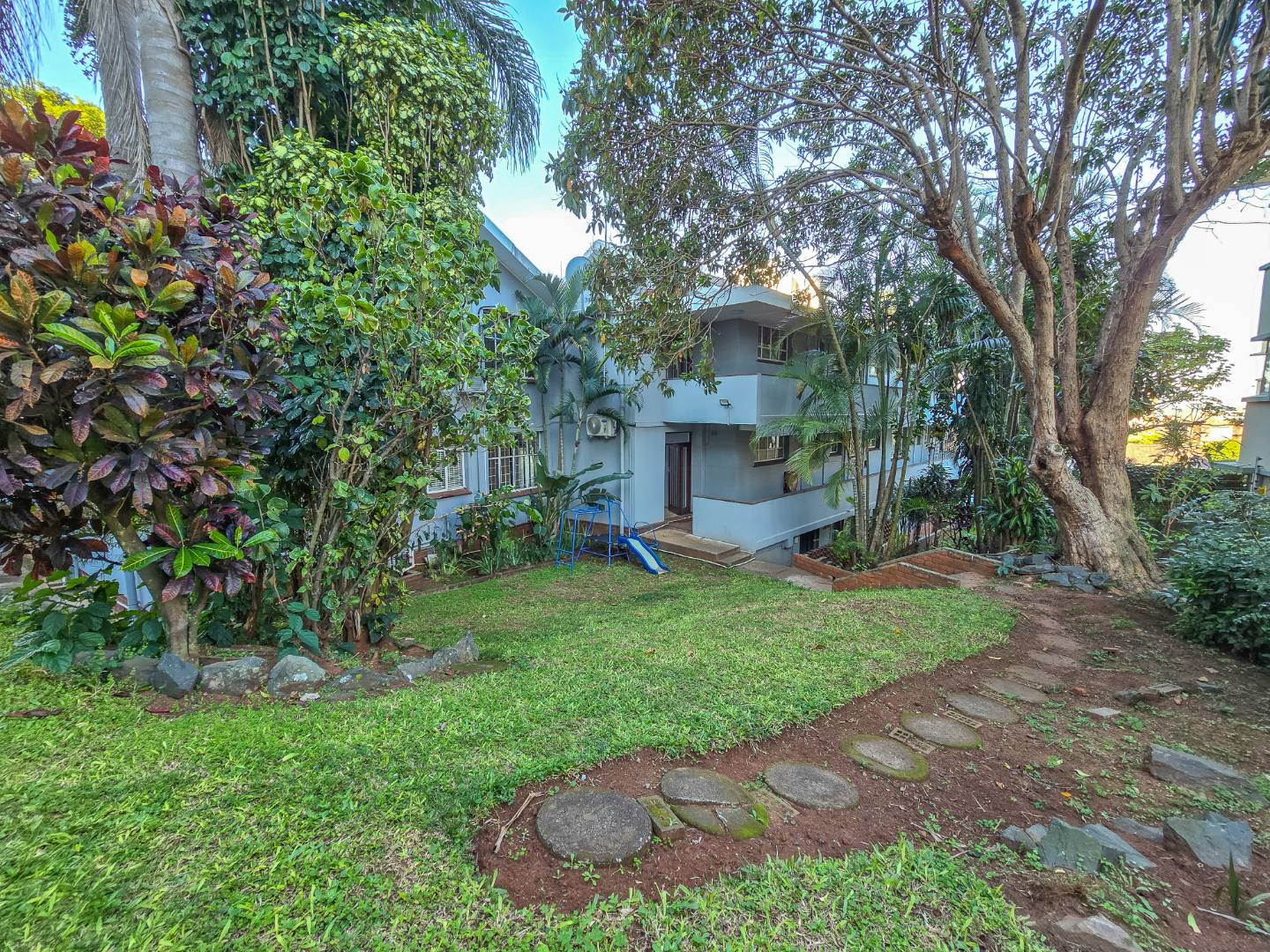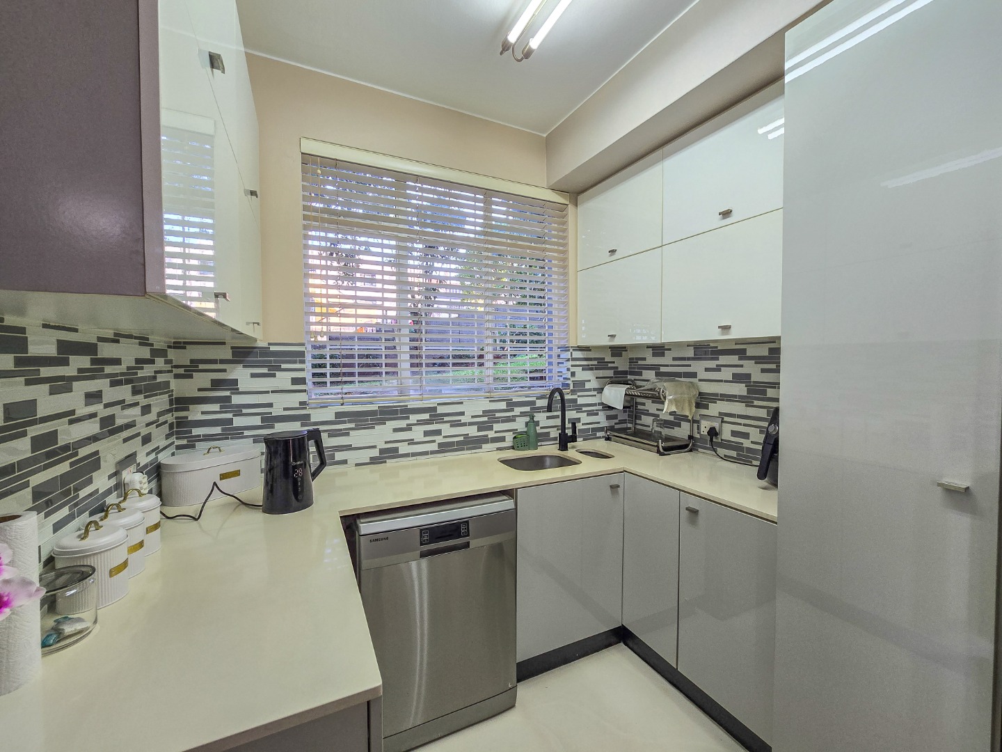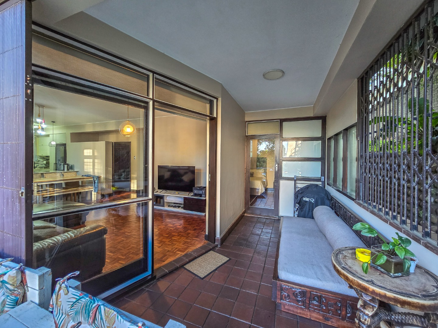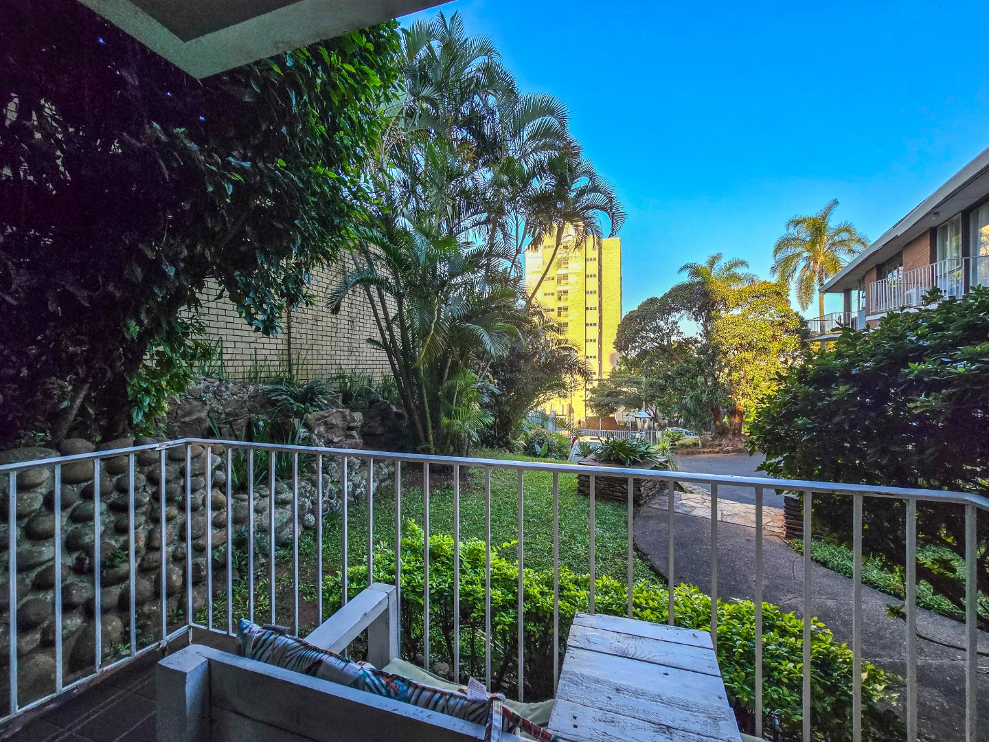 Step into this inviting 102 sqm apartment, offering a seamless open-plan design ideal for contemporary living in Essenwood, Durban. The heart of this home is its modern kitchen, boasting sleek gloss white and grey cabinetry, stainless steel appliances, and a stylish mosaic tile backsplash. A spacious island with an integrated oven and microwave, complemented by contemporary pendant lighting, creates a functional and aesthetic focal point. This culinary space flows effortlessly into the dining area and a comfortable lounge, all unified by attractive parquet wood flooring and abundant natural light from large windows and sliding doors. The residence features two well-appointed bedrooms, providing comfortable private retreats. The main bedroom benefits from an en-suite bathroom, offering convenience and privacy. A second bathroom serves the additional bedroom and guests, ensuring ample facilities. Air conditioning throughout the apartment guarantees comfort during Durban's warmer months. Enjoy the South African climate with direct access to an outdoor patio and multiple balconies, perfect for relaxation or entertaining. The property also includes a dedicated braai room, enhancing your outdoor living experience. Practical amenities are well-catered for with a single garage and two additional parking spaces, providing secure accommodation for vehicles within the complex. Security is paramount, with features such as an access gate, electric fencing, intercom system, and burglar bars providing peace of mind. The multi-story building presents a distinctive red brick facade with large windows, offering a welcoming kerb appeal. Fibre connectivity is available, ensuring high-speed internet access. Located in the desirable Essenwood suburb of Durban, this property offers convenient access to local amenities and urban conveniences. Key Features: * 2 Bedrooms, 2 Bathrooms (1 En-suite) * Modern Open-Plan Kitchen * Spacious Lounge & Dining Area * Private Patio & Balconies * Dedicated Braai Room * 1 Garage & 2 Additional Parkings * Air Conditioning * Fibre Ready * Enhanced Security Features