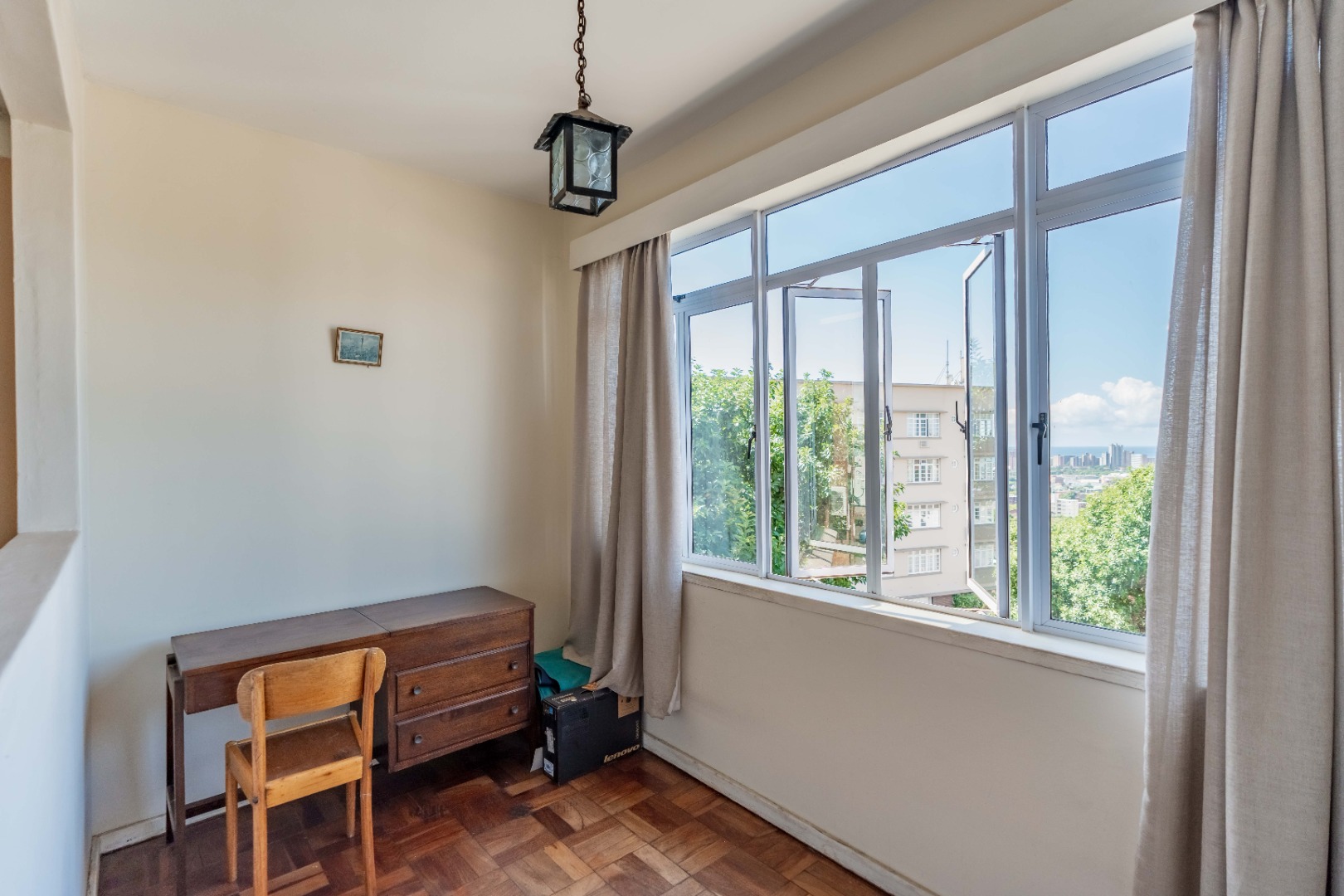Discover this inviting residential property located in the sought-after suburban area of Essenwood, Durban. This apartment presents a wonderful opportunity for comfortable living, featuring two well-proportioned bedrooms the main bedroom has an extra half bed which can be used as home office or play area for young kids. The two bathrooms are also a main draw card , the 1st bathroom has a bath/shower , toilet and basin and a convenient en-suite with shower , toilet and basin. Enjoy the added benefit of captivating sea views, providing a serene backdrop to your daily life.