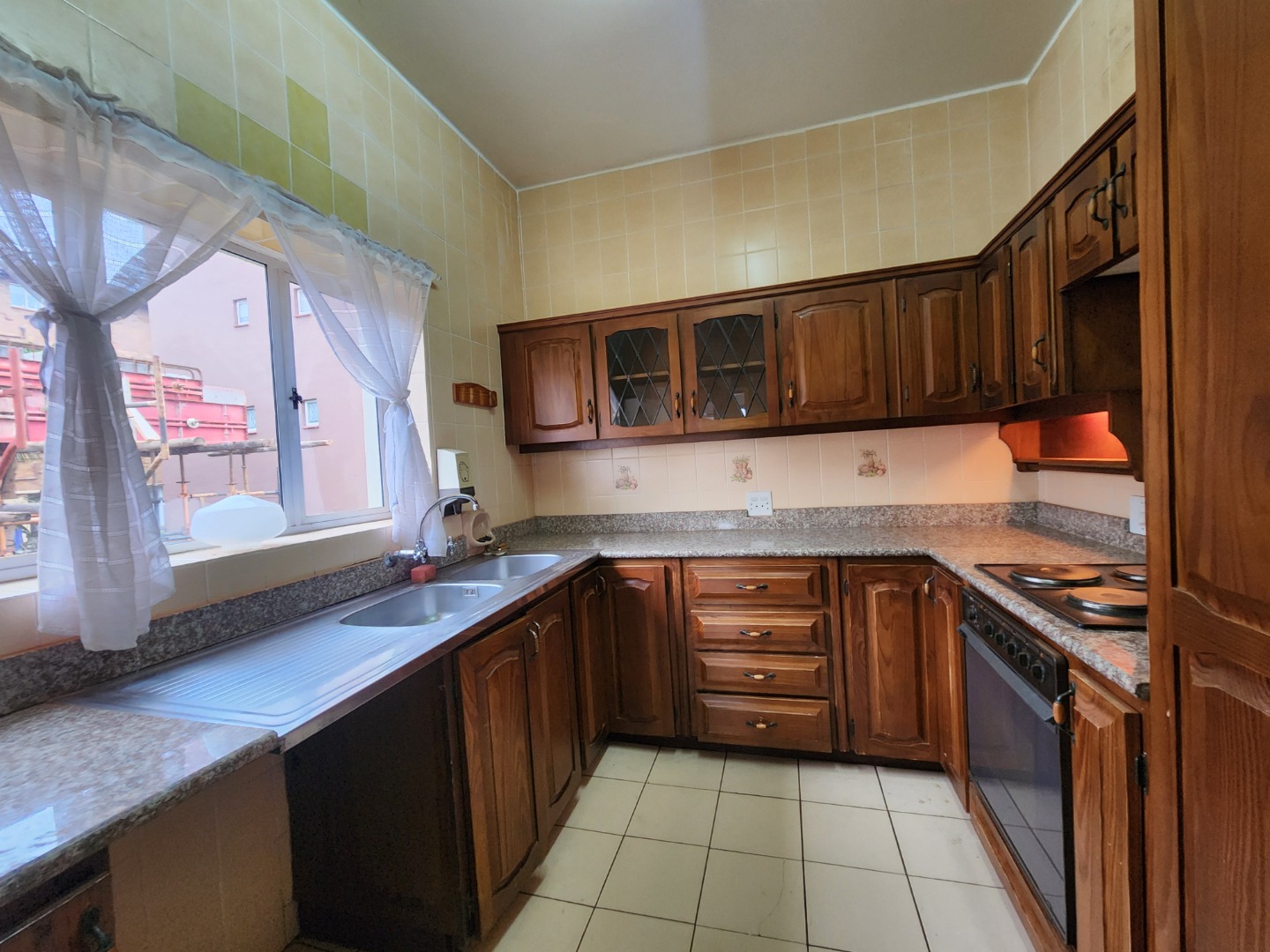 Located on the 1st floor of a well-maintained building, the apartment boasts a spacious layout with a modern granite kitchen featuring ample cupboard space—perfect for those who love to cook and entertain.