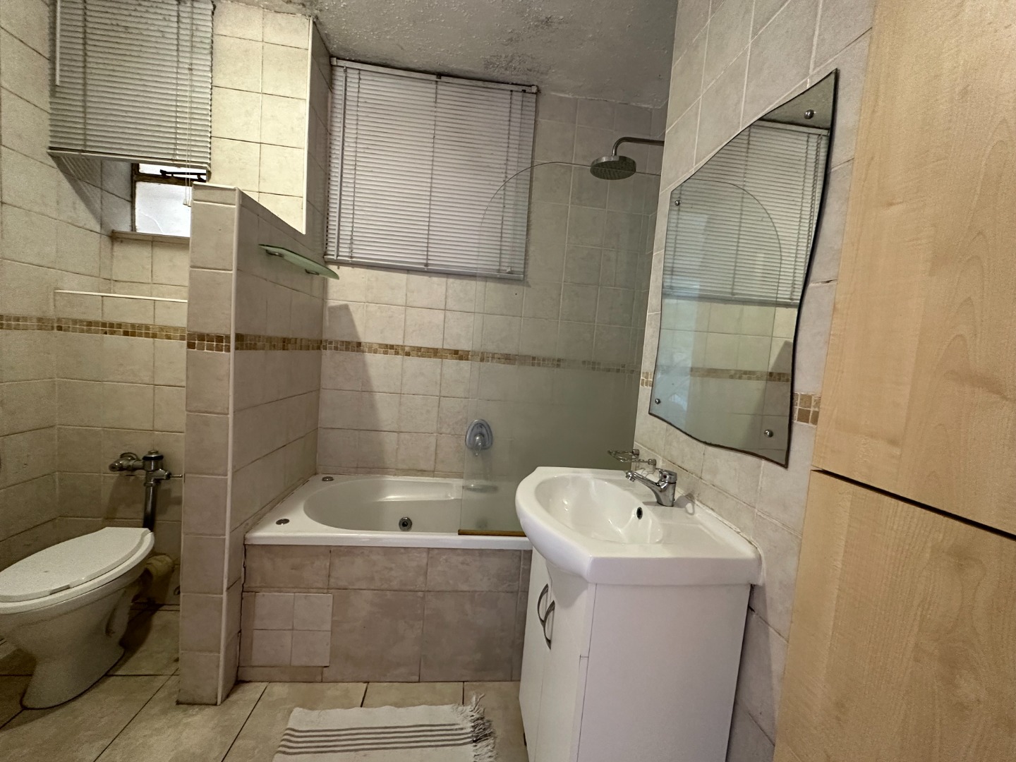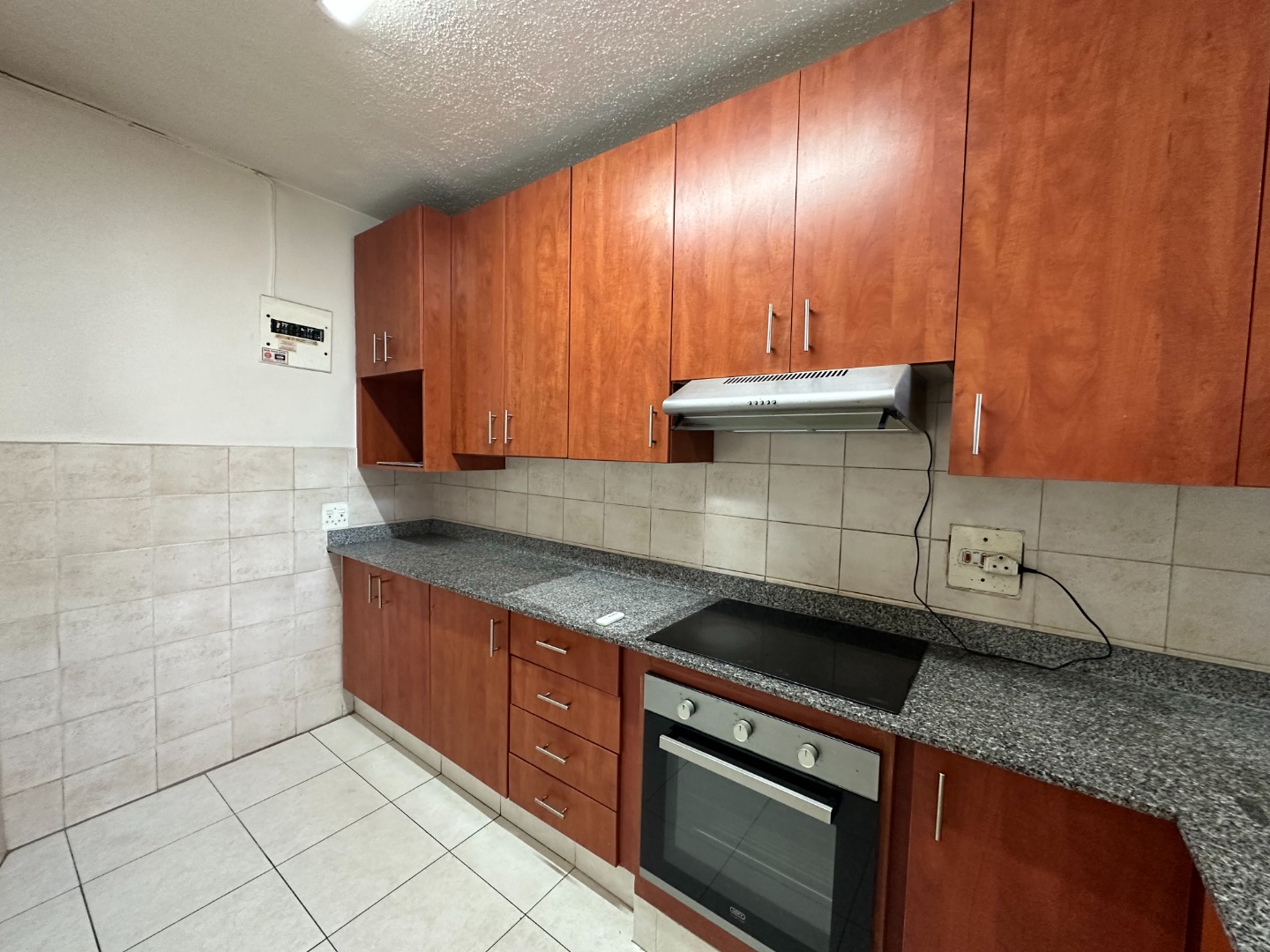The apartment boasts two generously sized bedrooms, both equipped with built-in cupboards and adorned with exquisite tiling. A beautifully appointed bathroom, complete with modern fixtures and a toilet, adds to the overall appeal. The kitchen featuring tastefully designed built-in cupboards and a gas stove, making meal preparation a breeze and granite counter tops with double basin sink.