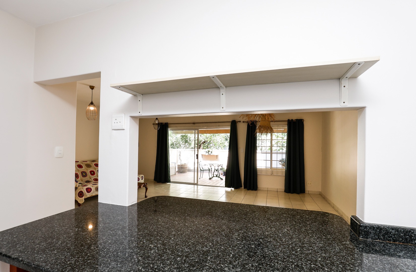 The kitchen is equipped with a built-in stove and oven, complemented by an extractor. Granite countertops and a double sink.