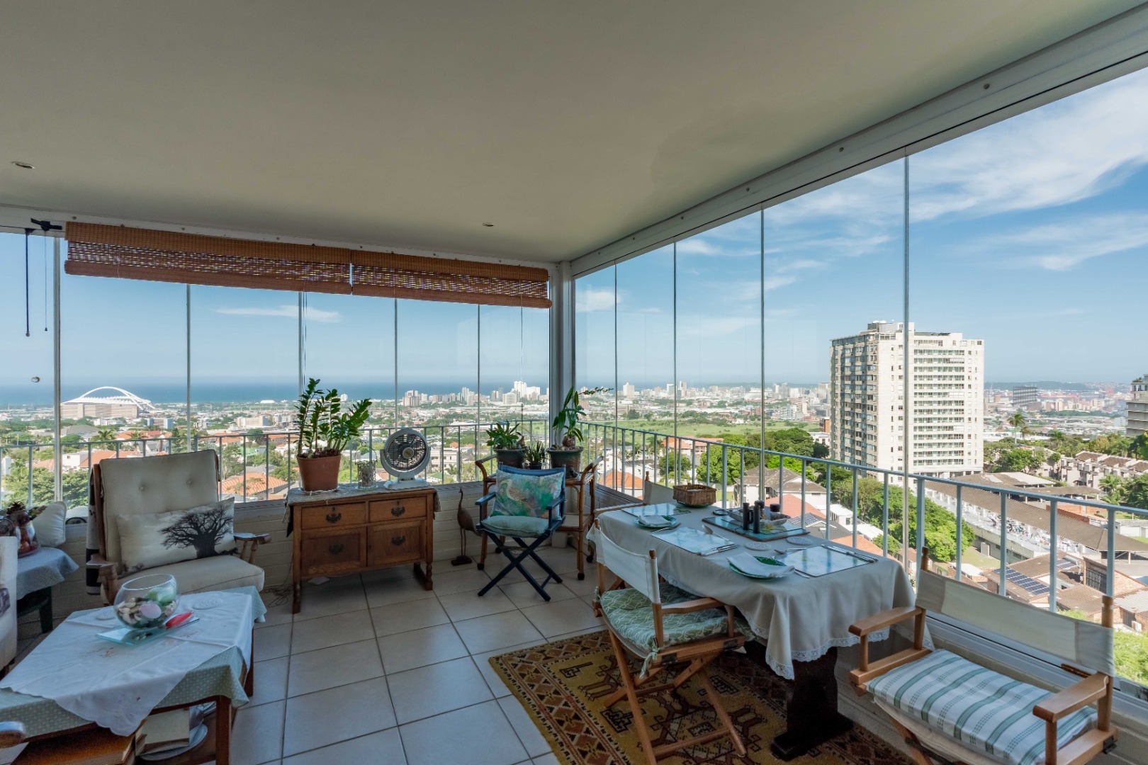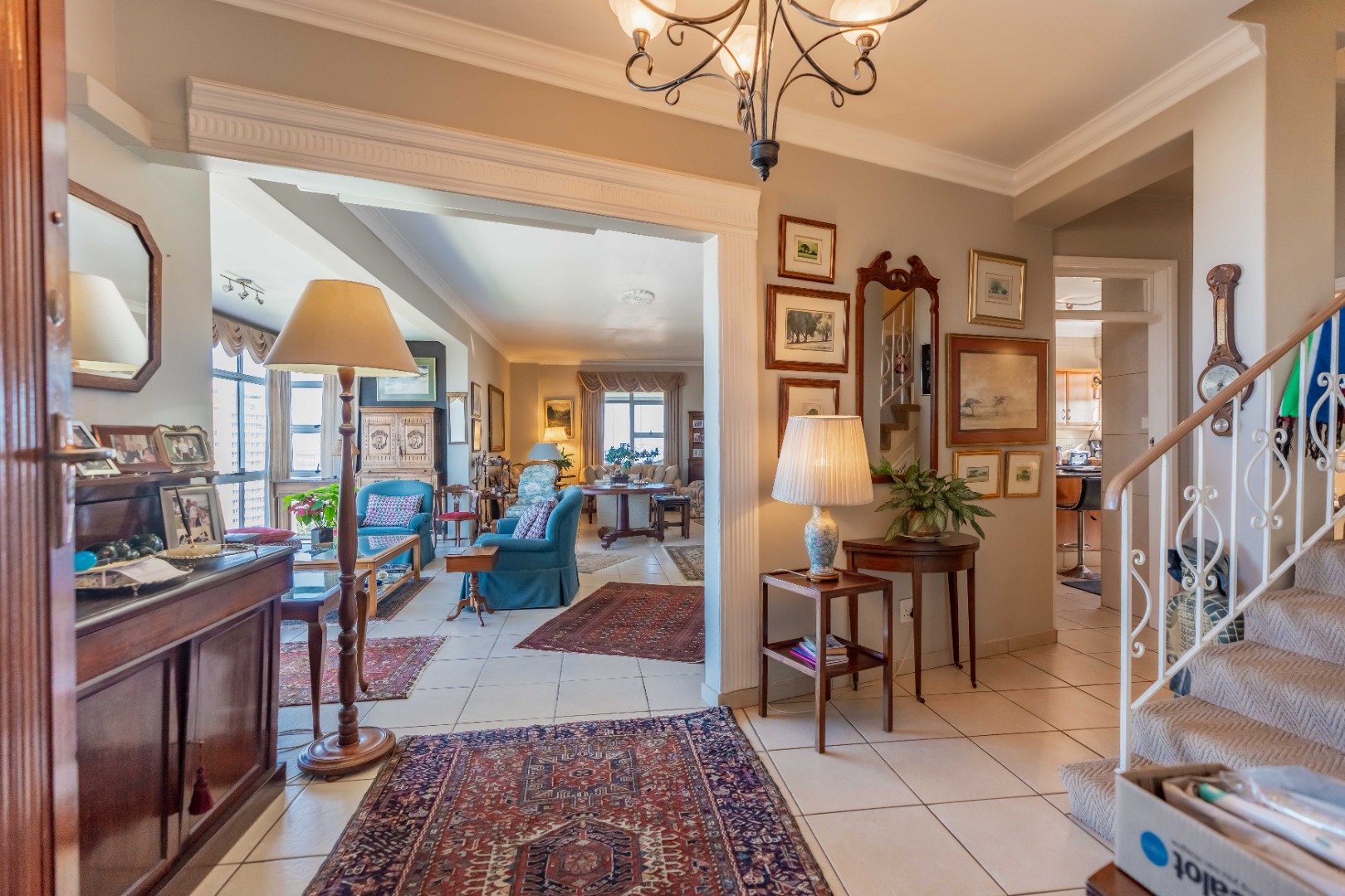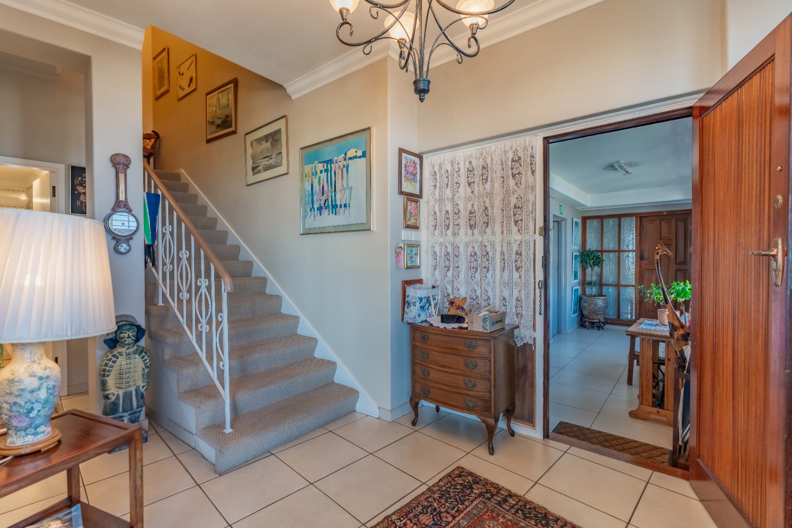 On entry, you’re welcomed into a generous formal lounge that opens onto a balcony—perfect for soaking in the views. The lounge, which has two seating areas, flows seamlessly into a large dining area, study and an enclosed sunroom with folding glass windows. A guest loo is conveniently located downstairs.