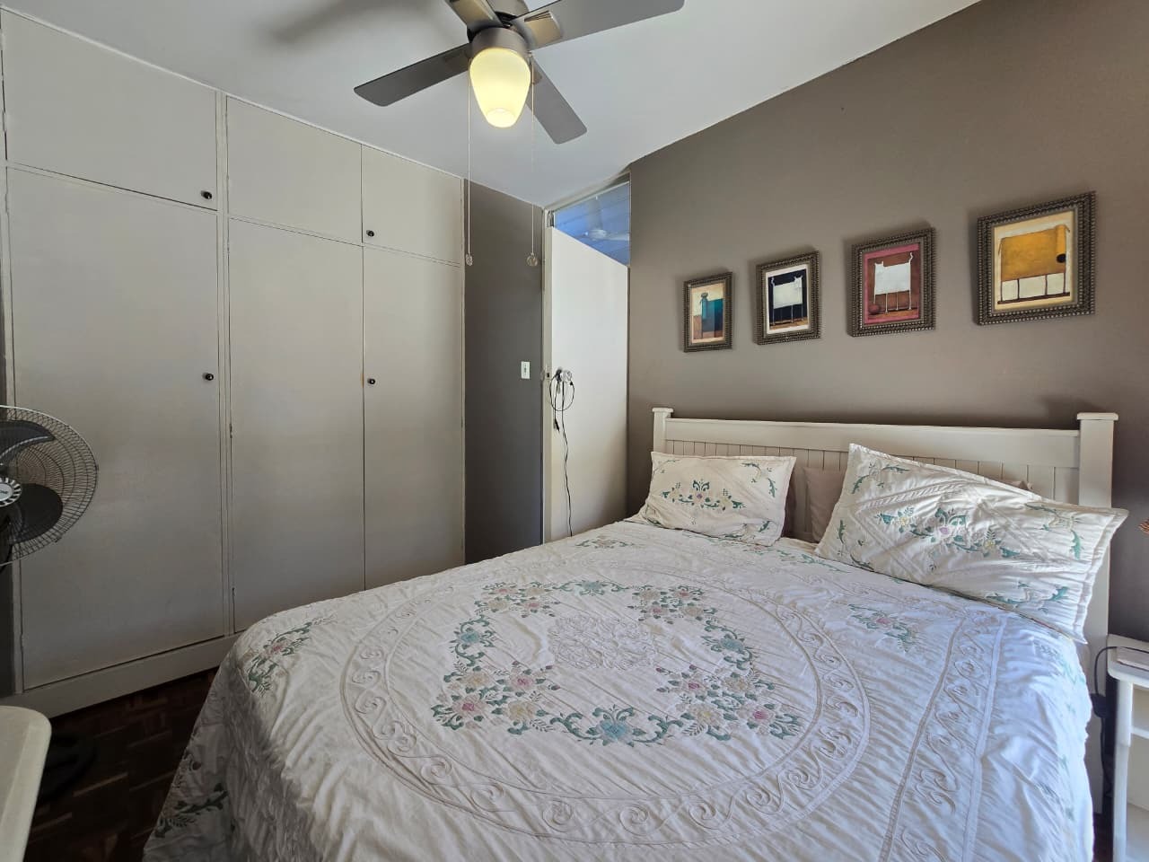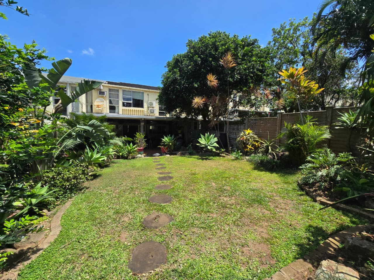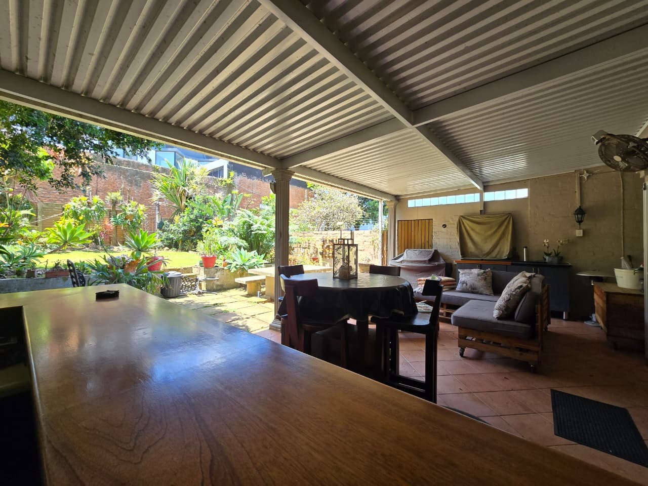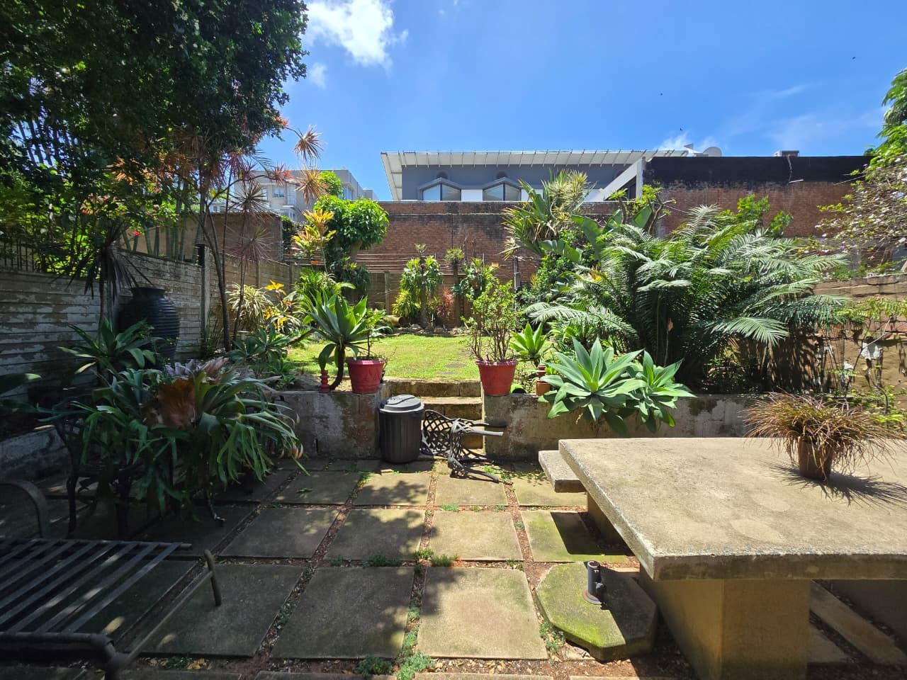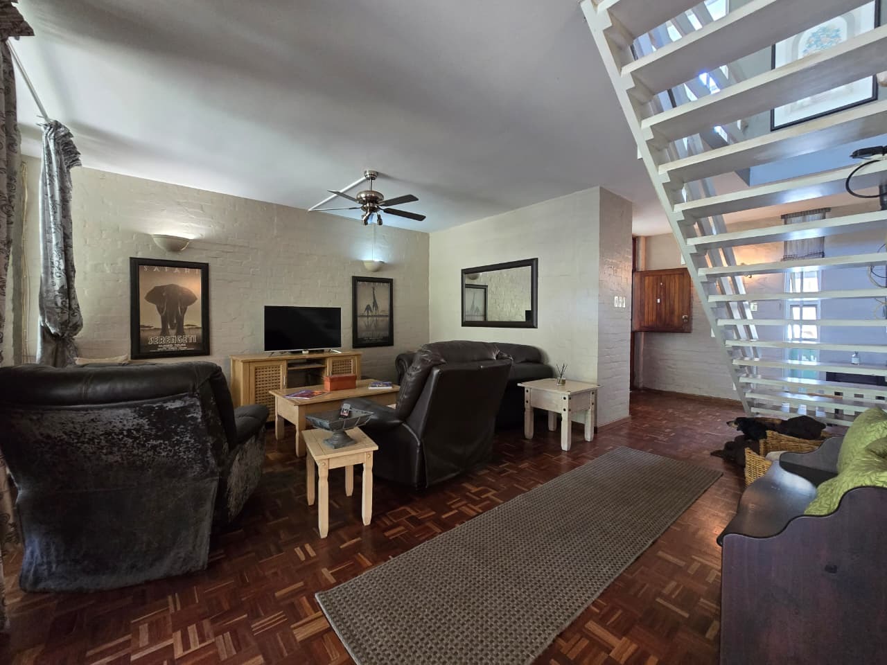 Discover comfortable suburban living in this 140 sqm residence located within a secure complex in Essenwood, Durban. This furnished 3-bedroom, 2.5-bathroom home offers a practical and inviting layout, ideal for those seeking convenience and security. The open-plan design seamlessly connects the living and dining areas, featuring classic parquet flooring and painted brick walls that add character. Ceiling fans ensure comfort, while large windows and glass doors provide ample natural light and direct access to a private garden area, complete with an awning for outdoor enjoyment. The functional kitchen boasts light-colored cabinetry, dark granite countertops, and dark tiled flooring, flowing effortlessly into the dining space, which also includes a breakfast bar. A built-in bar enhances the entertainment potential of the main living area. The property includes three well-proportioned bedrooms and 2.5 bathrooms, with a compact yet functional powder room on the lower level. Air conditioning is installed for climate control. Security is paramount within this complex, offering 24-hour security, an access gate, electric fencing, and an intercom system, ensuring peace of mind. The property is pet-friendly and features a fenced garden, paving, and a driveway leading to a dedicated parking space. Fibre connectivity is available, catering to modern lifestyle needs. Essenwood is a well-established Durban suburb known for its residential appeal and convenient access to local amenities. Key Features: * 3 Bedrooms, 2.5 Bathrooms * 140 sqm Floor Size * Open-Plan Living & Dining * Furnished Property * Secure Complex with 24-Hour Security * Fibre Connectivity * Pet-Friendly with Garden * Air Conditioning