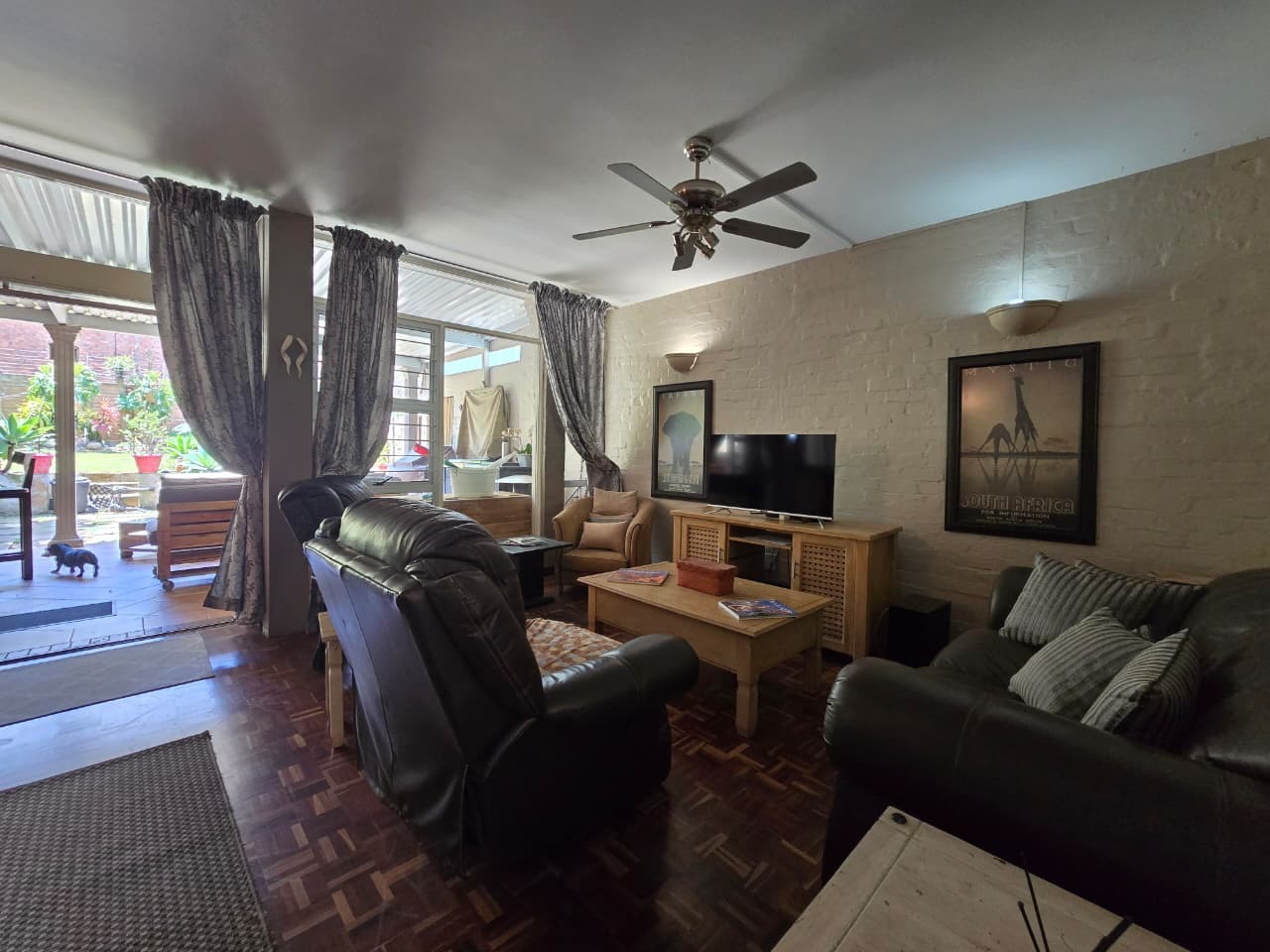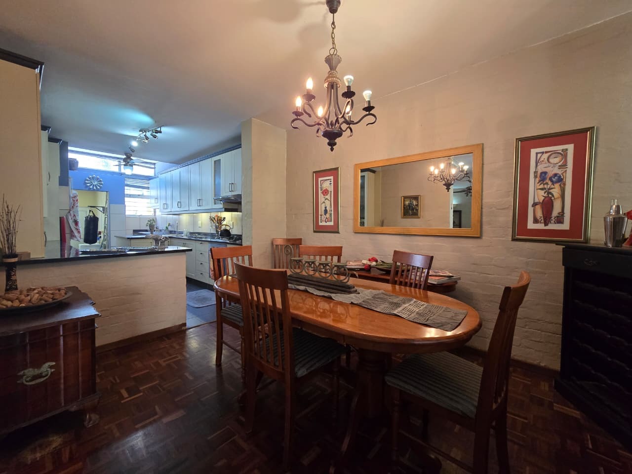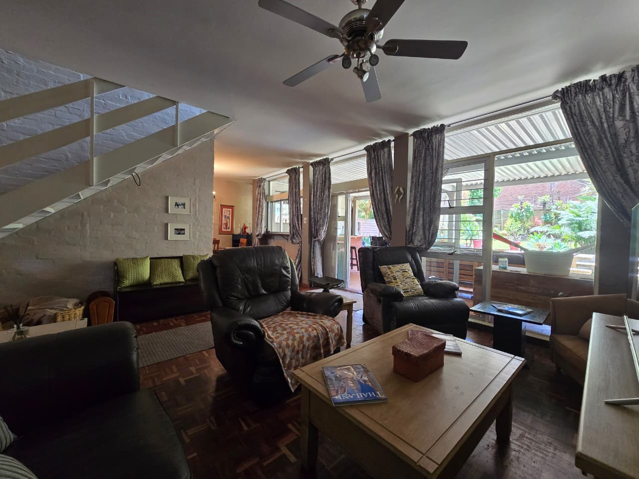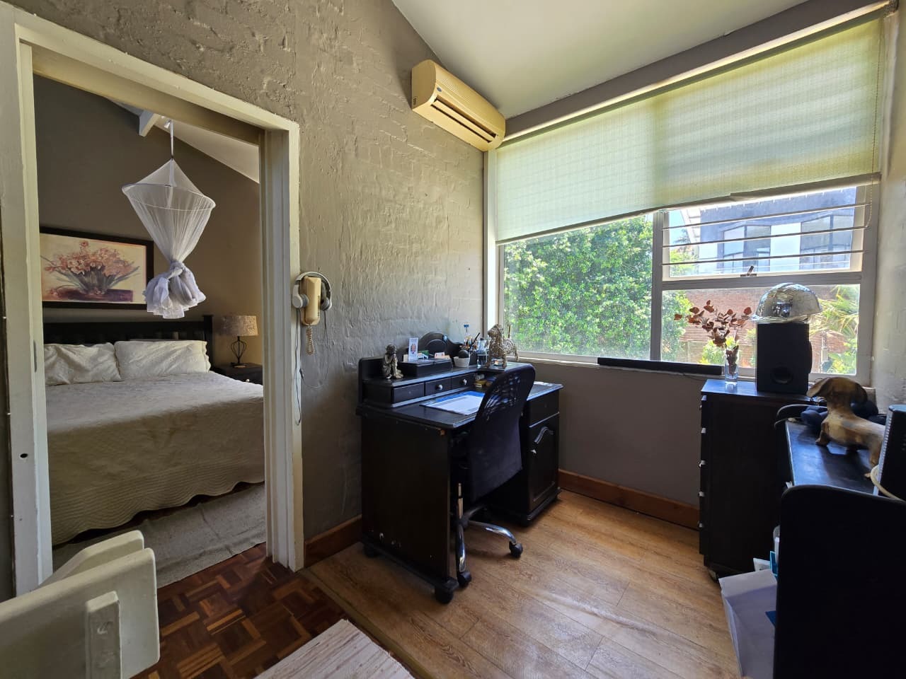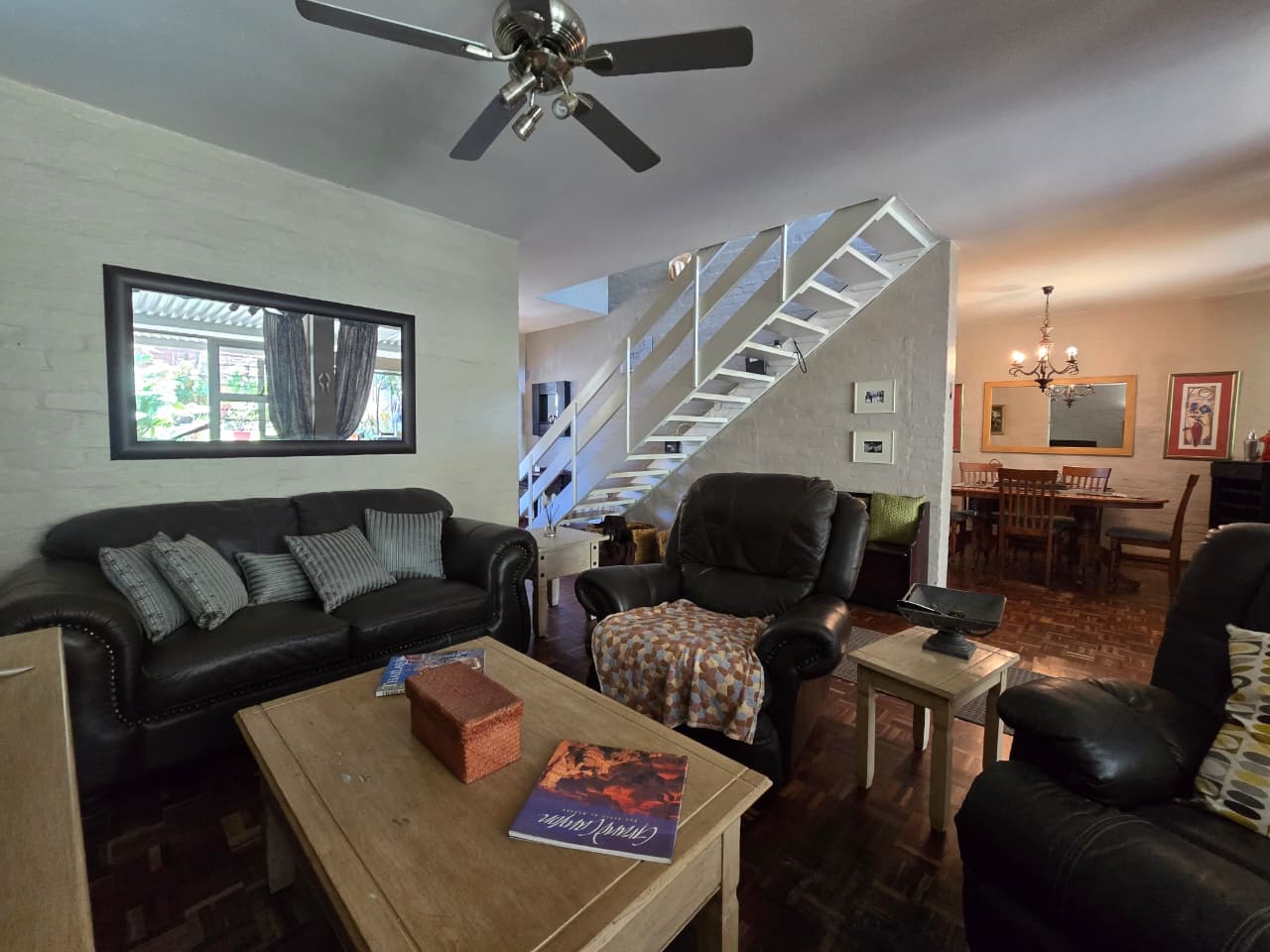 Discover comfortable suburban living in this 140 sqm residence located within a secure complex in Essenwood, Durban. This furnished 3-bedroom, 2.5-bathroom home offers a practical and inviting layout, ideal for those seeking convenience and security. The open-plan design seamlessly connects the living and dining areas, featuring classic parquet flooring and painted brick walls that add character. Ceiling fans ensure comfort, while large windows and glass doors provide ample natural light and direct access to a private garden area, complete with an awning for outdoor enjoyment. The functional kitchen boasts light-colored cabinetry, dark granite countertops, and dark tiled flooring, flowing effortlessly into the dining space, which also includes a breakfast bar. A built-in bar enhances the entertainment potential of the main living area. The property includes three well-proportioned bedrooms and 2.5 bathrooms, with a compact yet functional powder room on the lower level. Air conditioning is installed for climate control. Security is paramount within this complex, offering 24-hour security, an access gate, electric fencing, and an intercom system, ensuring peace of mind. The property is pet-friendly and features a fenced garden, paving, and a driveway leading to a dedicated parking space. Fibre connectivity is available, catering to modern lifestyle needs. Essenwood is a well-established Durban suburb known for its residential appeal and convenient access to local amenities. Key Features: * 3 Bedrooms, 2.5 Bathrooms * 140 sqm Floor Size * Open-Plan Living & Dining * Furnished Property * Secure Complex with 24-Hour Security * Fibre Connectivity * Pet-Friendly with Garden * Air Conditioning