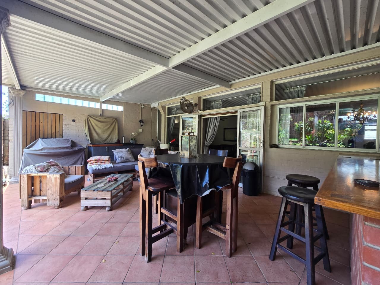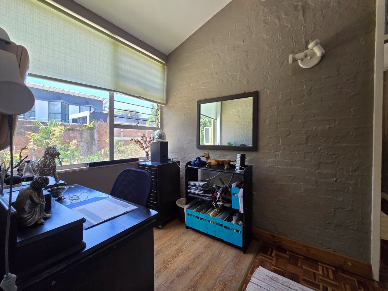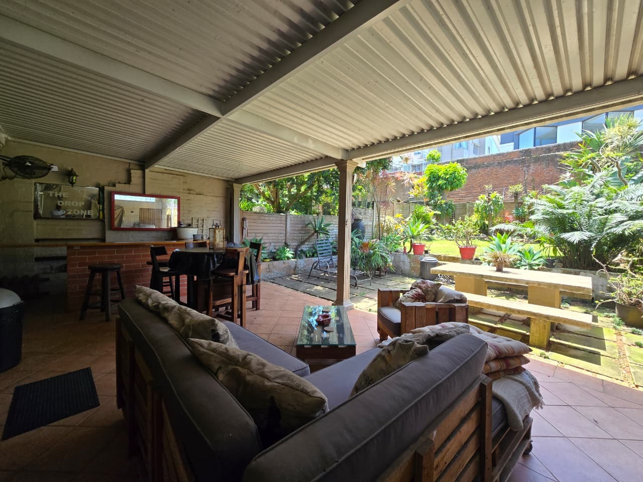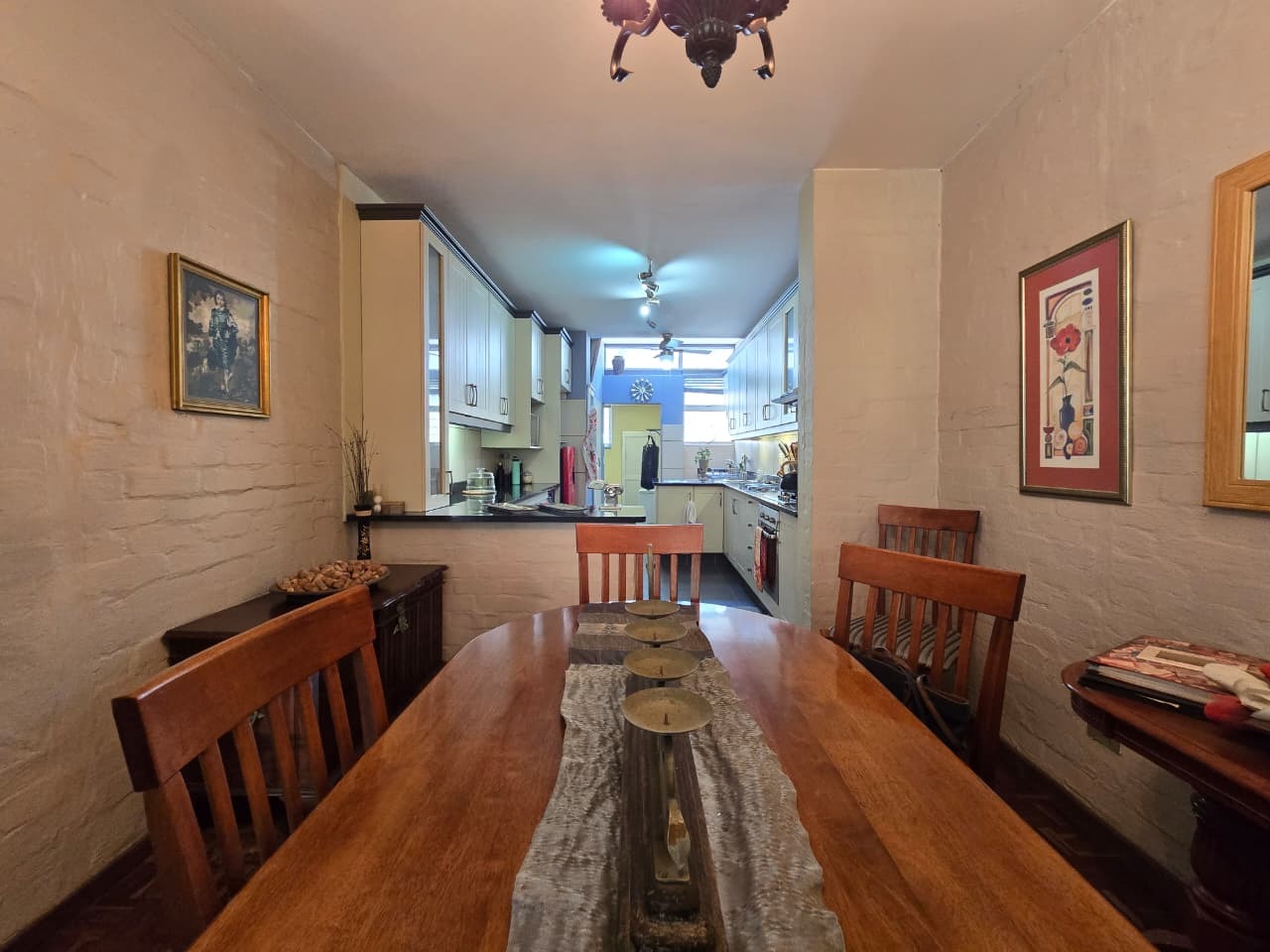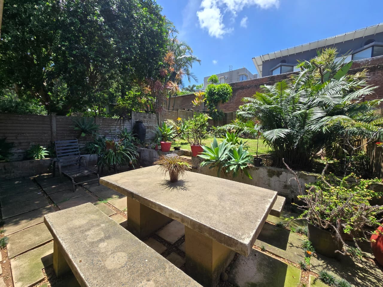 Discover comfortable suburban living in this 140 sqm residence located within a secure complex in Essenwood, Durban. This furnished 3-bedroom, 2.5-bathroom home offers a practical and inviting layout, ideal for those seeking convenience and security. The open-plan design seamlessly connects the living and dining areas, featuring classic parquet flooring and painted brick walls that add character. Ceiling fans ensure comfort, while large windows and glass doors provide ample natural light and direct access to a private garden area, complete with an awning for outdoor enjoyment. The functional kitchen boasts light-colored cabinetry, dark granite countertops, and dark tiled flooring, flowing effortlessly into the dining space, which also includes a breakfast bar. A built-in bar enhances the entertainment potential of the main living area. The property includes three well-proportioned bedrooms and 2.5 bathrooms, with a compact yet functional powder room on the lower level. Air conditioning is installed for climate control. Security is paramount within this complex, offering 24-hour security, an access gate, electric fencing, and an intercom system, ensuring peace of mind. The property is pet-friendly and features a fenced garden, paving, and a driveway leading to a dedicated parking space. Fibre connectivity is available, catering to modern lifestyle needs. Essenwood is a well-established Durban suburb known for its residential appeal and convenient access to local amenities. Key Features: * 3 Bedrooms, 2.5 Bathrooms * 140 sqm Floor Size * Open-Plan Living & Dining * Furnished Property * Secure Complex with 24-Hour Security * Fibre Connectivity * Pet-Friendly with Garden * Air Conditioning
