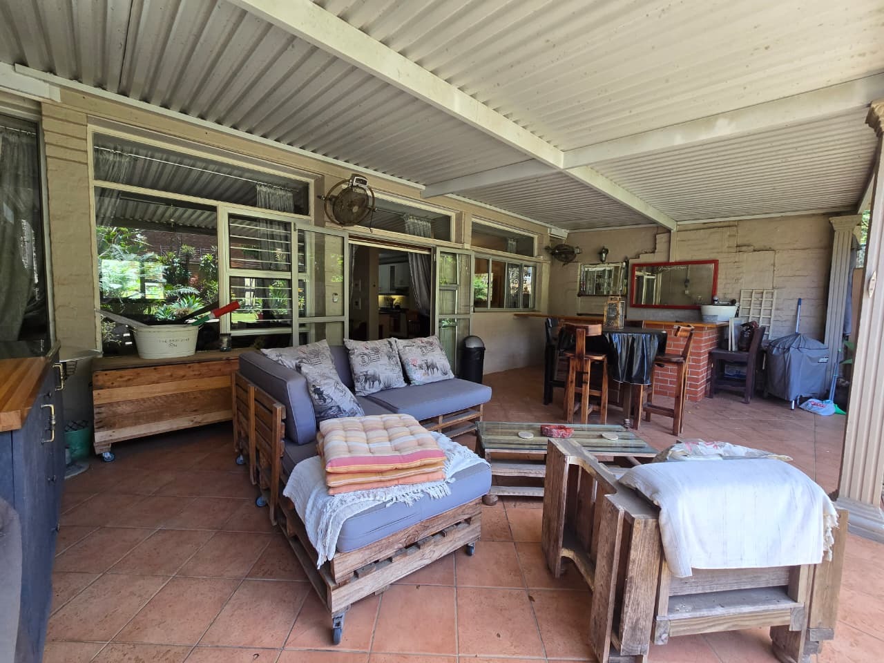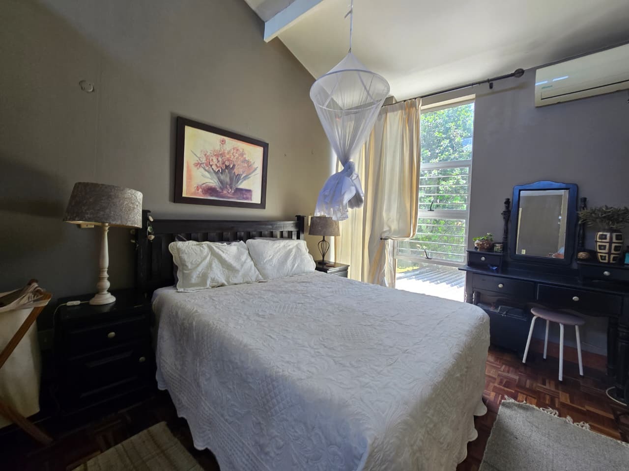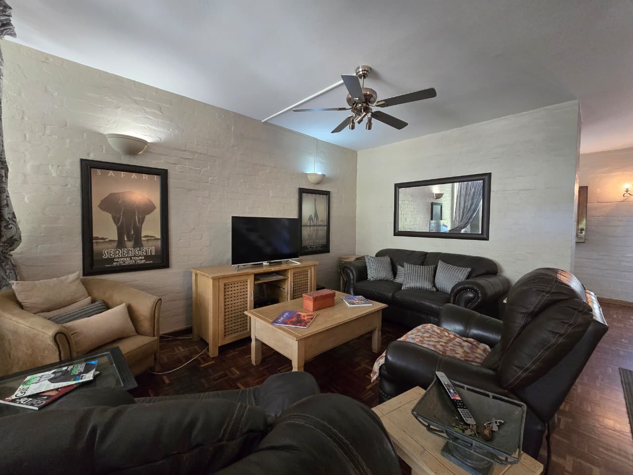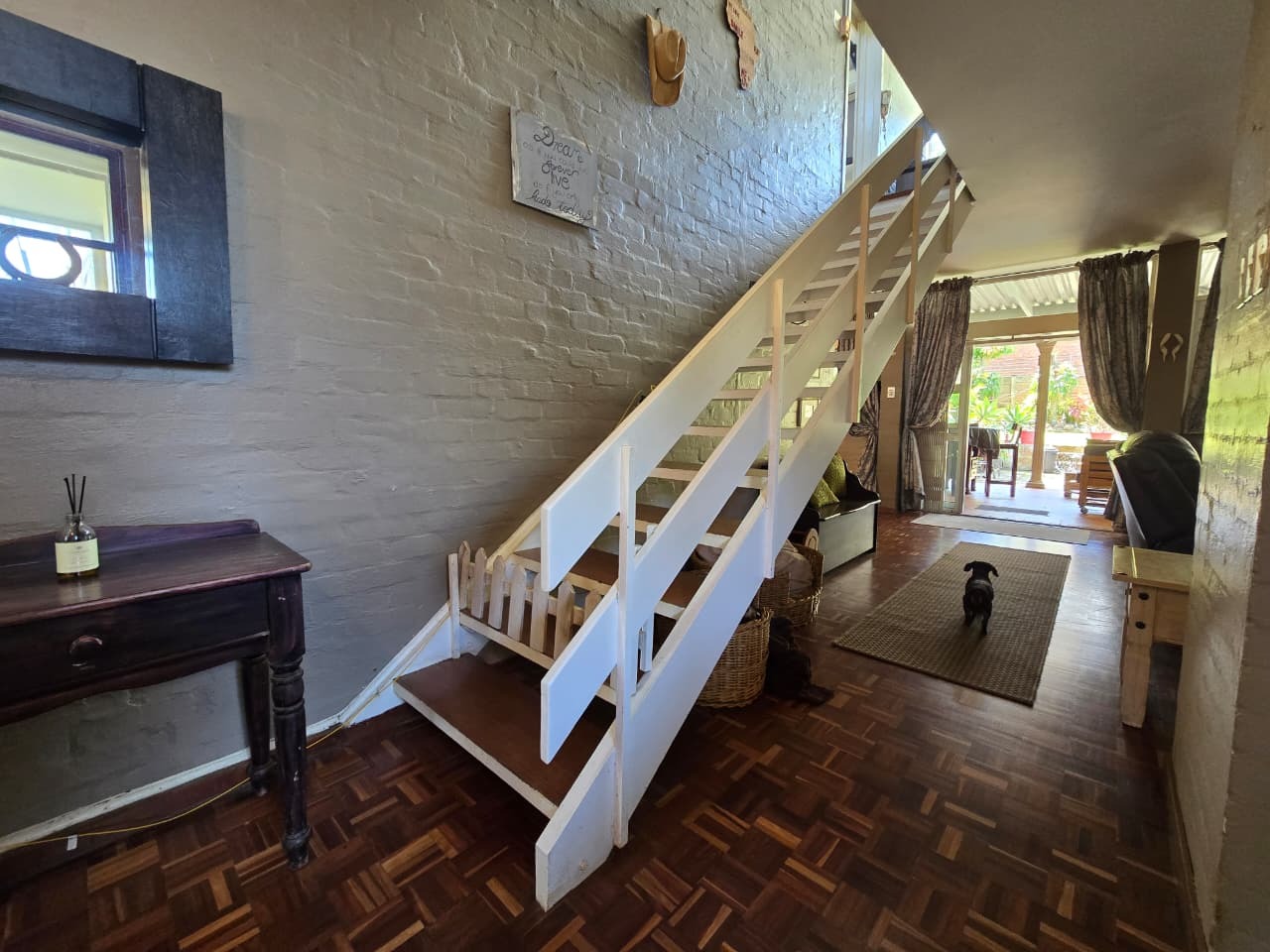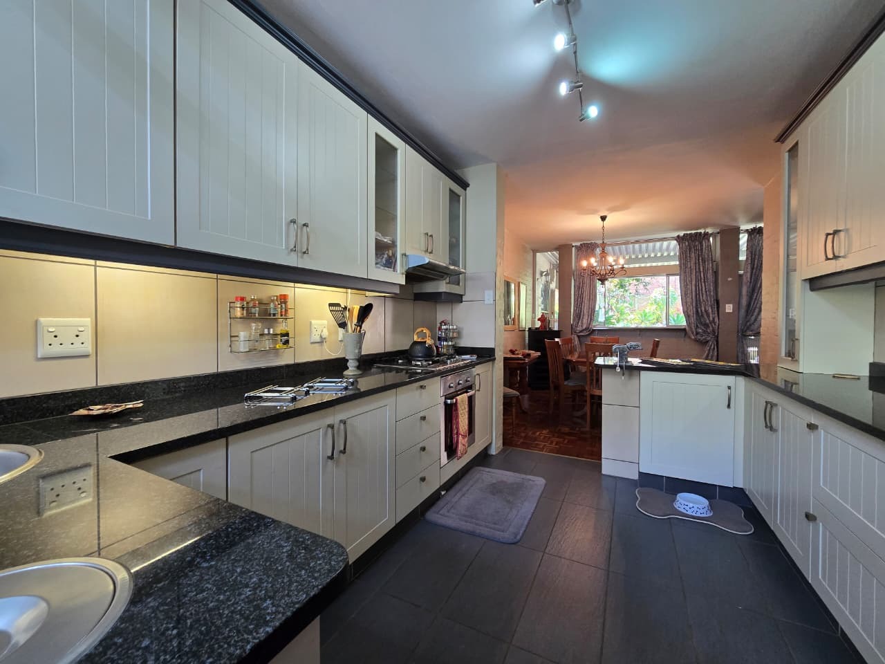 Discover comfortable suburban living in this 140 sqm residence located within a secure complex in Essenwood, Durban. This furnished 3-bedroom, 2.5-bathroom home offers a practical and inviting layout, ideal for those seeking convenience and security. The open-plan design seamlessly connects the living and dining areas, featuring classic parquet flooring and painted brick walls that add character. Ceiling fans ensure comfort, while large windows and glass doors provide ample natural light and direct access to a private garden area, complete with an awning for outdoor enjoyment. The functional kitchen boasts light-colored cabinetry, dark granite countertops, and dark tiled flooring, flowing effortlessly into the dining space, which also includes a breakfast bar. A built-in bar enhances the entertainment potential of the main living area. The property includes three well-proportioned bedrooms and 2.5 bathrooms, with a compact yet functional powder room on the lower level. Air conditioning is installed for climate control. Security is paramount within this complex, offering 24-hour security, an access gate, electric fencing, and an intercom system, ensuring peace of mind. The property is pet-friendly and features a fenced garden, paving, and a driveway leading to a dedicated parking space. Fibre connectivity is available, catering to modern lifestyle needs. Essenwood is a well-established Durban suburb known for its residential appeal and convenient access to local amenities. Key Features: * 3 Bedrooms, 2.5 Bathrooms * 140 sqm Floor Size * Open-Plan Living & Dining * Furnished Property * Secure Complex with 24-Hour Security * Fibre Connectivity * Pet-Friendly with Garden * Air Conditioning