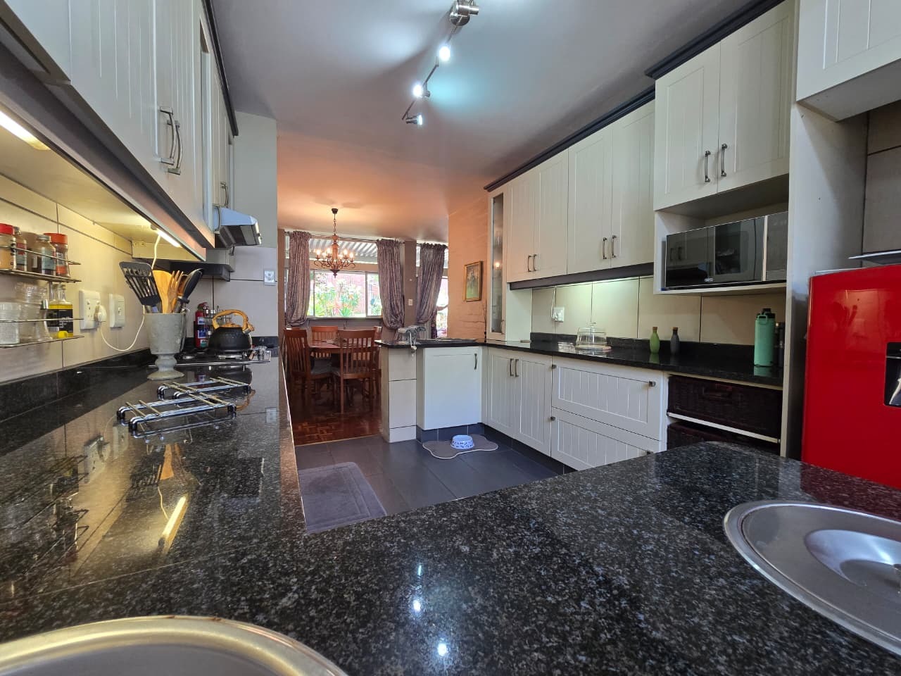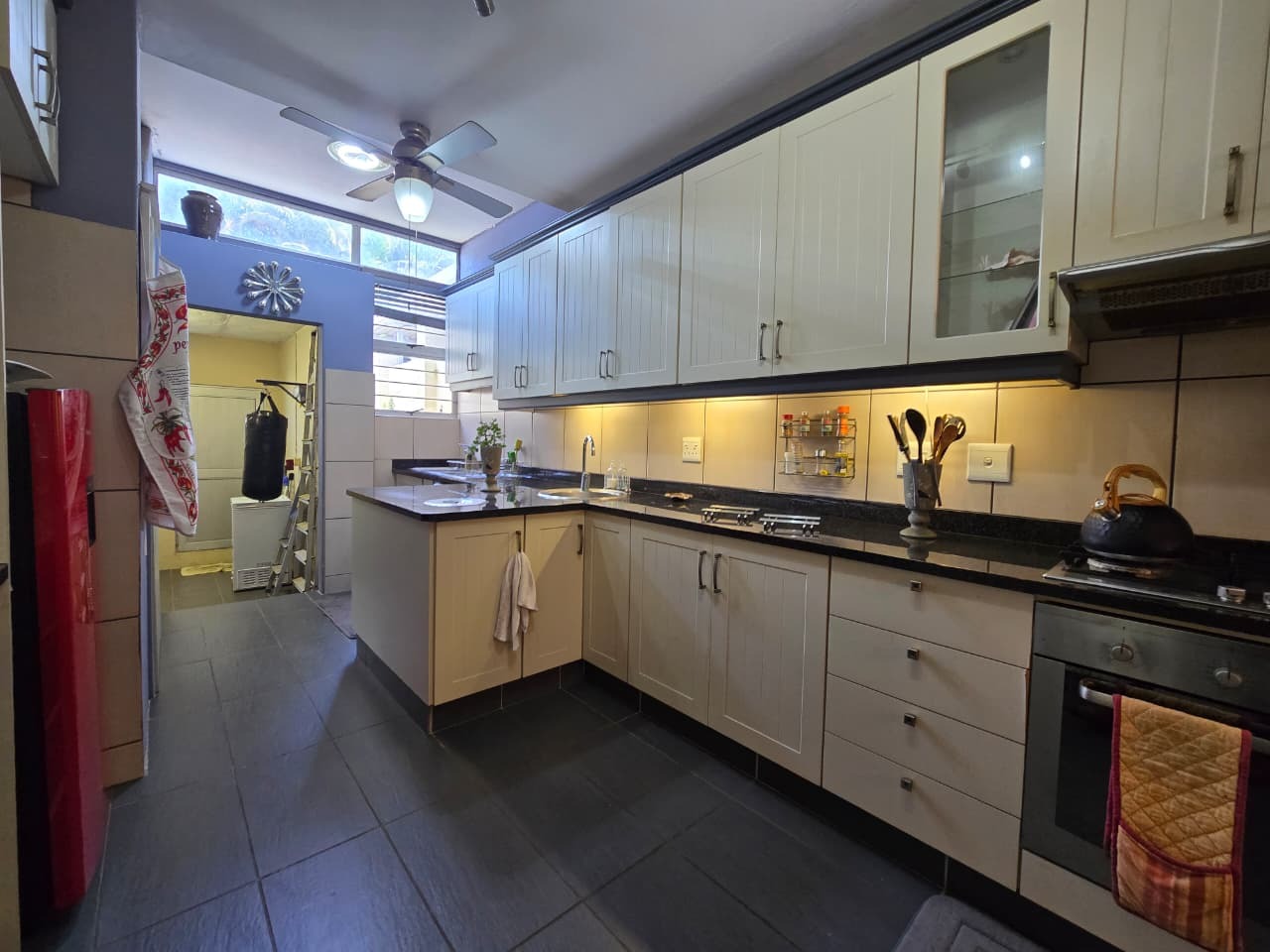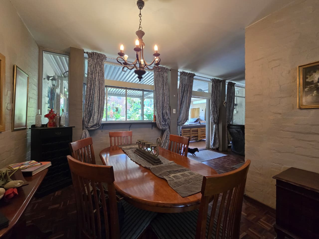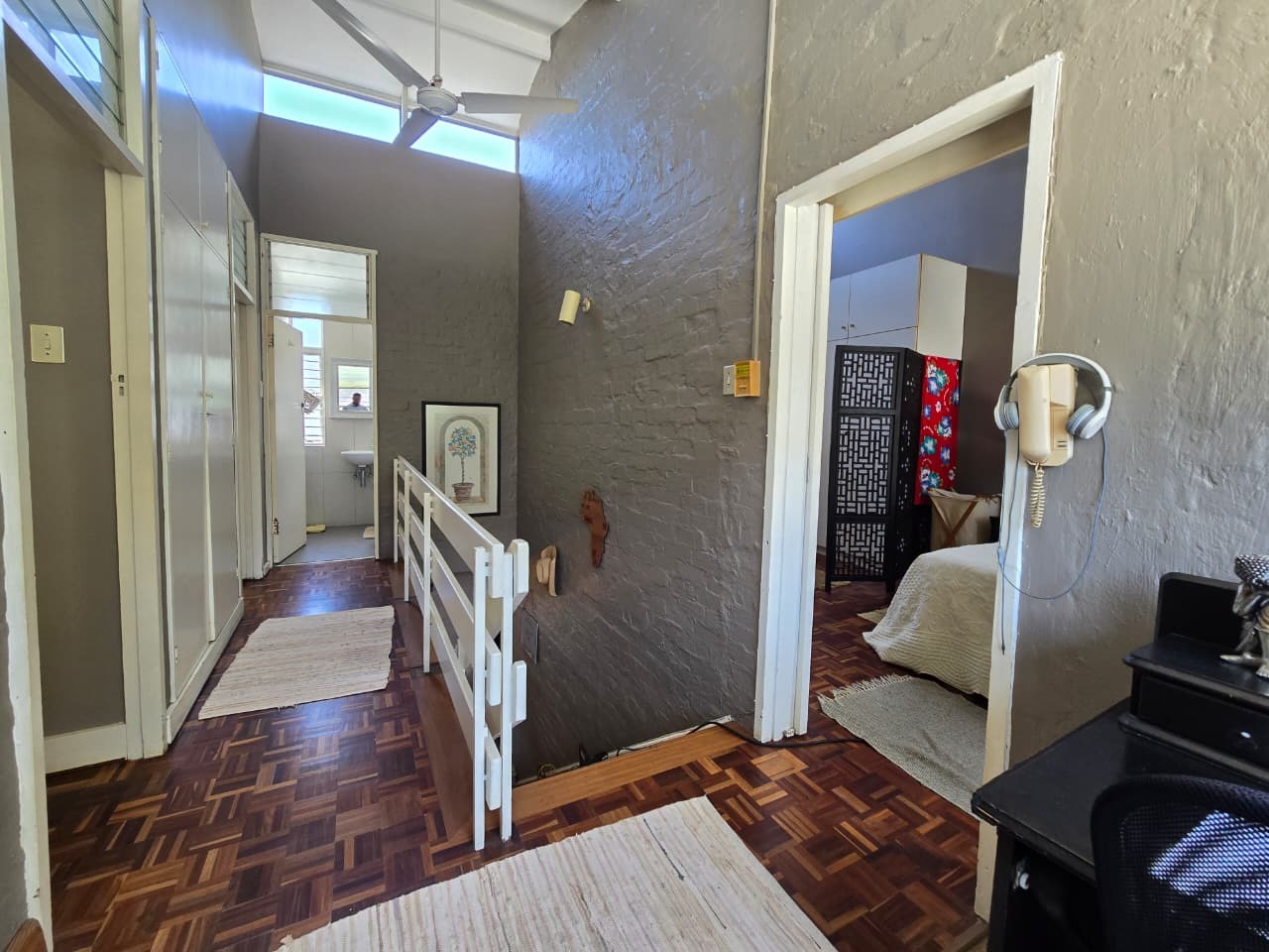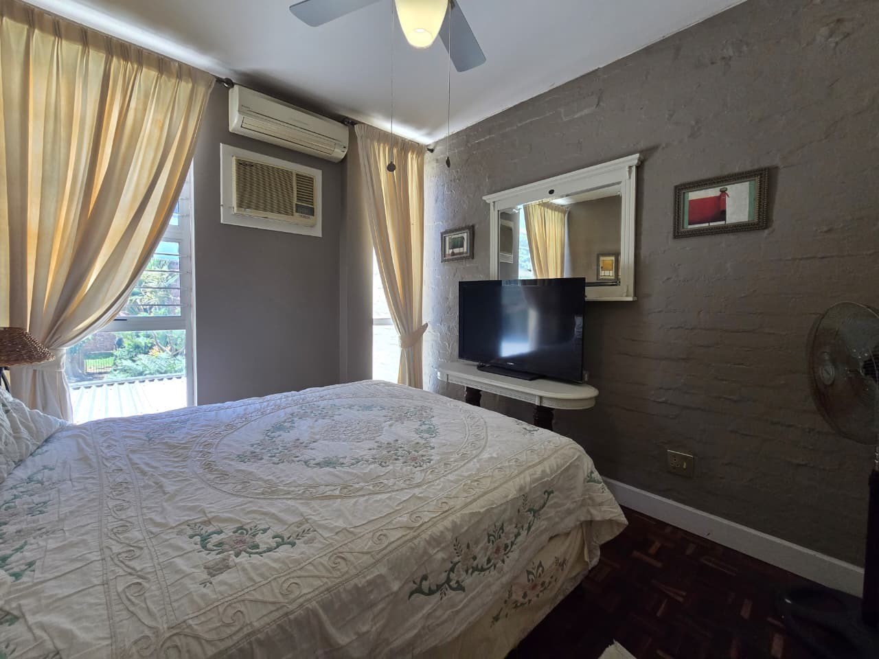 Discover comfortable suburban living in this 140 sqm residence located within a secure complex in Essenwood, Durban. This furnished 3-bedroom, 2.5-bathroom home offers a practical and inviting layout, ideal for those seeking convenience and security. The open-plan design seamlessly connects the living and dining areas, featuring classic parquet flooring and painted brick walls that add character. Ceiling fans ensure comfort, while large windows and glass doors provide ample natural light and direct access to a private garden area, complete with an awning for outdoor enjoyment. The functional kitchen boasts light-colored cabinetry, dark granite countertops, and dark tiled flooring, flowing effortlessly into the dining space, which also includes a breakfast bar. A built-in bar enhances the entertainment potential of the main living area. The property includes three well-proportioned bedrooms and 2.5 bathrooms, with a compact yet functional powder room on the lower level. Air conditioning is installed for climate control. Security is paramount within this complex, offering 24-hour security, an access gate, electric fencing, and an intercom system, ensuring peace of mind. The property is pet-friendly and features a fenced garden, paving, and a driveway leading to a dedicated parking space. Fibre connectivity is available, catering to modern lifestyle needs. Essenwood is a well-established Durban suburb known for its residential appeal and convenient access to local amenities. Key Features: * 3 Bedrooms, 2.5 Bathrooms * 140 sqm Floor Size * Open-Plan Living & Dining * Furnished Property * Secure Complex with 24-Hour Security * Fibre Connectivity * Pet-Friendly with Garden * Air Conditioning