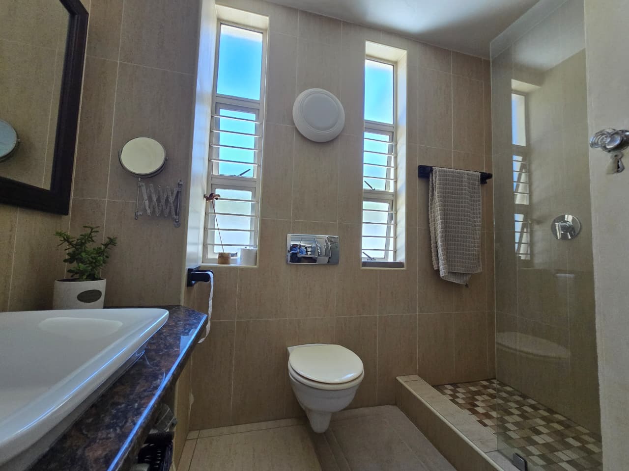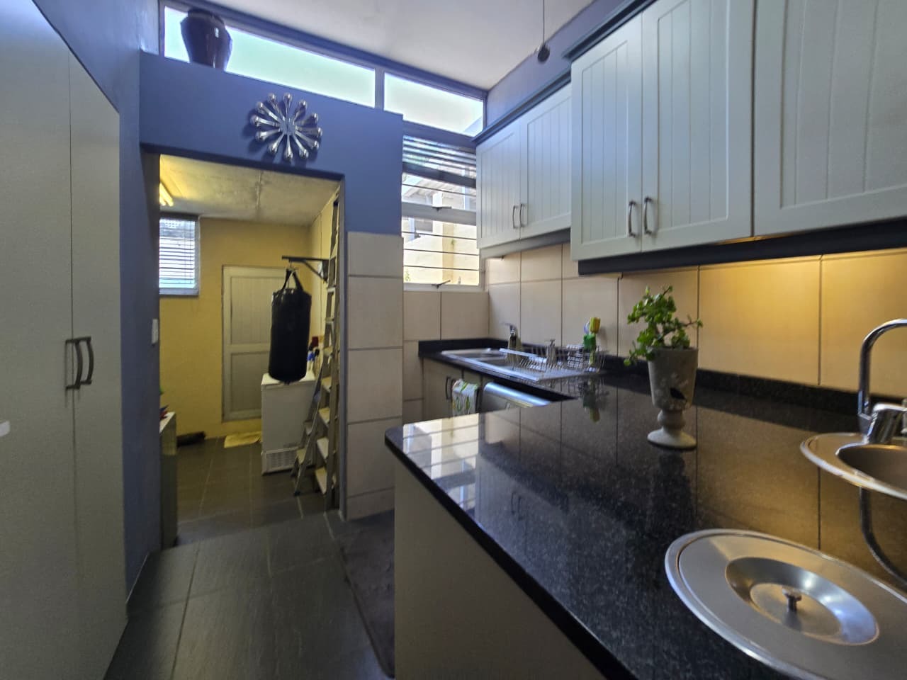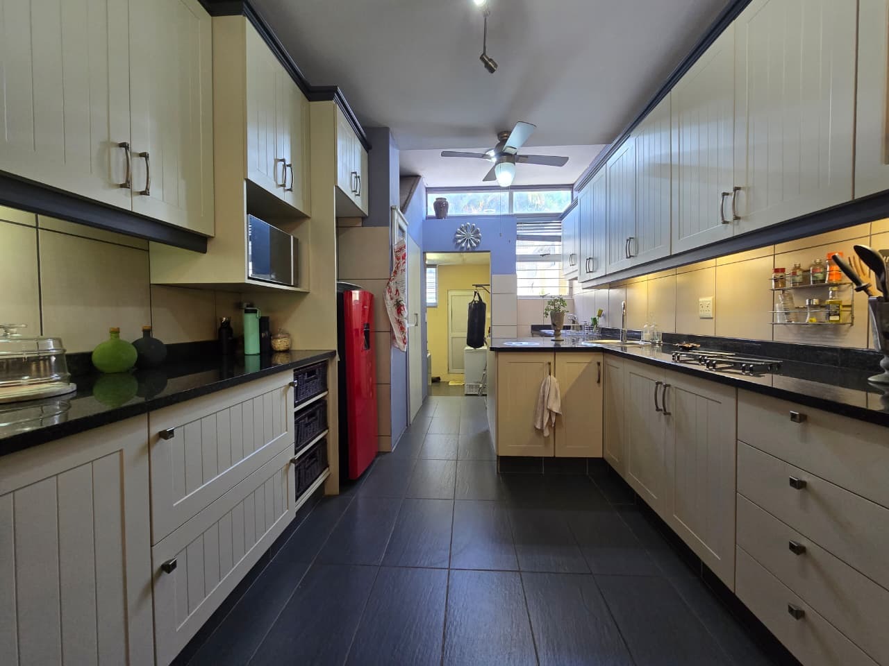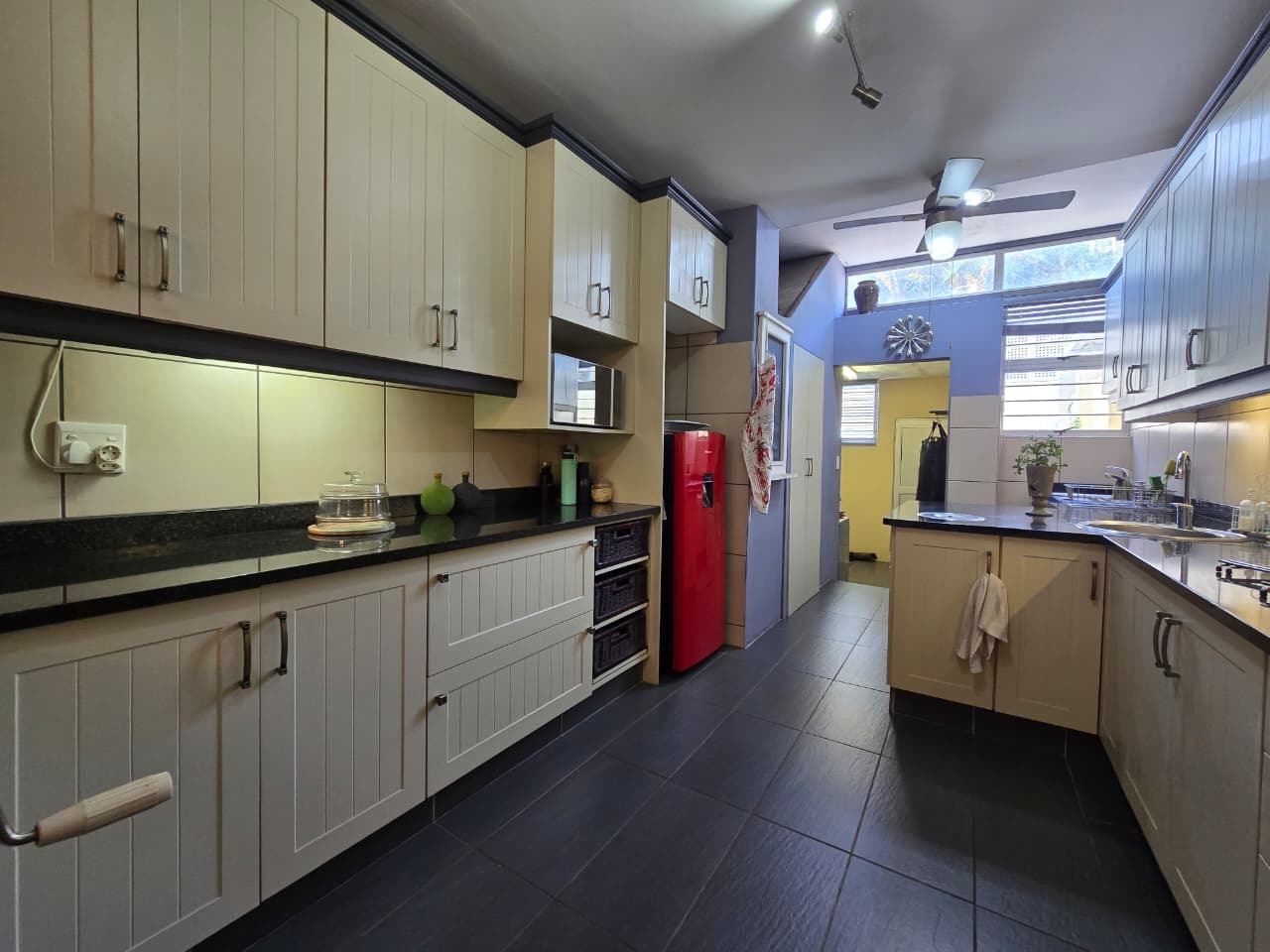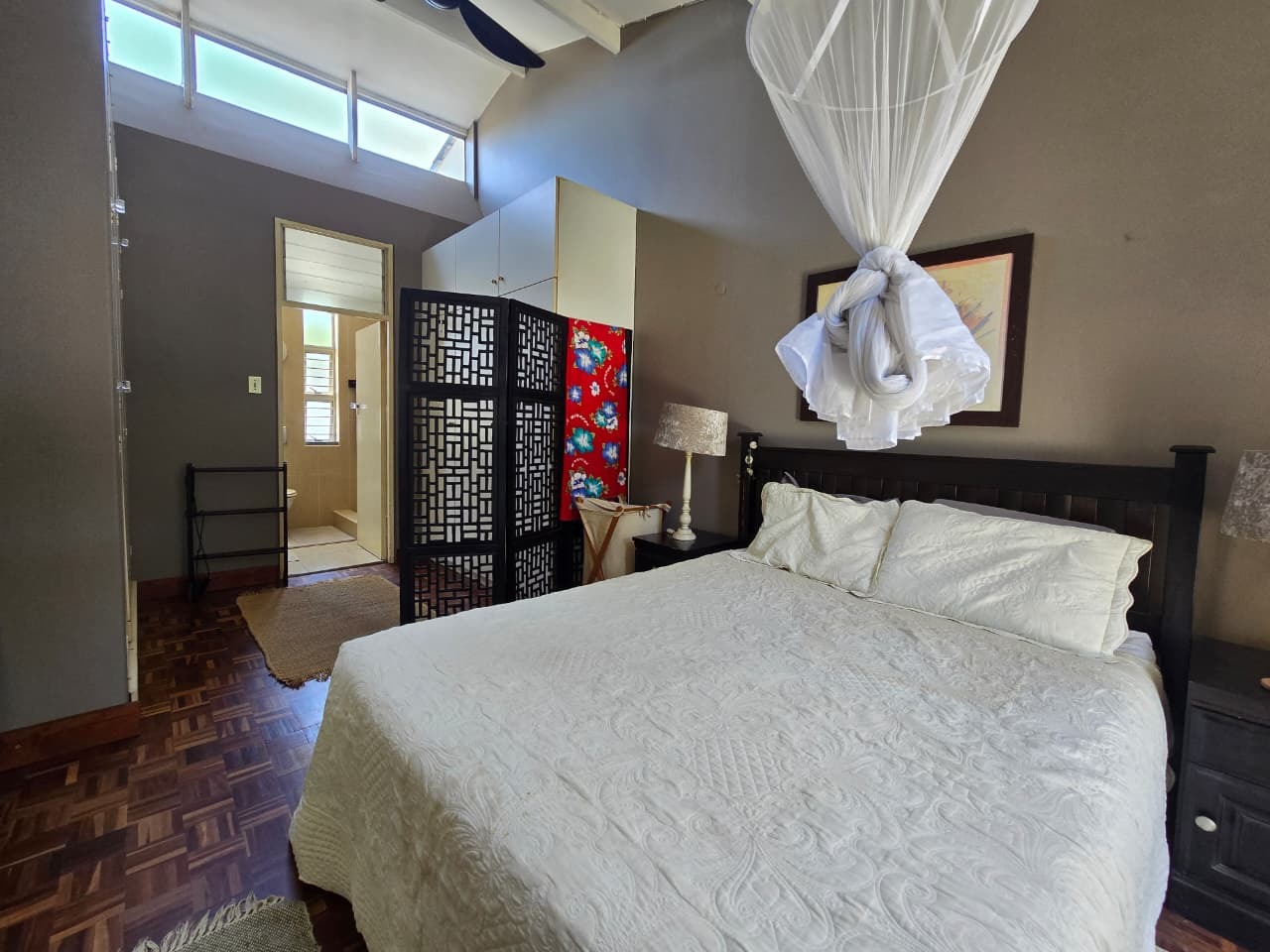 Discover comfortable suburban living in this 140 sqm residence located within a secure complex in Essenwood, Durban. This furnished 3-bedroom, 2.5-bathroom home offers a practical and inviting layout, ideal for those seeking convenience and security. The open-plan design seamlessly connects the living and dining areas, featuring classic parquet flooring and painted brick walls that add character. Ceiling fans ensure comfort, while large windows and glass doors provide ample natural light and direct access to a private garden area, complete with an awning for outdoor enjoyment. The functional kitchen boasts light-colored cabinetry, dark granite countertops, and dark tiled flooring, flowing effortlessly into the dining space, which also includes a breakfast bar. A built-in bar enhances the entertainment potential of the main living area. The property includes three well-proportioned bedrooms and 2.5 bathrooms, with a compact yet functional powder room on the lower level. Air conditioning is installed for climate control. Security is paramount within this complex, offering 24-hour security, an access gate, electric fencing, and an intercom system, ensuring peace of mind. The property is pet-friendly and features a fenced garden, paving, and a driveway leading to a dedicated parking space. Fibre connectivity is available, catering to modern lifestyle needs. Essenwood is a well-established Durban suburb known for its residential appeal and convenient access to local amenities. Key Features: * 3 Bedrooms, 2.5 Bathrooms * 140 sqm Floor Size * Open-Plan Living & Dining * Furnished Property * Secure Complex with 24-Hour Security * Fibre Connectivity * Pet-Friendly with Garden * Air Conditioning