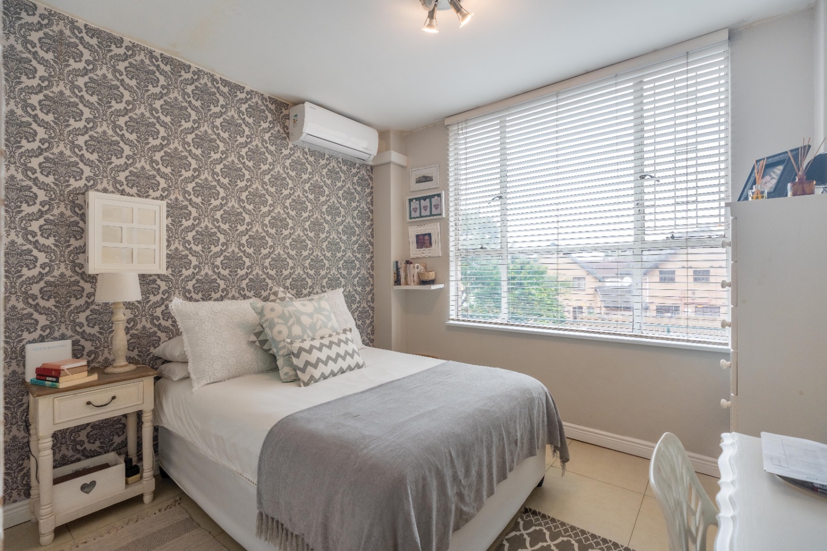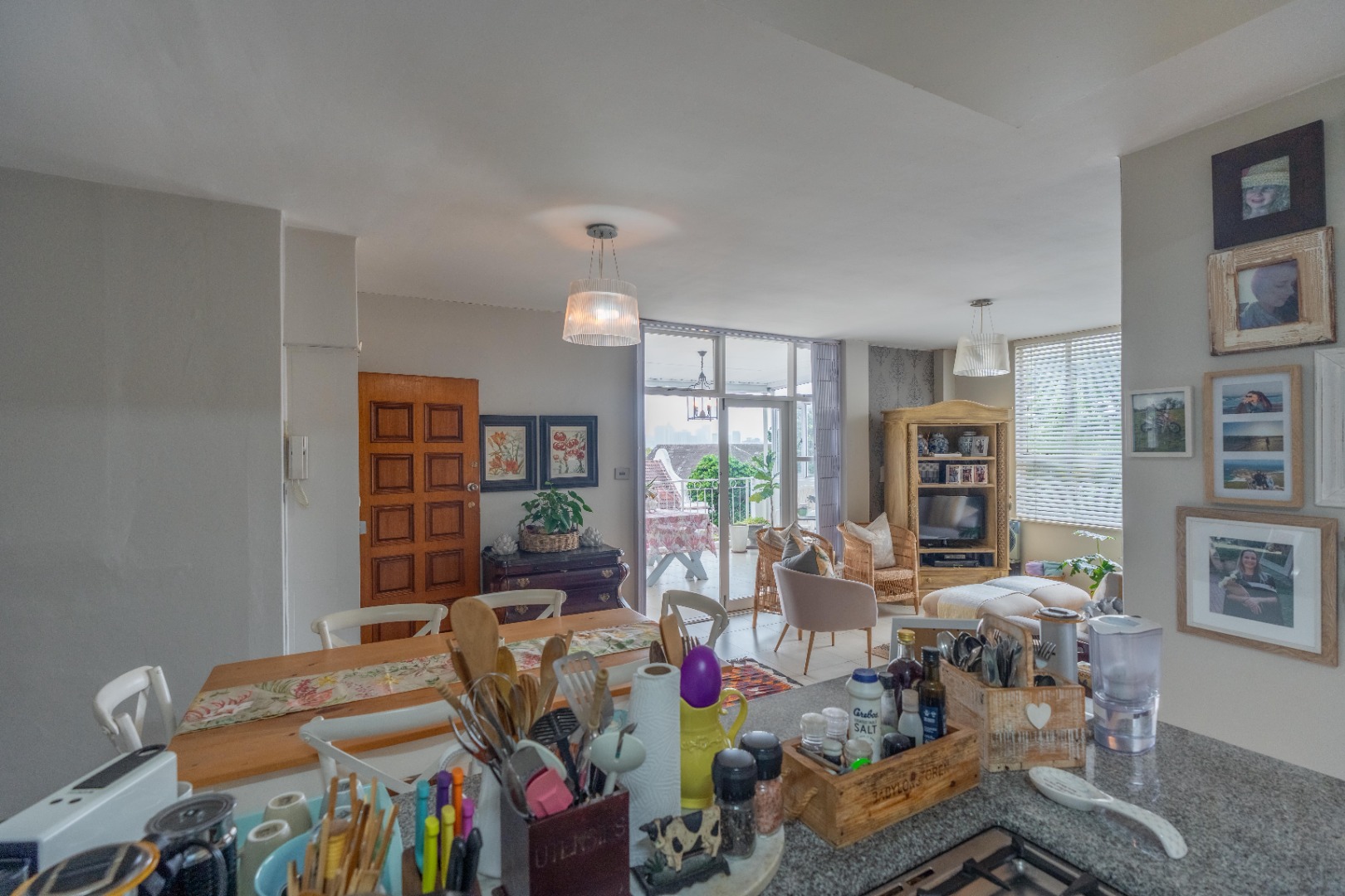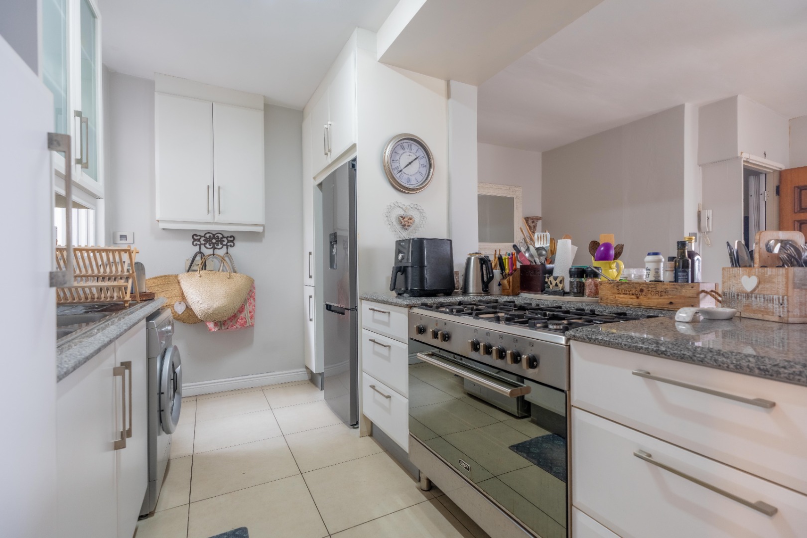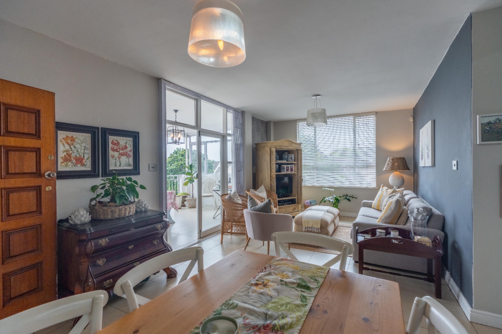 Spacious three-bedroom apartment on one level with an enclosed balcony, scenic views and aluminium windows throughout. Fully fitted semi open plan kitchen with granite tops, gas stove, plumbing for a washing machine and plenty of cupboard space. Open plan dining room and lounge area. Italian tiles and air conditioning throughout.