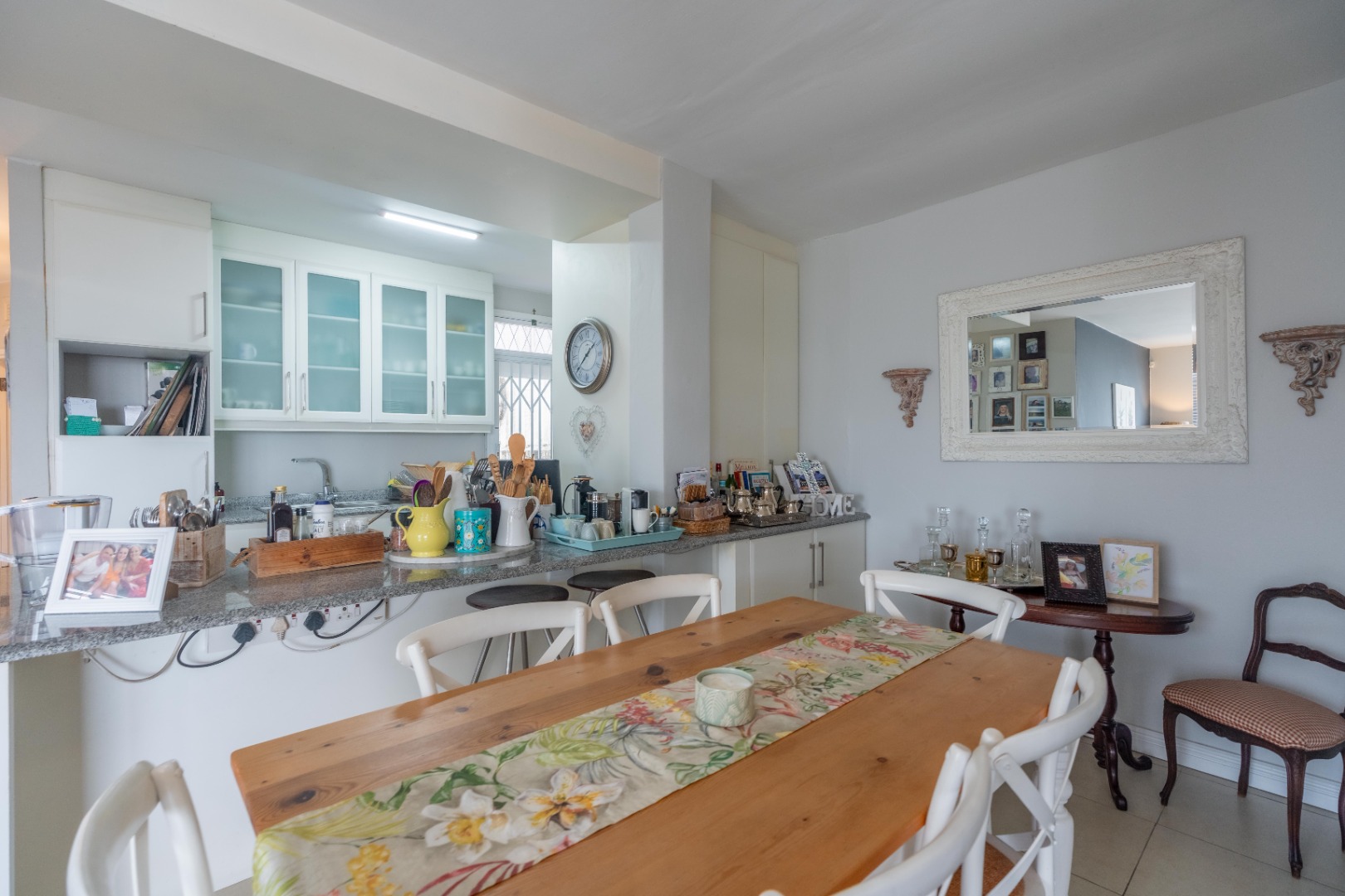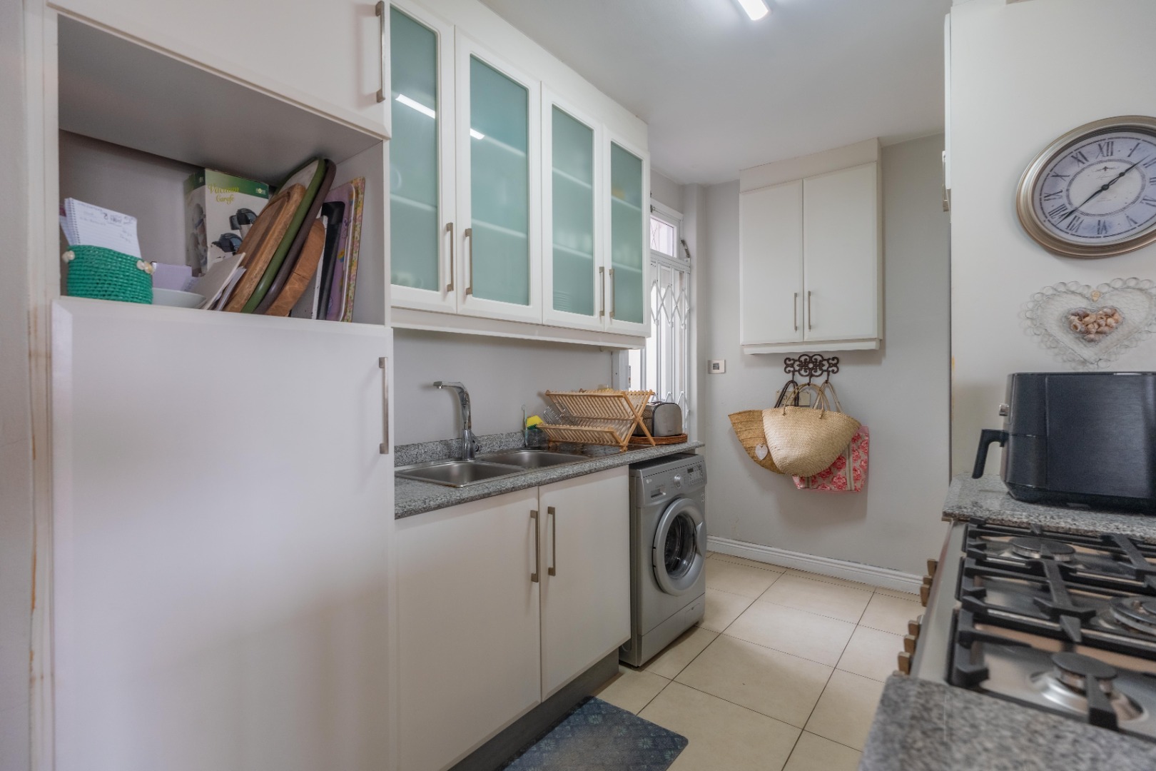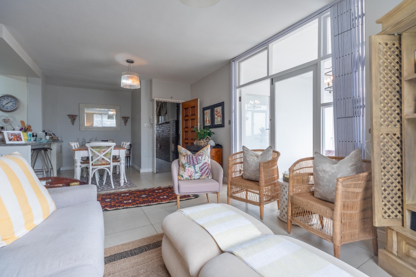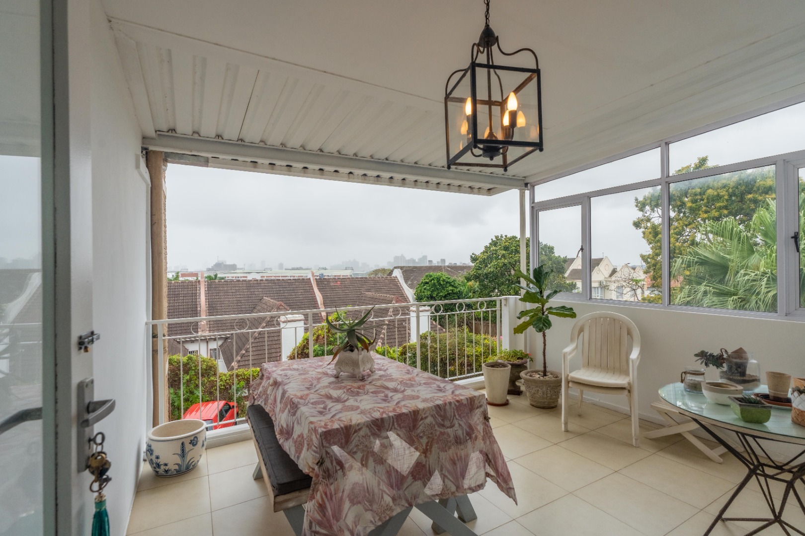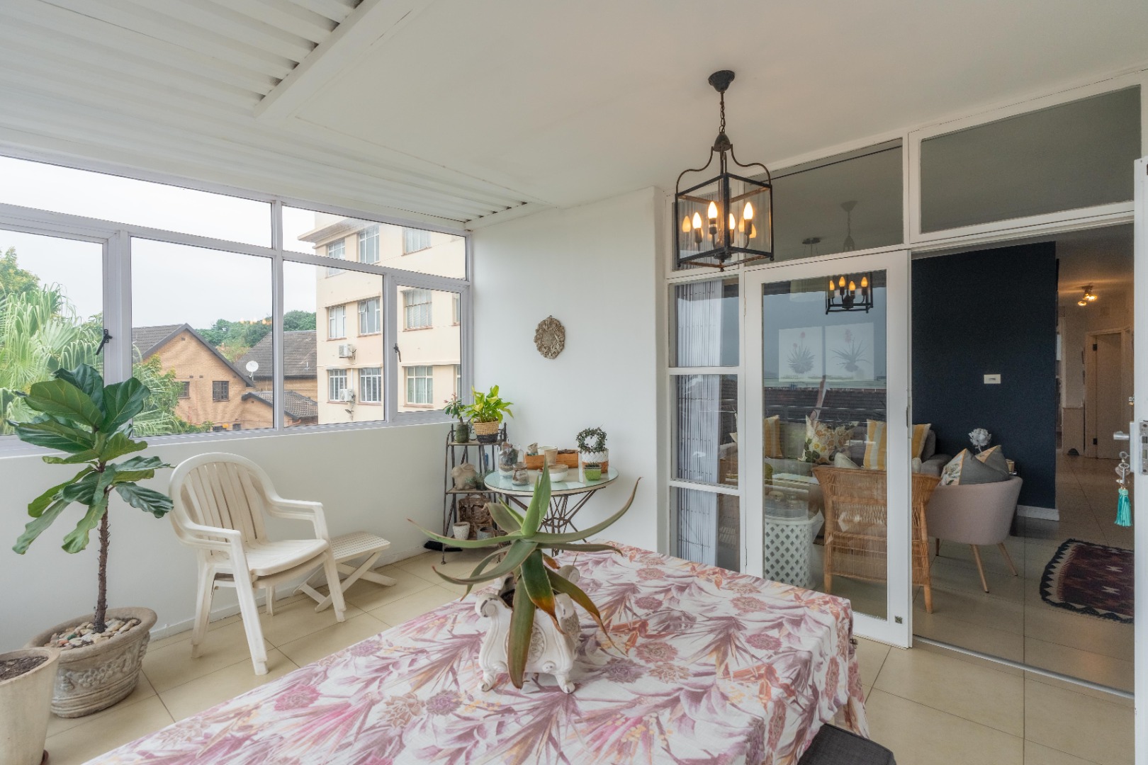 Spacious three-bedroom apartment on one level with an enclosed balcony, scenic views and aluminium windows throughout. Fully fitted semi open plan kitchen with granite tops, gas stove, plumbing for a washing machine and plenty of cupboard space. Open plan dining room and lounge area. Italian tiles and air conditioning throughout.