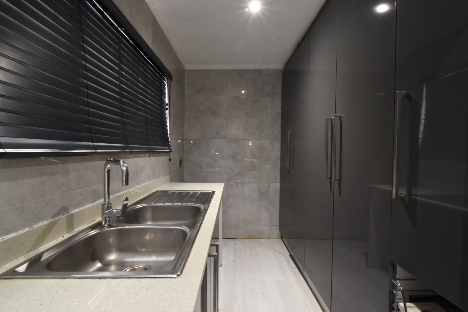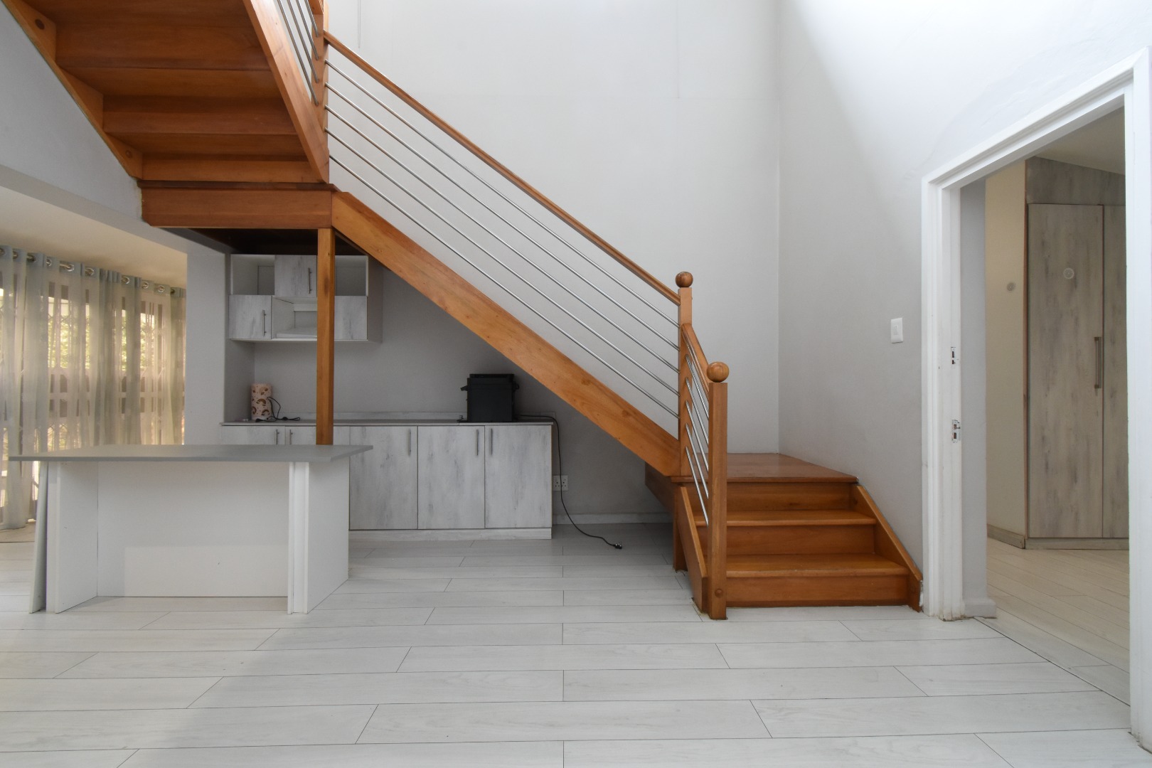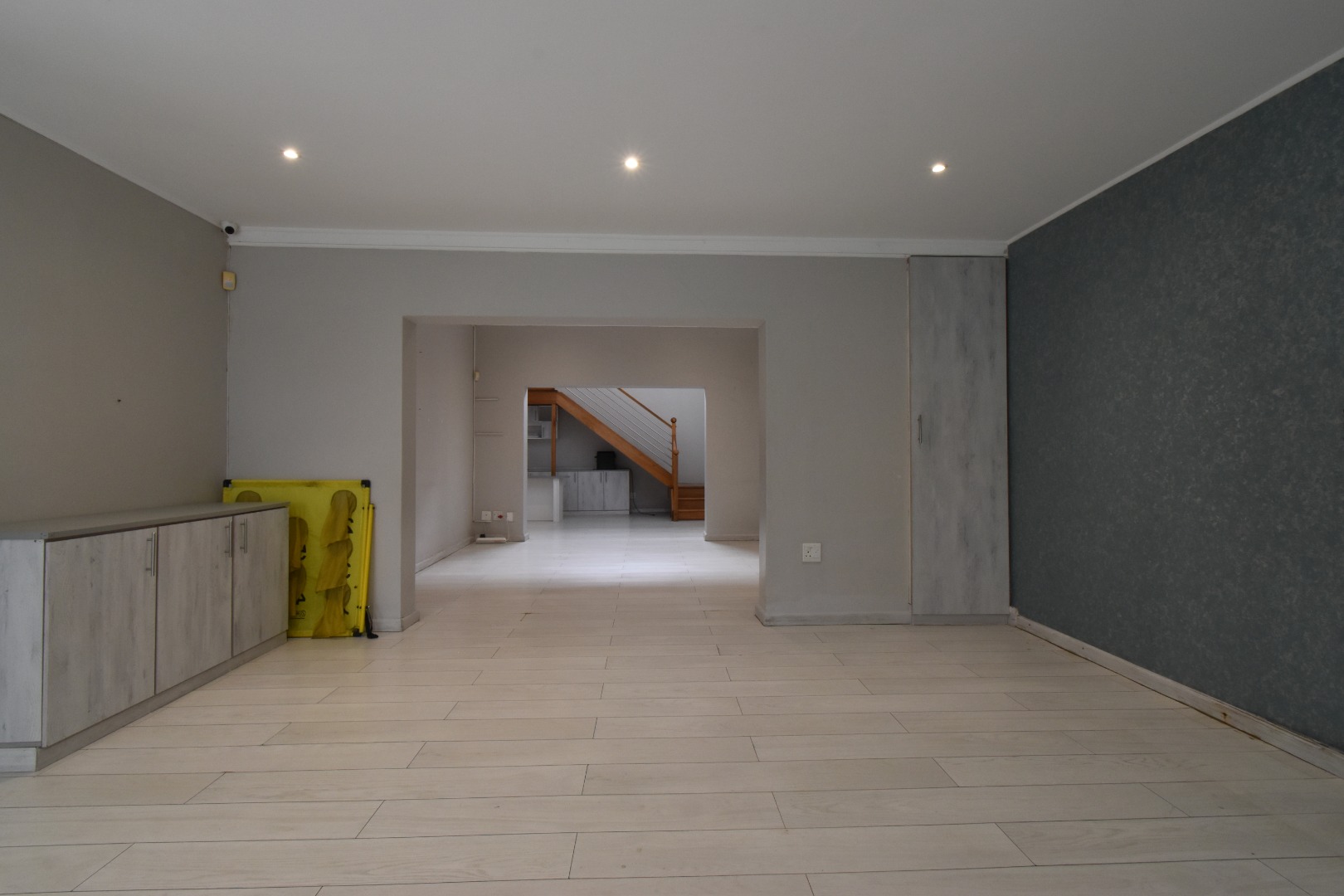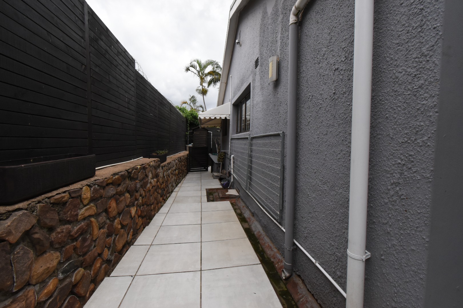 Discover a sophisticated modern home set in a quiet cul-de-sac in the sought-after Essenwood suburb of Durban. This striking double-storey residence features contemporary architecture with stone cladding, dark accents, and a statement balcony, surrounded by a beautifully maintained tropical garden with paved walkways and a children’s play area. Inside, spacious open-plan living areas are enhanced by light-toned flooring, recessed lighting, crown molding, and textured feature walls. A sleek wooden staircase leads to four luxurious bedrooms, two en suite, plus a full family bathroom and guest toilet. The home also offers three lounges, a dining area, a covered patio for outdoor entertaining, air conditioning, and two garages. Comprehensive security includes electric fencing, CCTV, an alarm system, 24-hour security, and controlled access, ensuring stylish, secure, and comfortable living in a prime location.