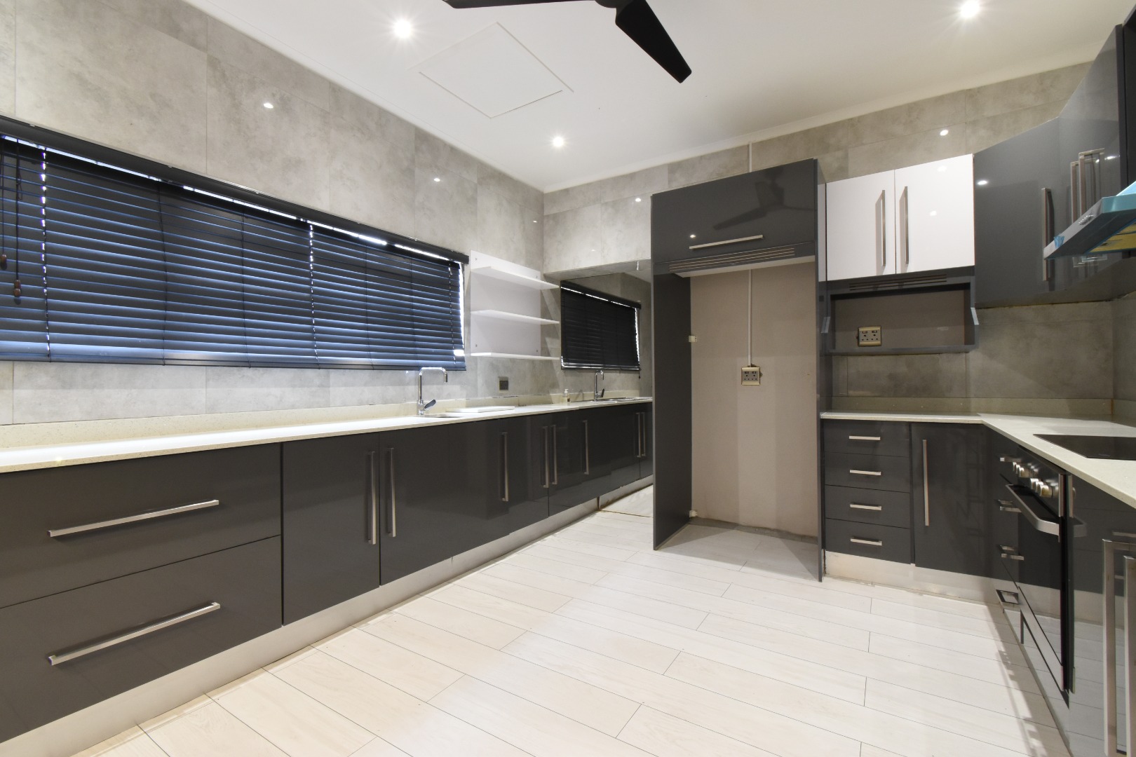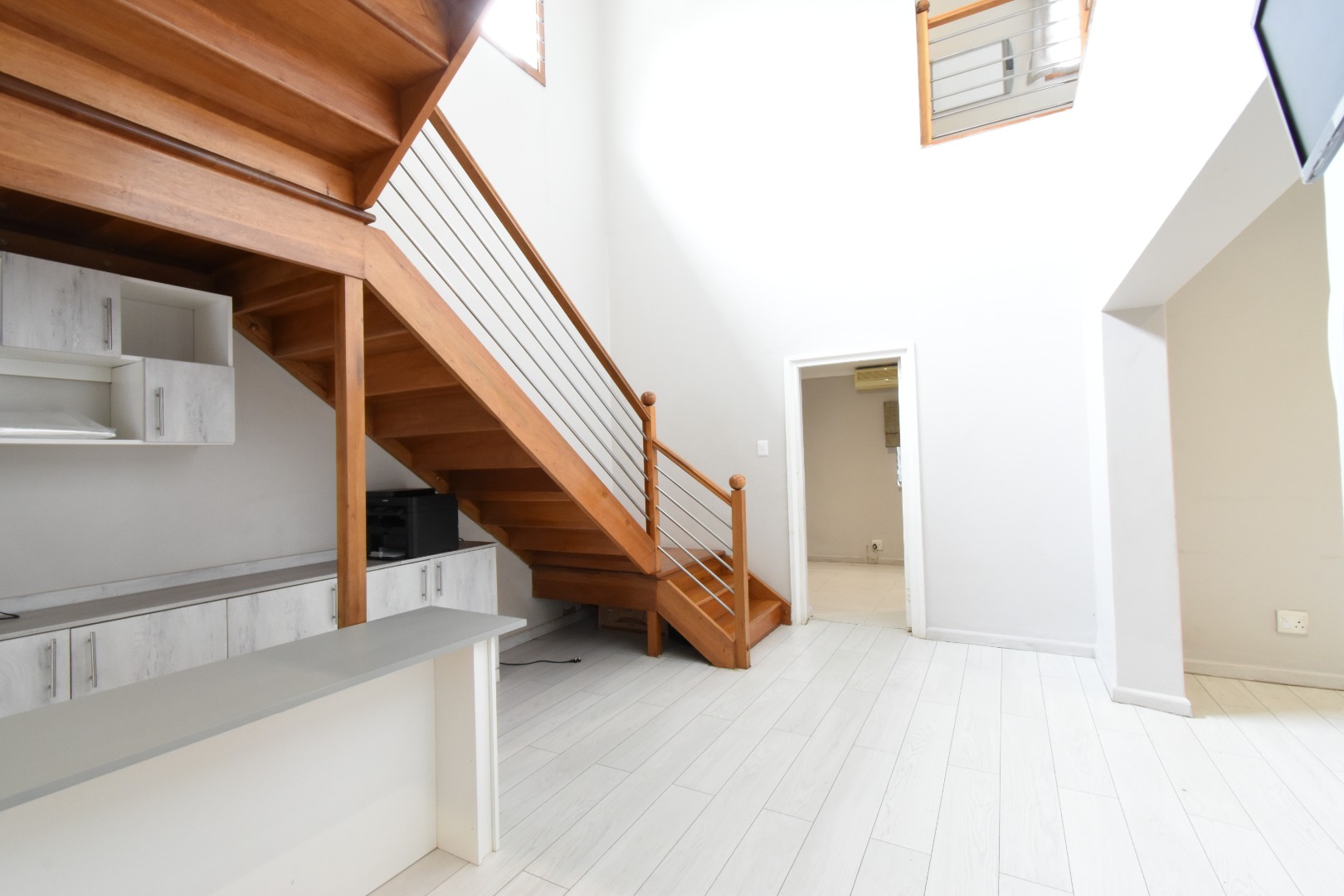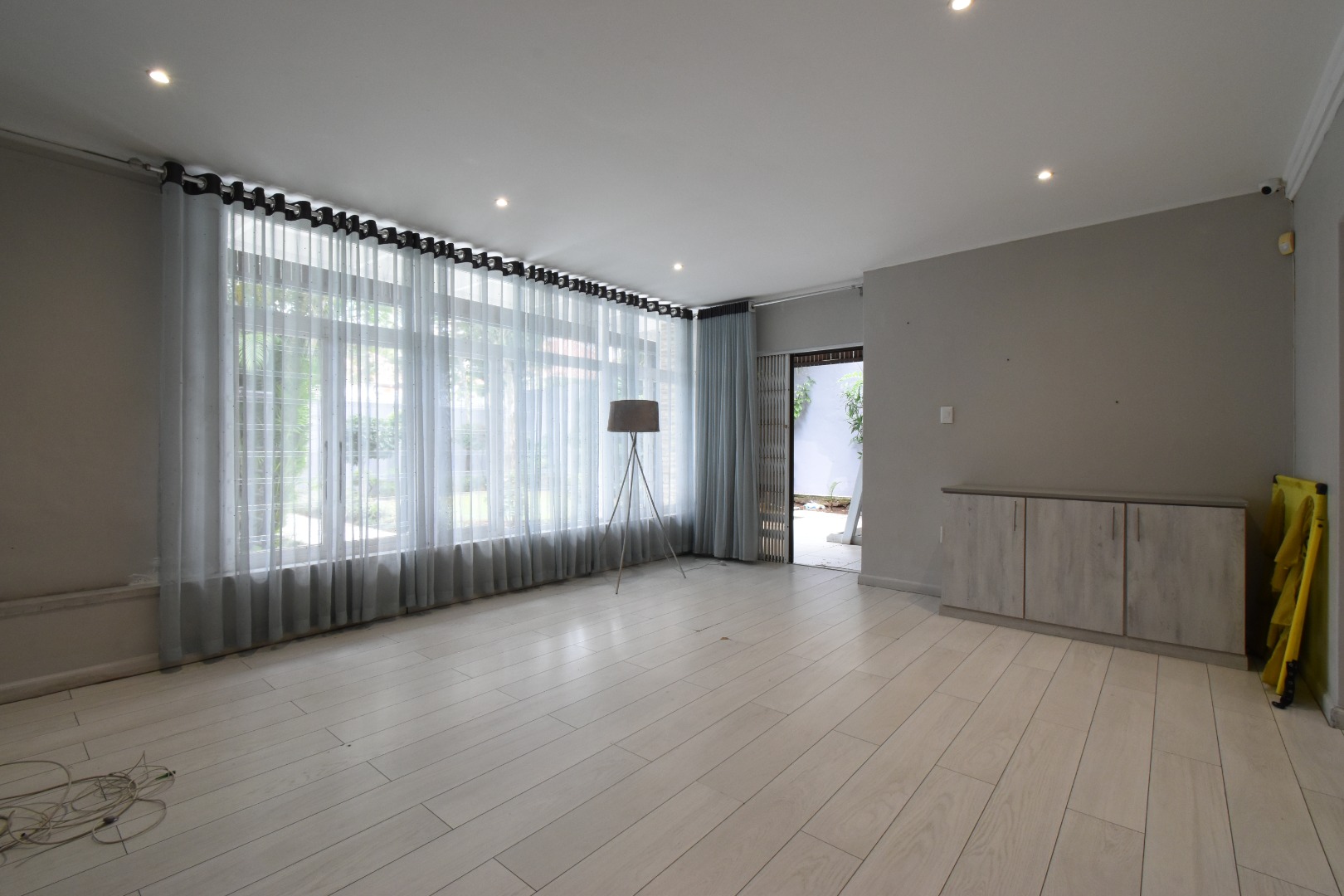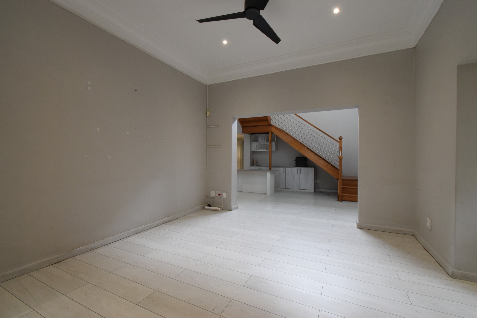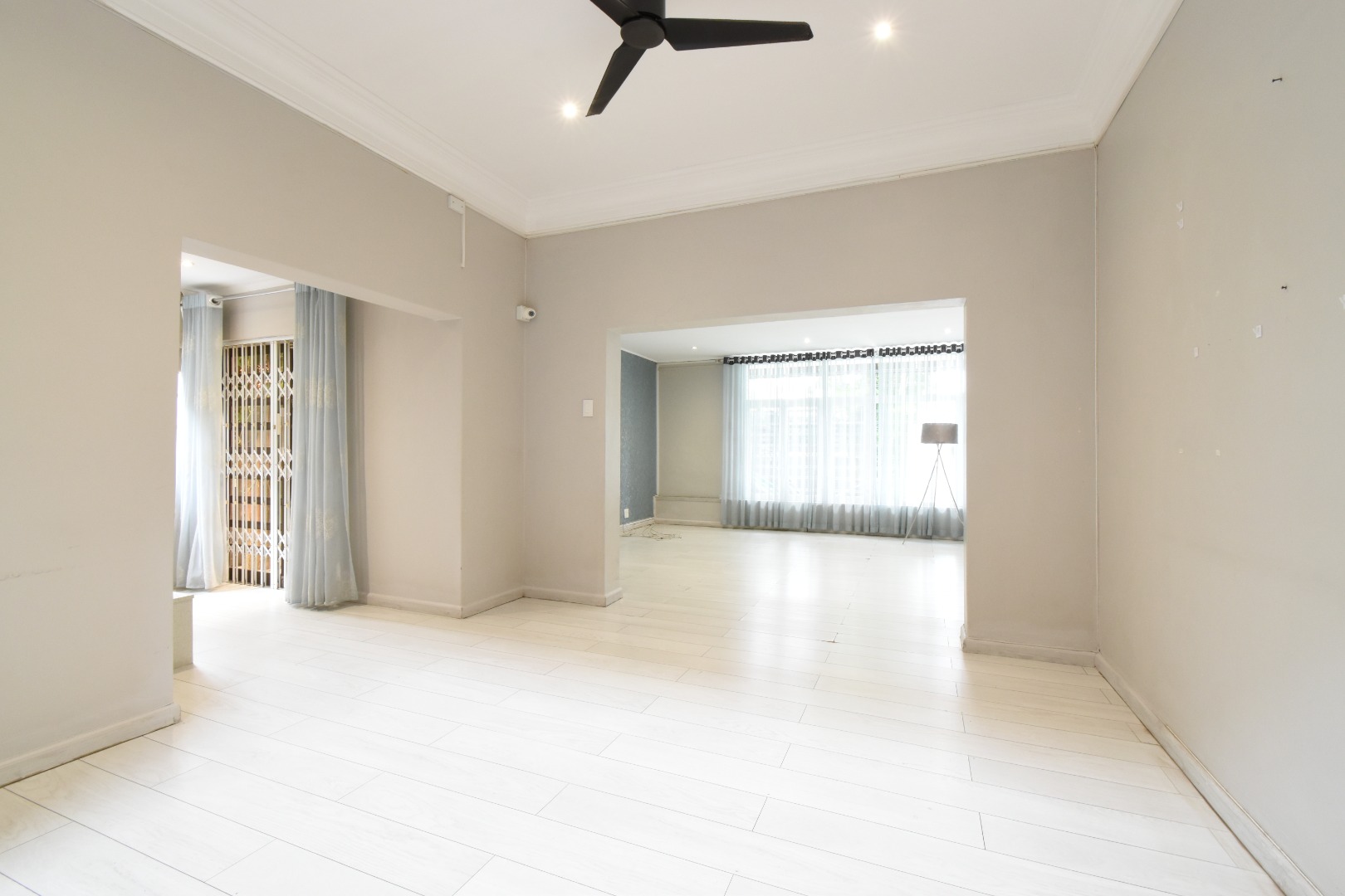 Discover a sophisticated modern home set in a quiet cul-de-sac in the sought-after Essenwood suburb of Durban. This striking double-storey residence features contemporary architecture with stone cladding, dark accents, and a statement balcony, surrounded by a beautifully maintained tropical garden with paved walkways and a children’s play area. Inside, spacious open-plan living areas are enhanced by light-toned flooring, recessed lighting, crown molding, and textured feature walls. A sleek wooden staircase leads to four luxurious bedrooms, two en suite, plus a full family bathroom and guest toilet. The home also offers three lounges, a dining area, a covered patio for outdoor entertaining, air conditioning, and two garages. Comprehensive security includes electric fencing, CCTV, an alarm system, 24-hour security, and controlled access, ensuring stylish, secure, and comfortable living in a prime location.