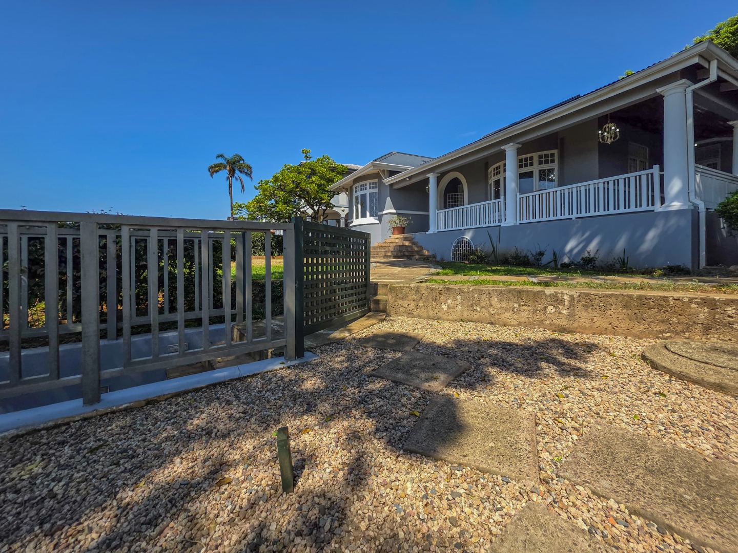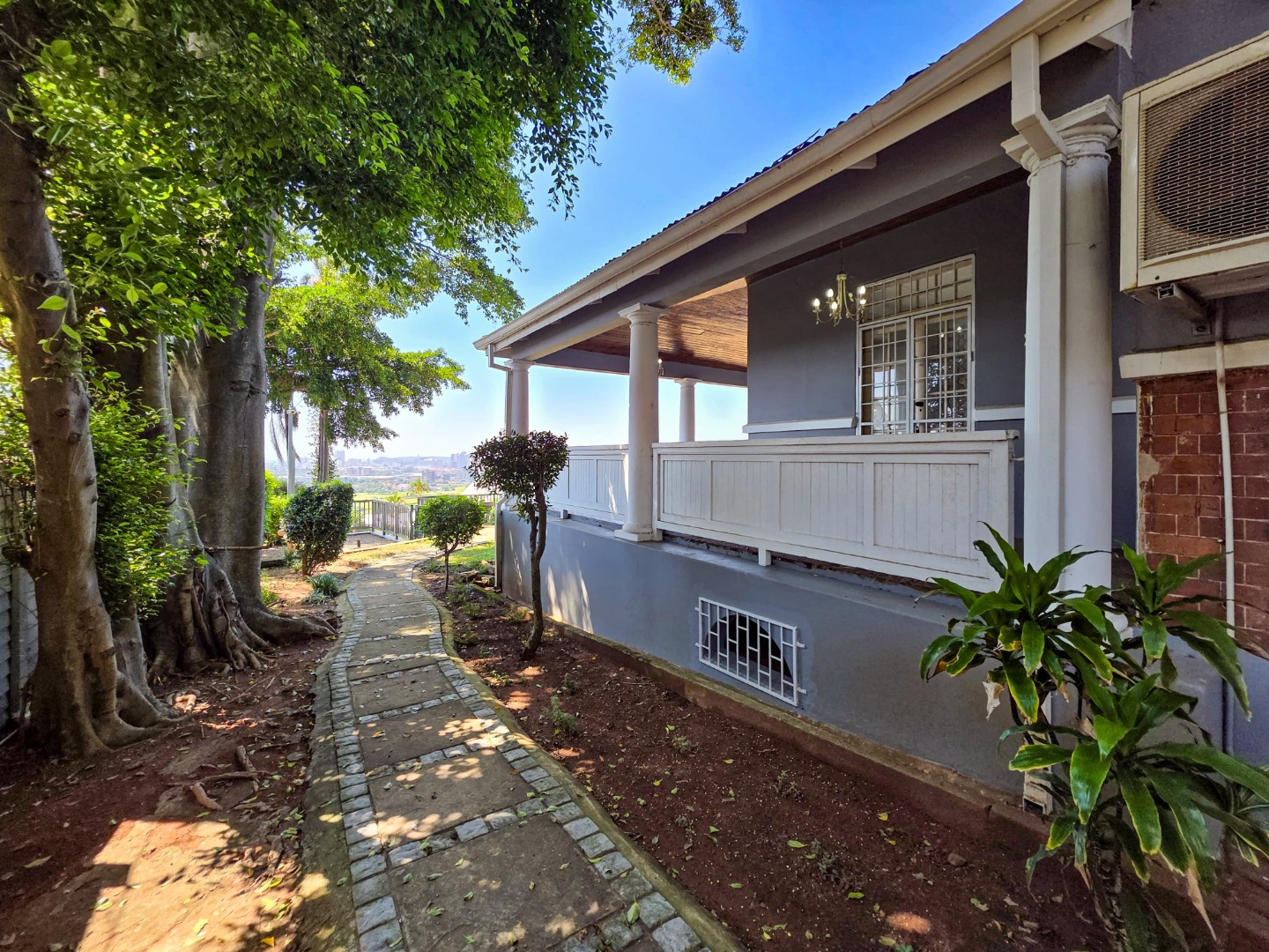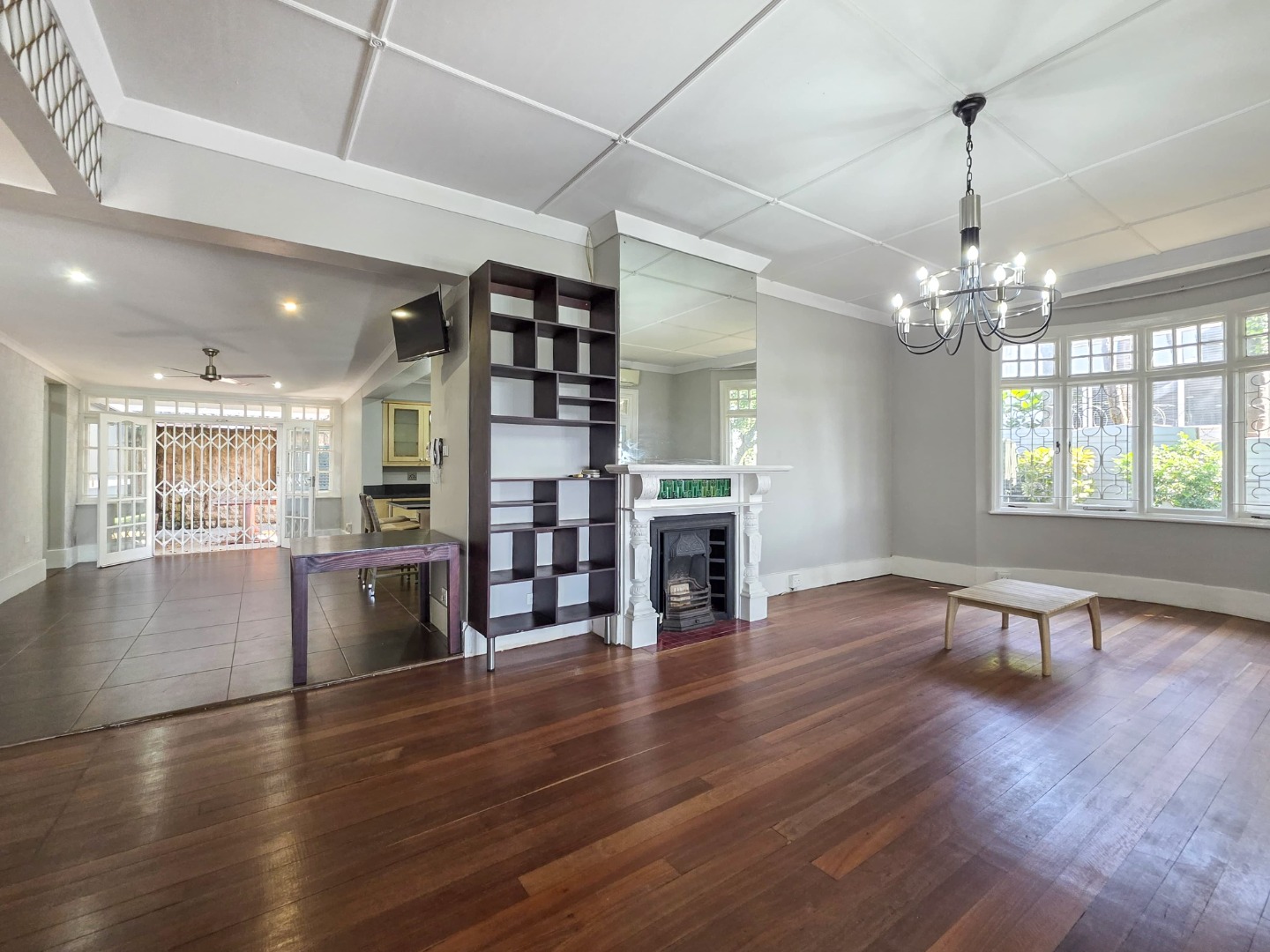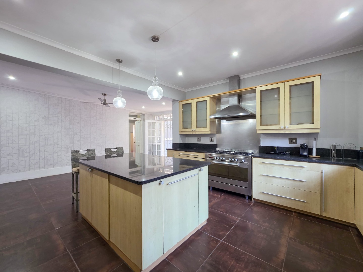 Inside, you'll find a spacious layout designed for easy living. The home features high ceilings and beautiful hardwood floors that flow through the main living areas. The lounge is a perfect spot to relax, complete with an ornate fireplace and air conditioning for those warm Durban days. The open-plan design seamlessly connects the living spaces, including a modern kitchen with an island, making it ideal for family gatherings and entertaining.