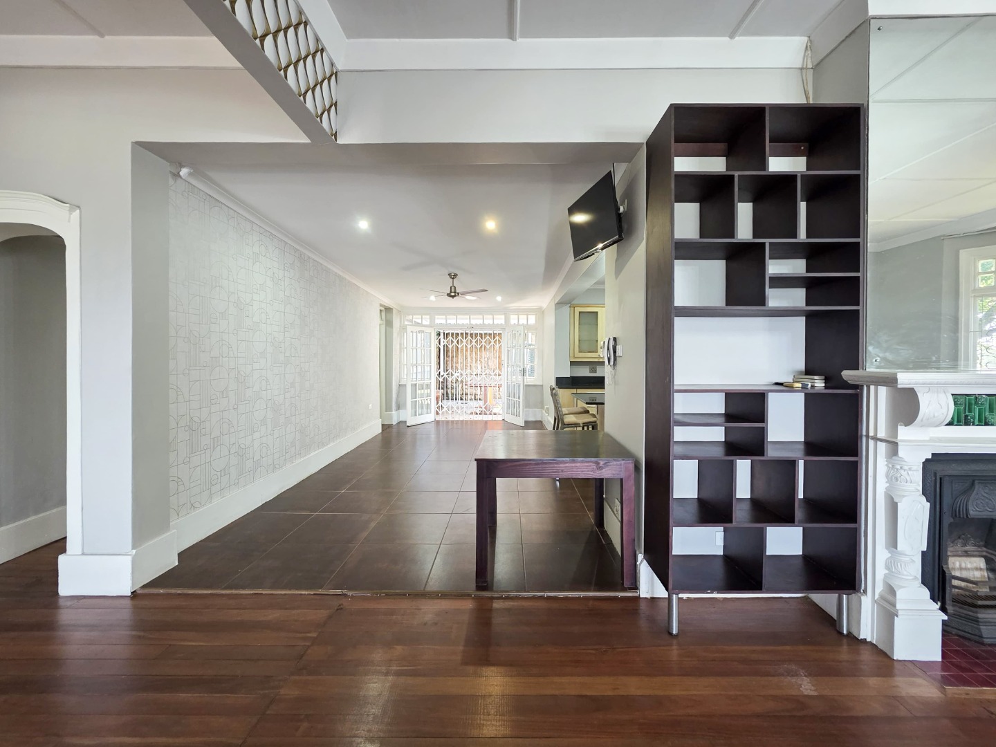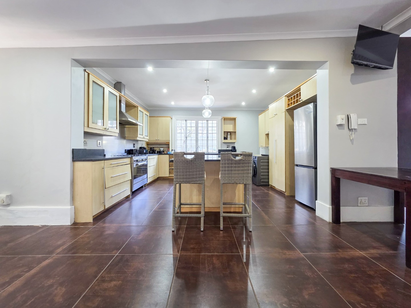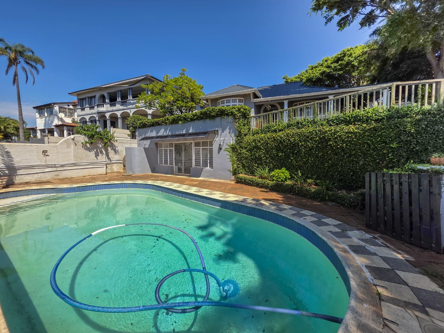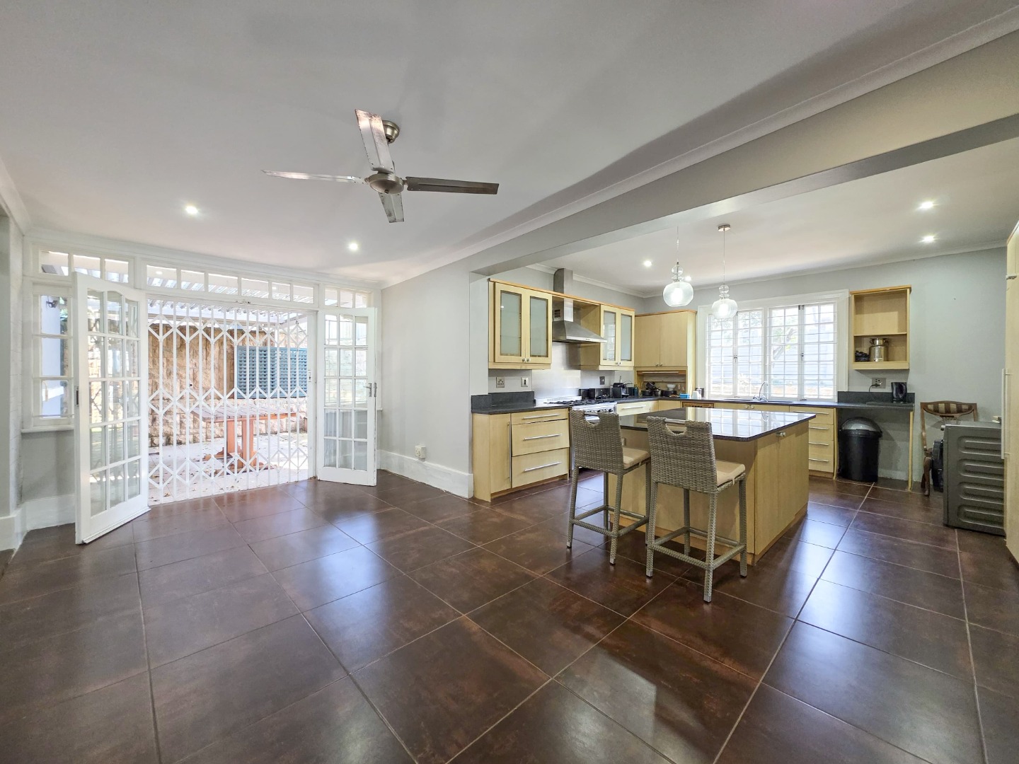 Inside, you'll find a spacious layout designed for easy living. The home features high ceilings and beautiful hardwood floors that flow through the main living areas. The lounge is a perfect spot to relax, complete with an ornate fireplace and air conditioning for those warm Durban days. The open-plan design seamlessly connects the living spaces, including a modern kitchen with an island, making it ideal for family gatherings and entertaining.