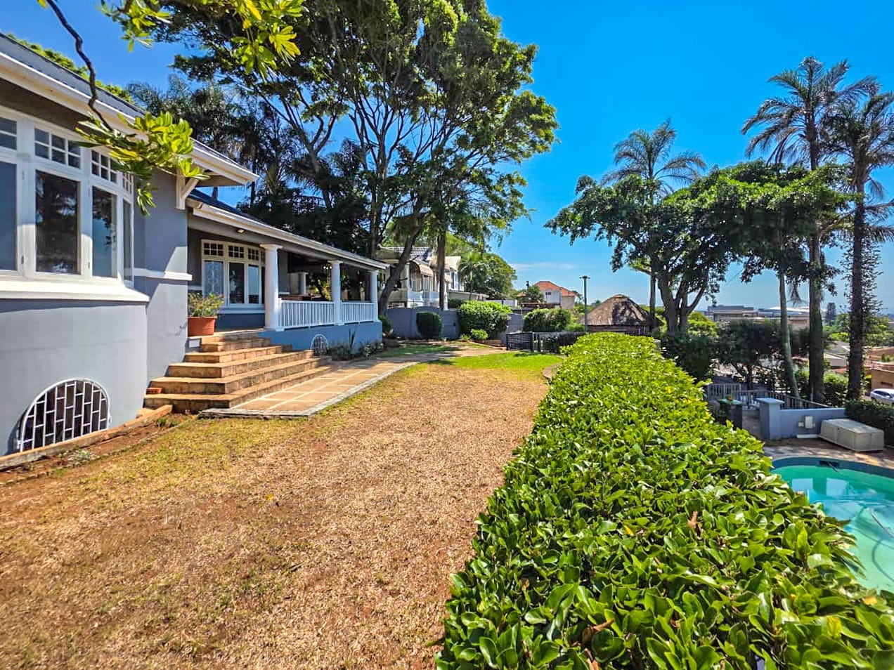 Step into this lovely 4-bedroom, 3-bathroom home in the charming suburban area of Essenwood, Durban. Right from the curb, you'll notice its classic appeal with a welcoming covered porch, elegant bay windows, and trees that offer a sense of established comfort. The property boasts a generous 1096 sqm erf, providing plenty of space to enjoy.