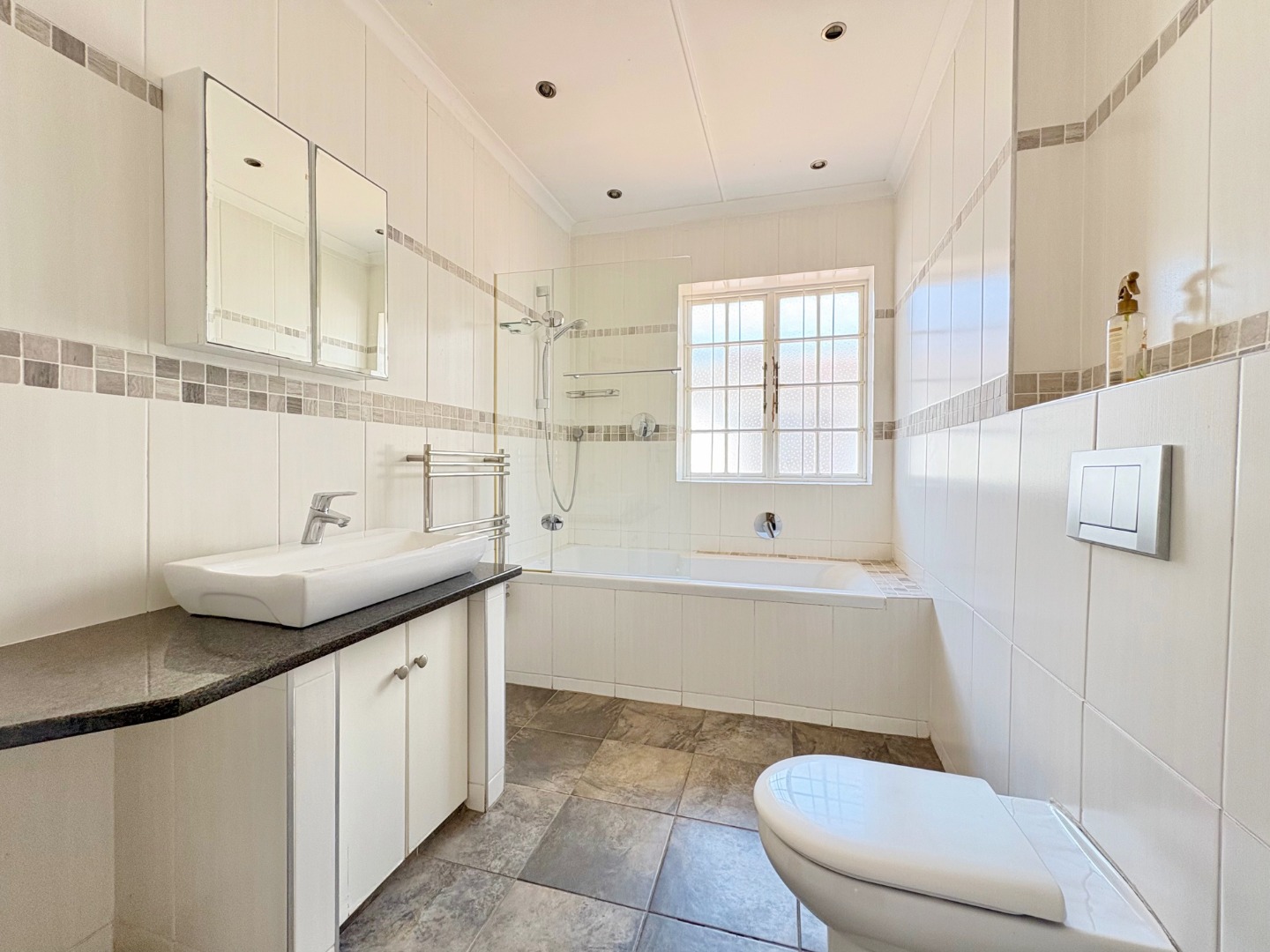 On the lower level, adjacent to the double garage, a spacious studio flatlet with airconditioning has its own kitchenette and small private patio. There is also an extra bedroom and bathroom with loo, basin and shower, which offers flexibility for guests, teens, grandparents or home-office needs.