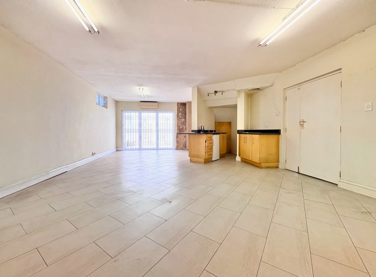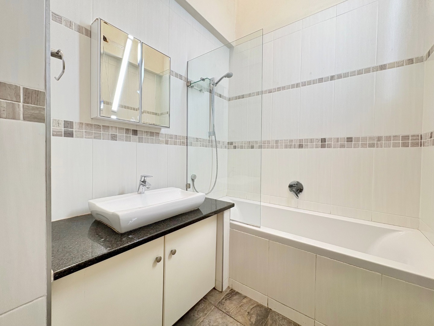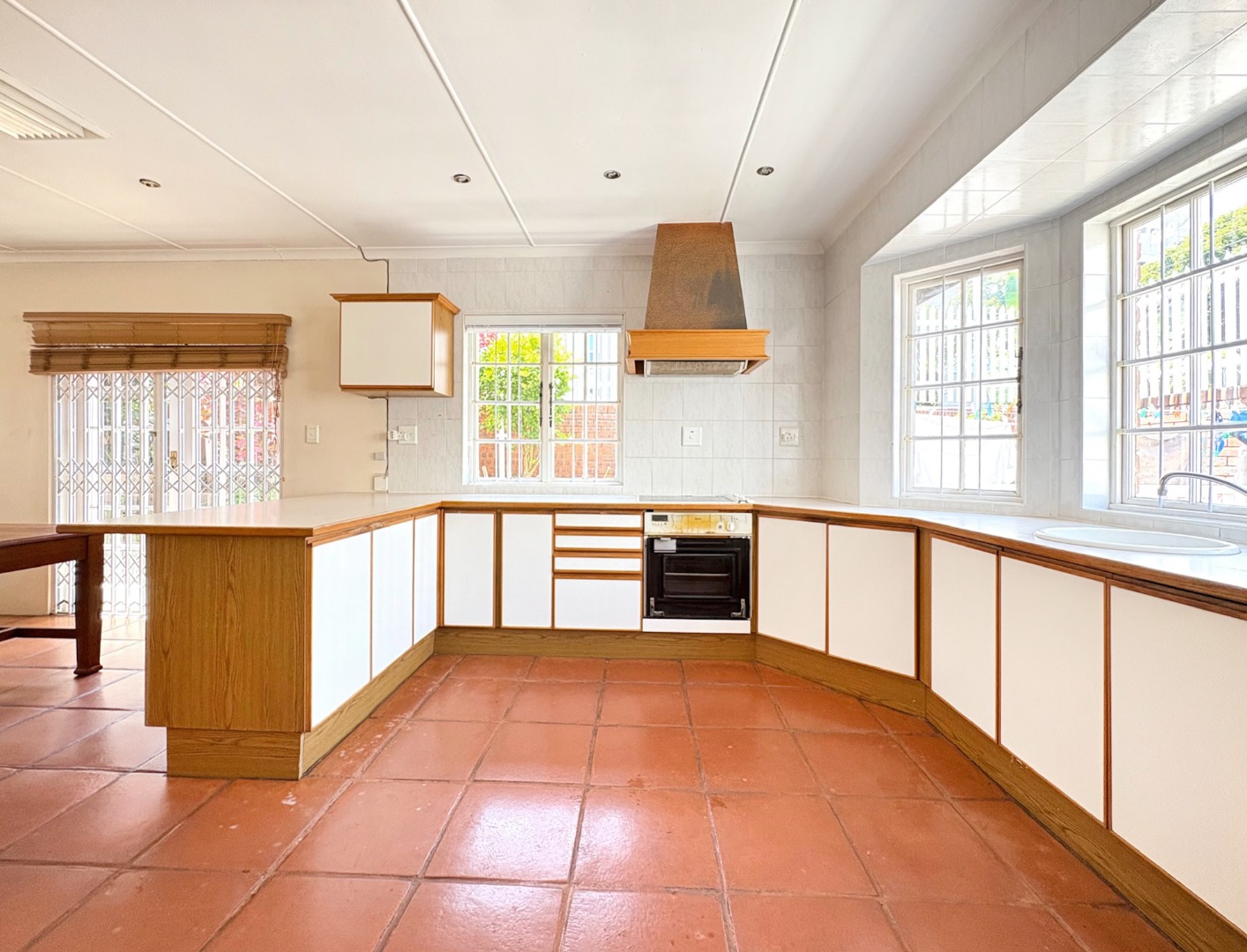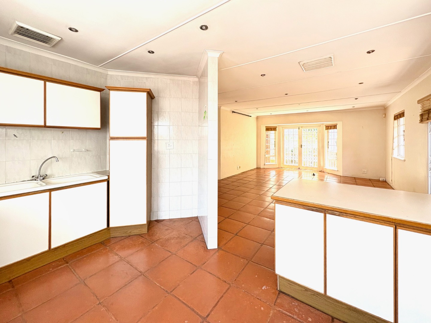 The bright open plan kitchen and lounge with ducted airconditioning leads out to a sunny patio and low-maintenance garden. The kitchen is very spacious with plenty of storage space and has a counter where one can sit at. There is plumbing for a dishwasher.