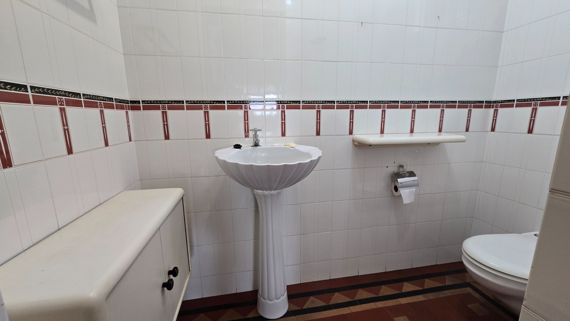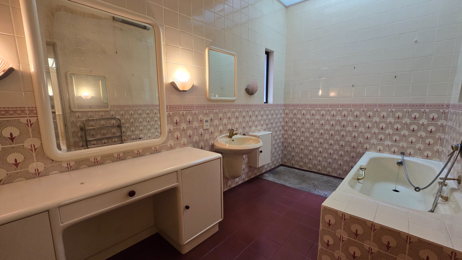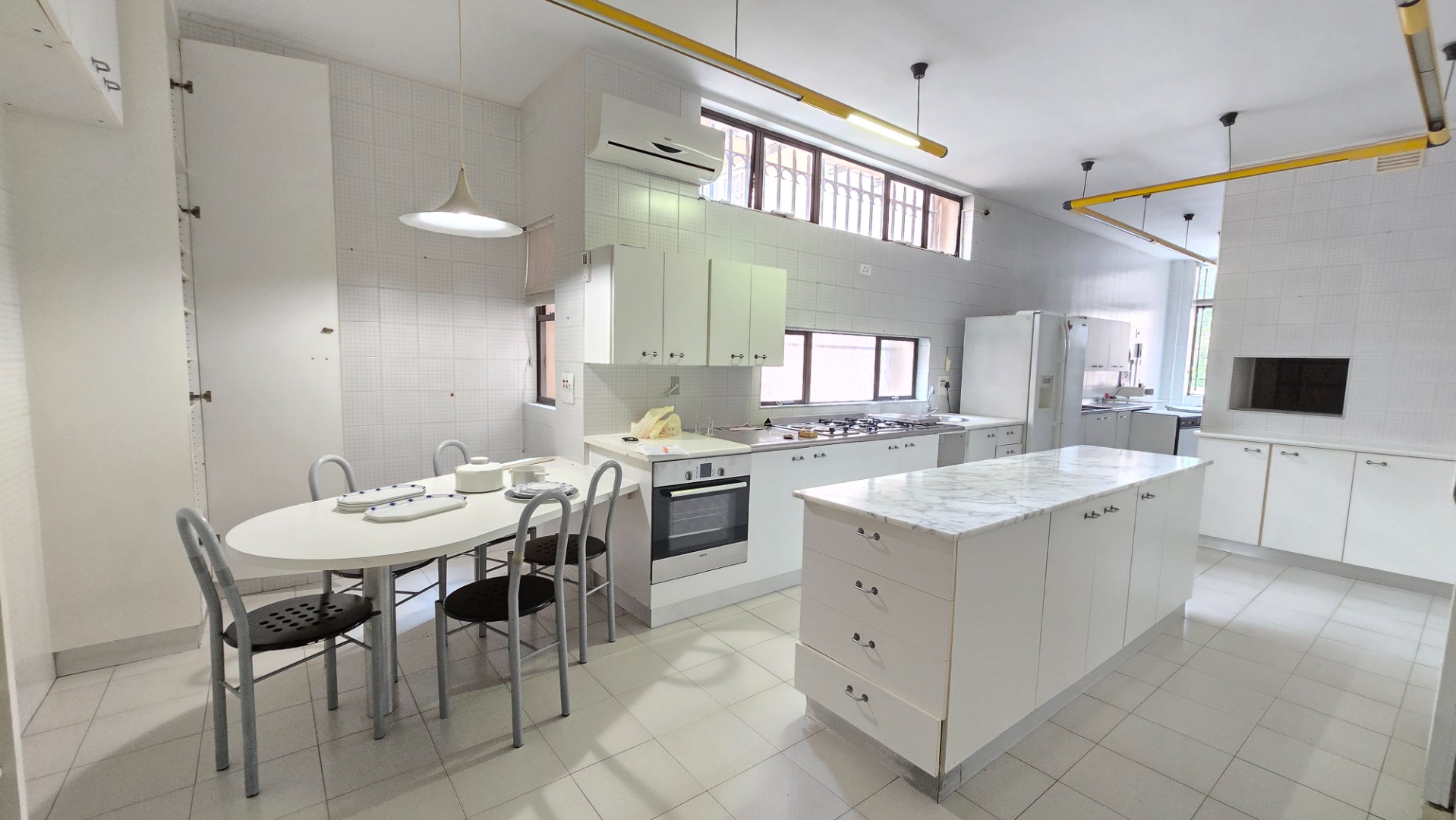 The kitchen is dated and in desperate need of renovation but on the plus side it very spacious and can accommodate any kitchen appliance money can buy , with long counters on either side and a center island with breakfast nook , pantry and scullery with laundry make the kitchen ideal for any large family.