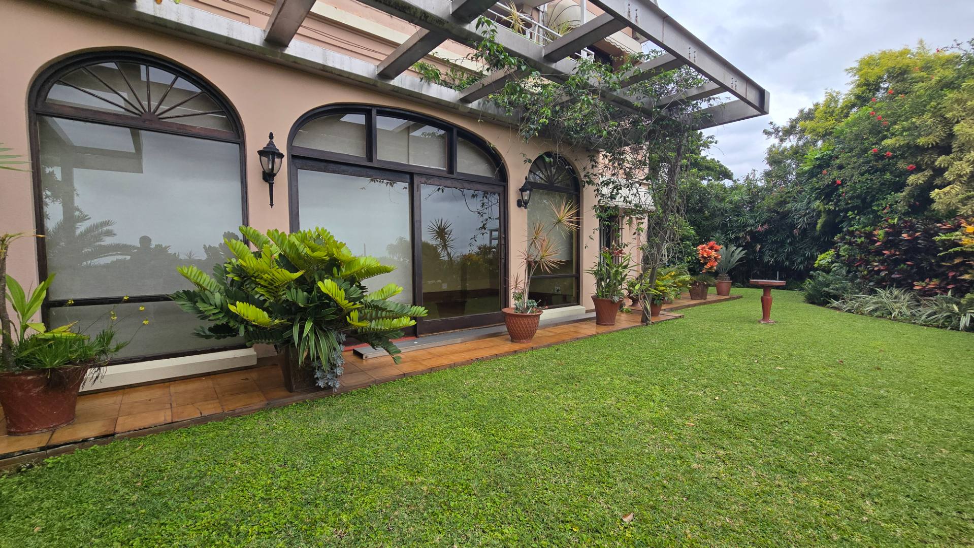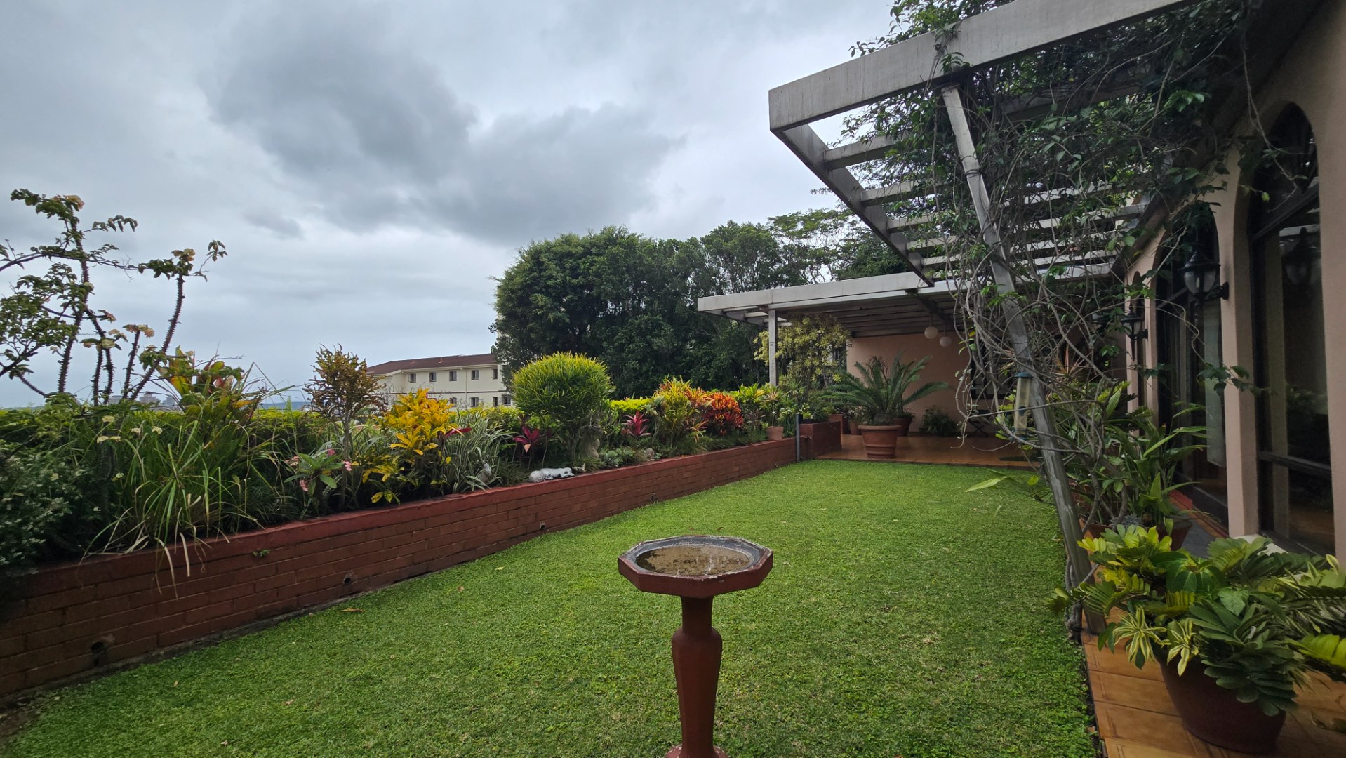 Security is paramount with 24-hour security, an access gate, electric fencing, security gates, and burglar bars, all supported by an intercom system. Fibre connectivity ensures modern living standards. Nestled in the suburban heart of Durban, this property enjoys a scenic view and offers convenient access to local amenities, embodying a desirable South African lifestyle.