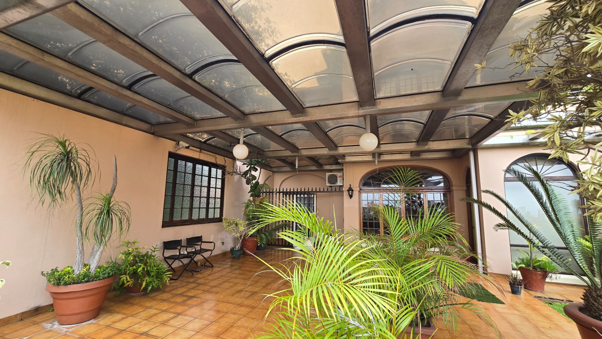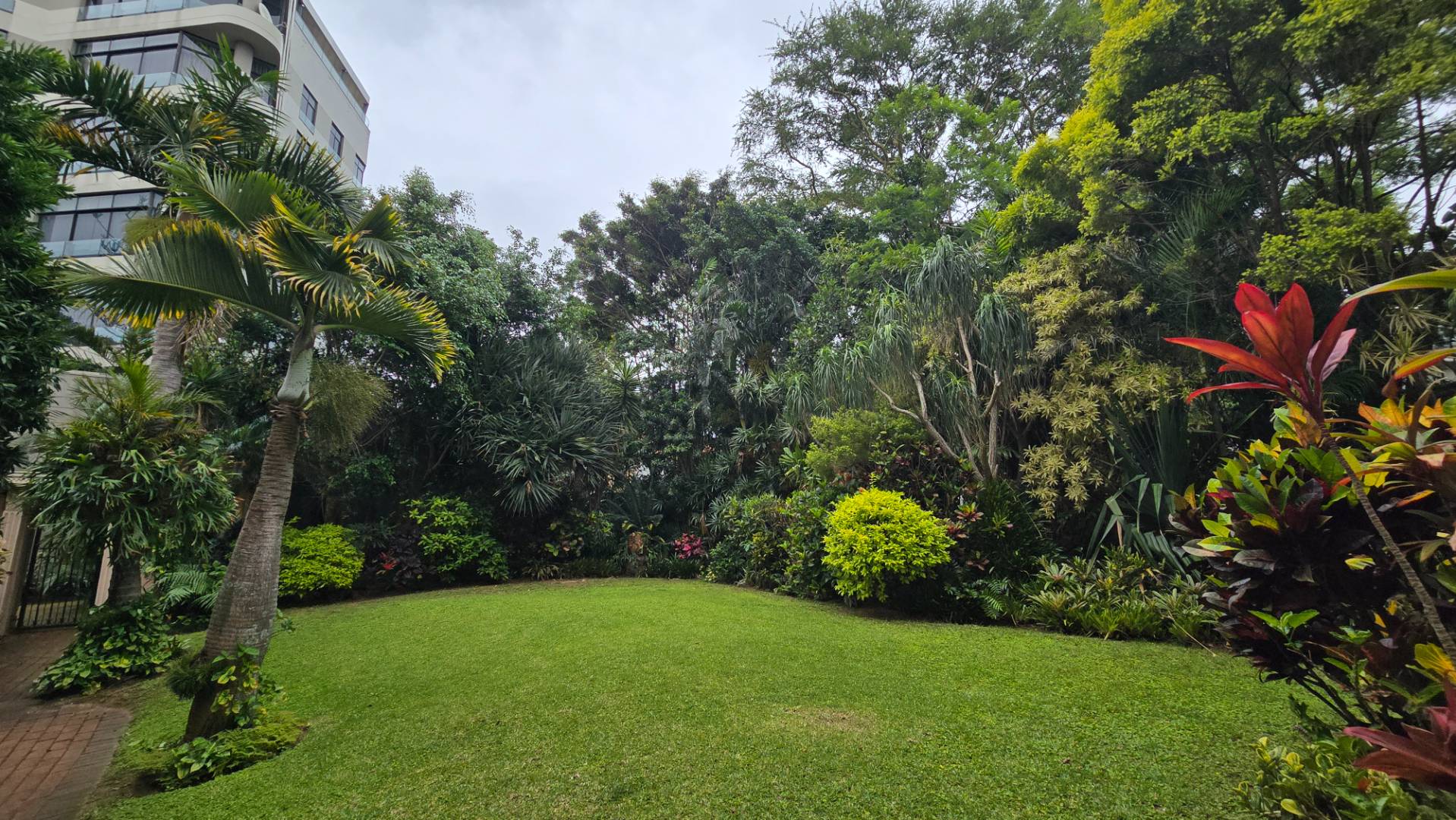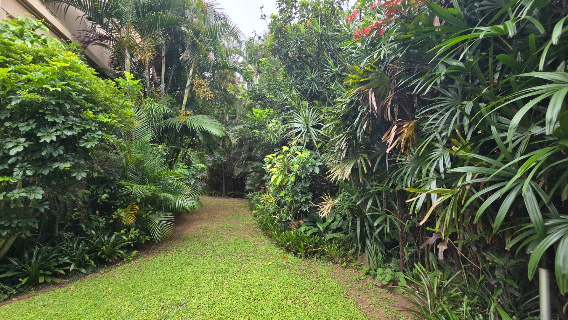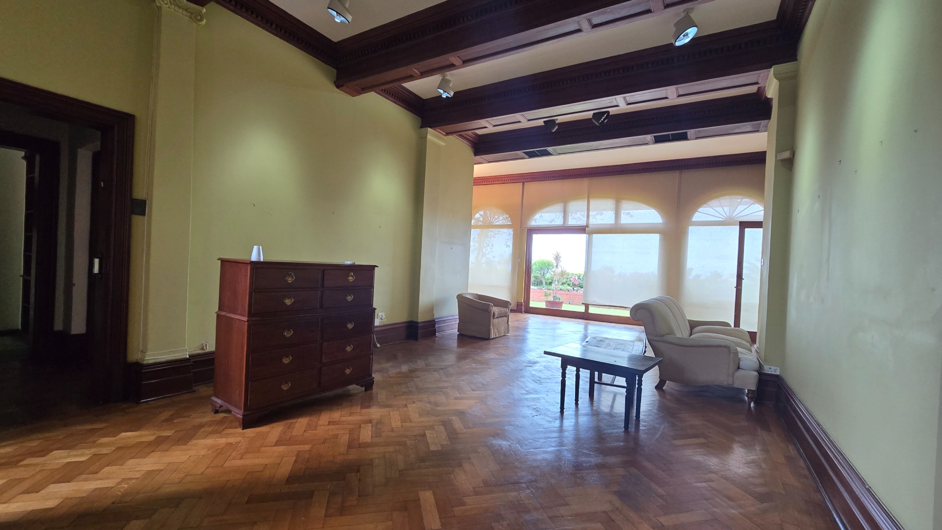 A distinctive multi-story residence in Essenwood, Durban, immediately captivates with its unique architectural style, featuring a prominent red-roofed turret and decorative window awnings. Surrounded by lush, mature tropical landscaping and a well-maintained lawn, this substantial property offers a grand and private feel, promising a home of character.