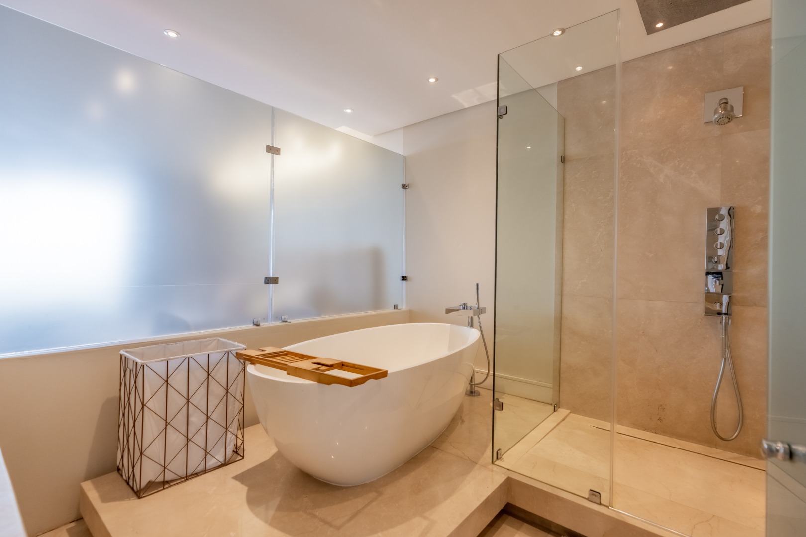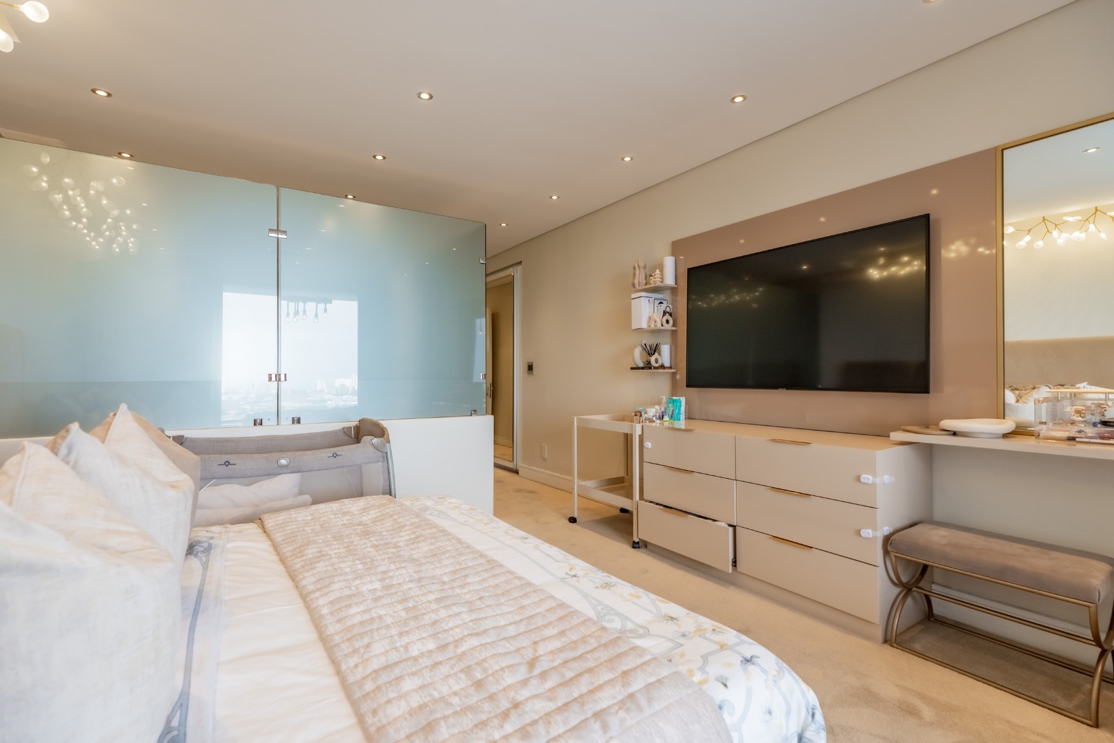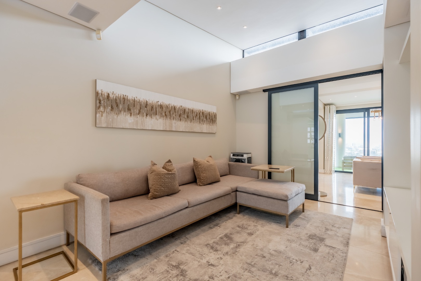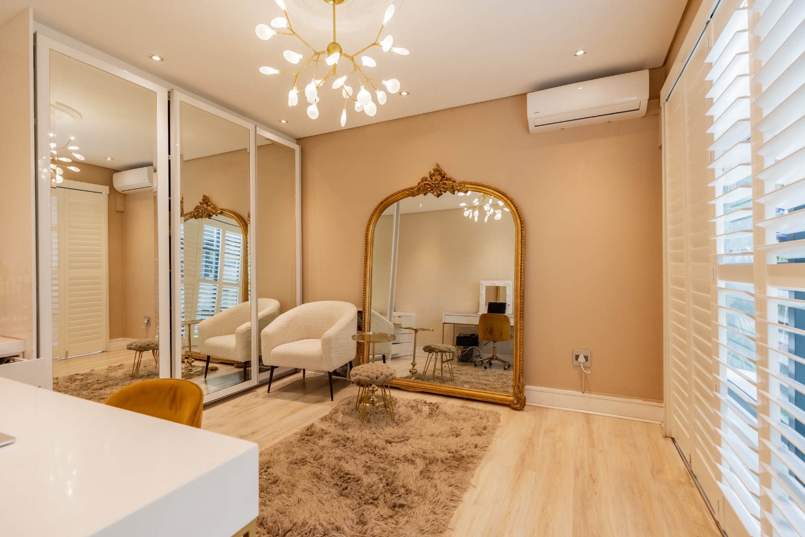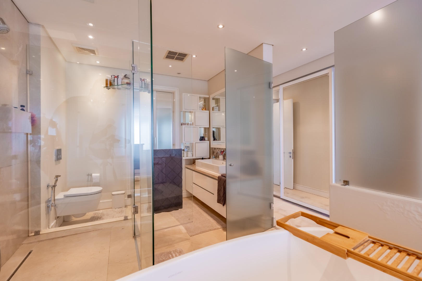 The elegant dining room features custom built-in cupboards and also opens onto the balcony, enhancing the seamless indoor-outdoor flow. A private rim-flow swimming pool completes the entertainment area, offering the same magnificent views over Durban.