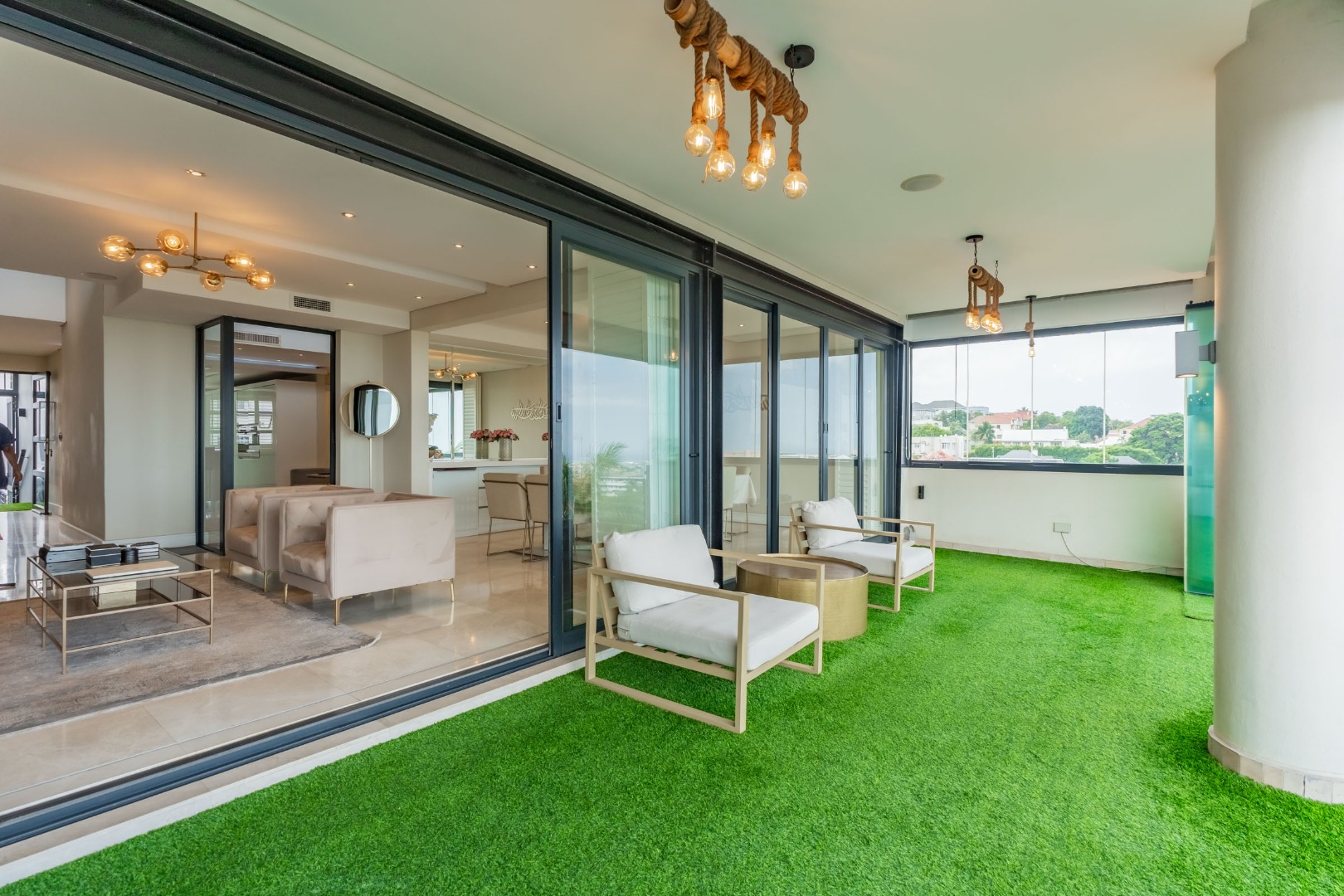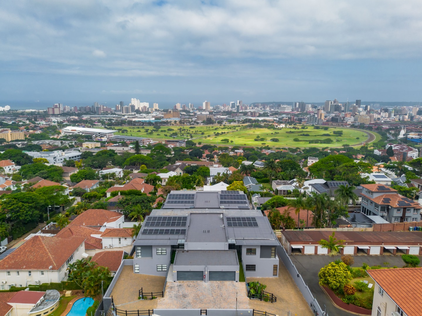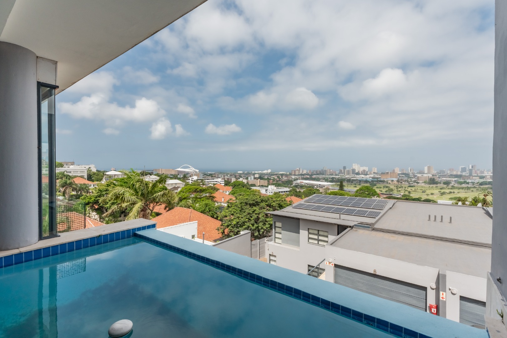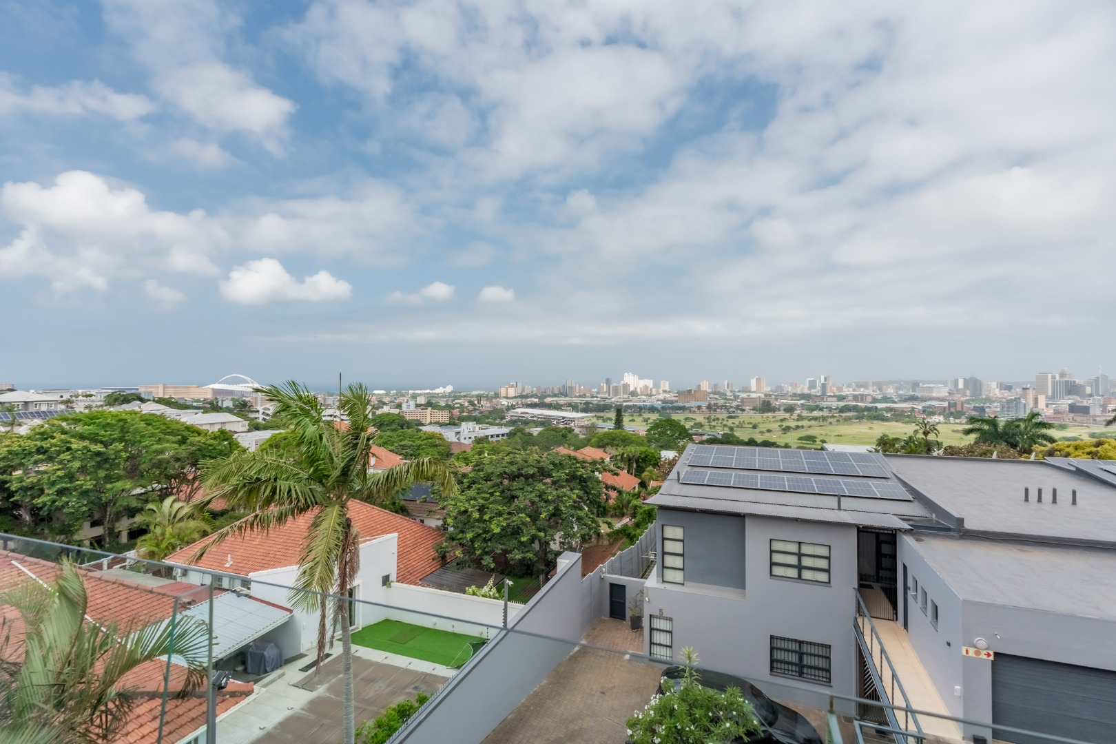 Located in an exclusive complex of only eight simplexes, this exceptional home offers drive up access and uninterrupted, breathtaking views of the ocean, city skyline, harbour, and Greyville Racecourse.