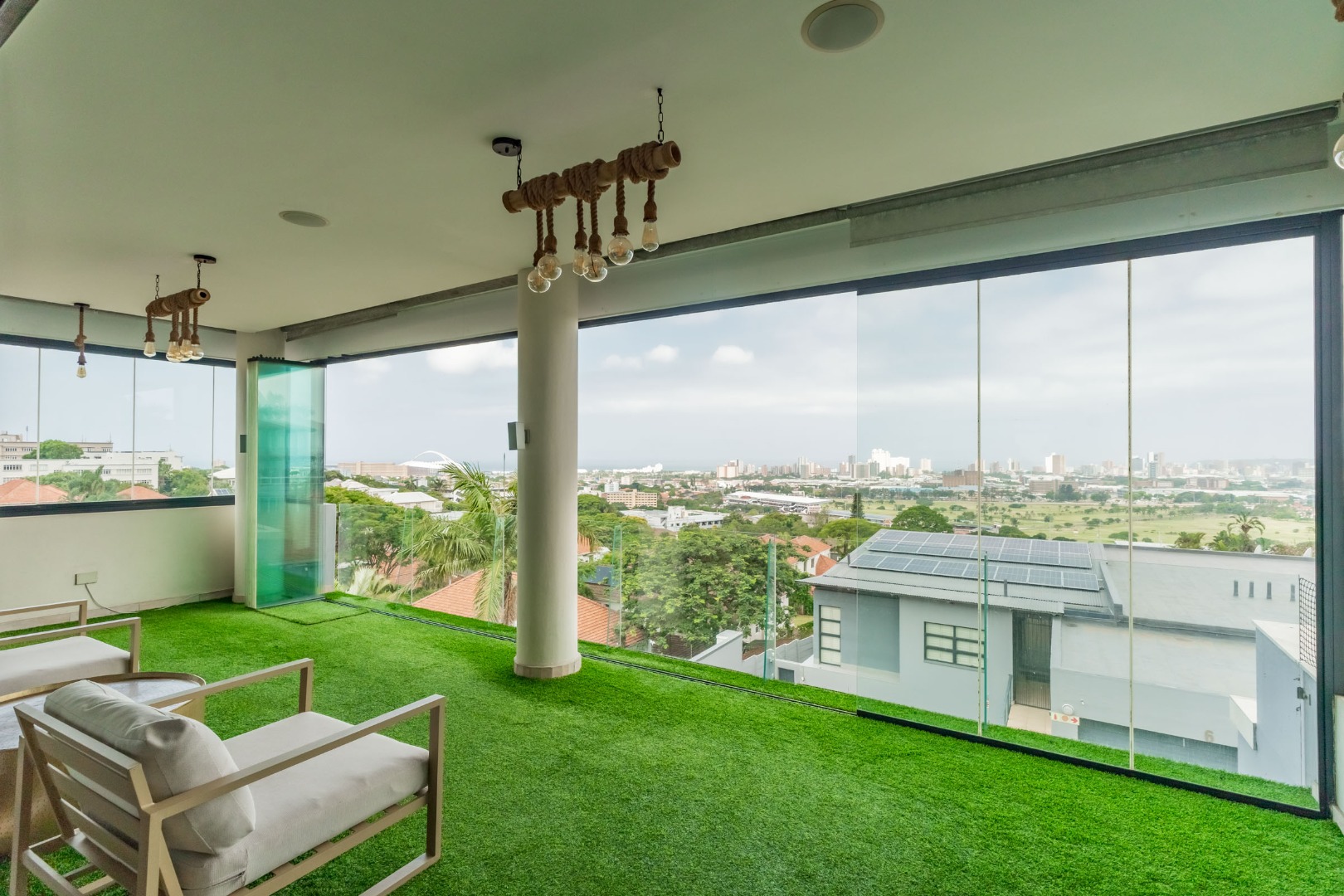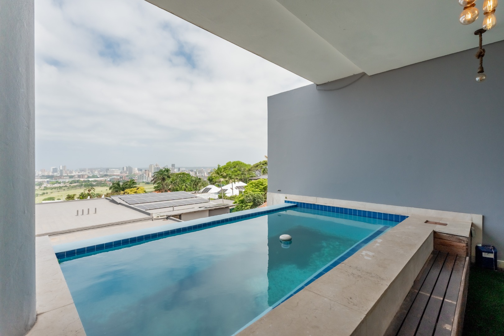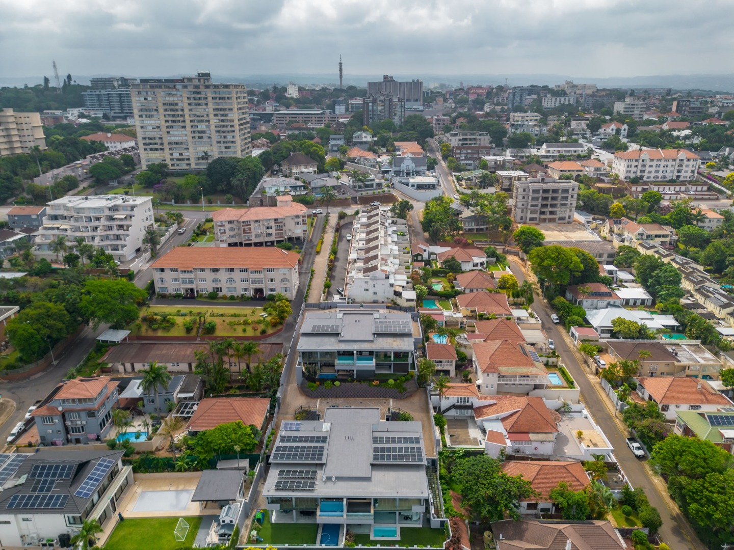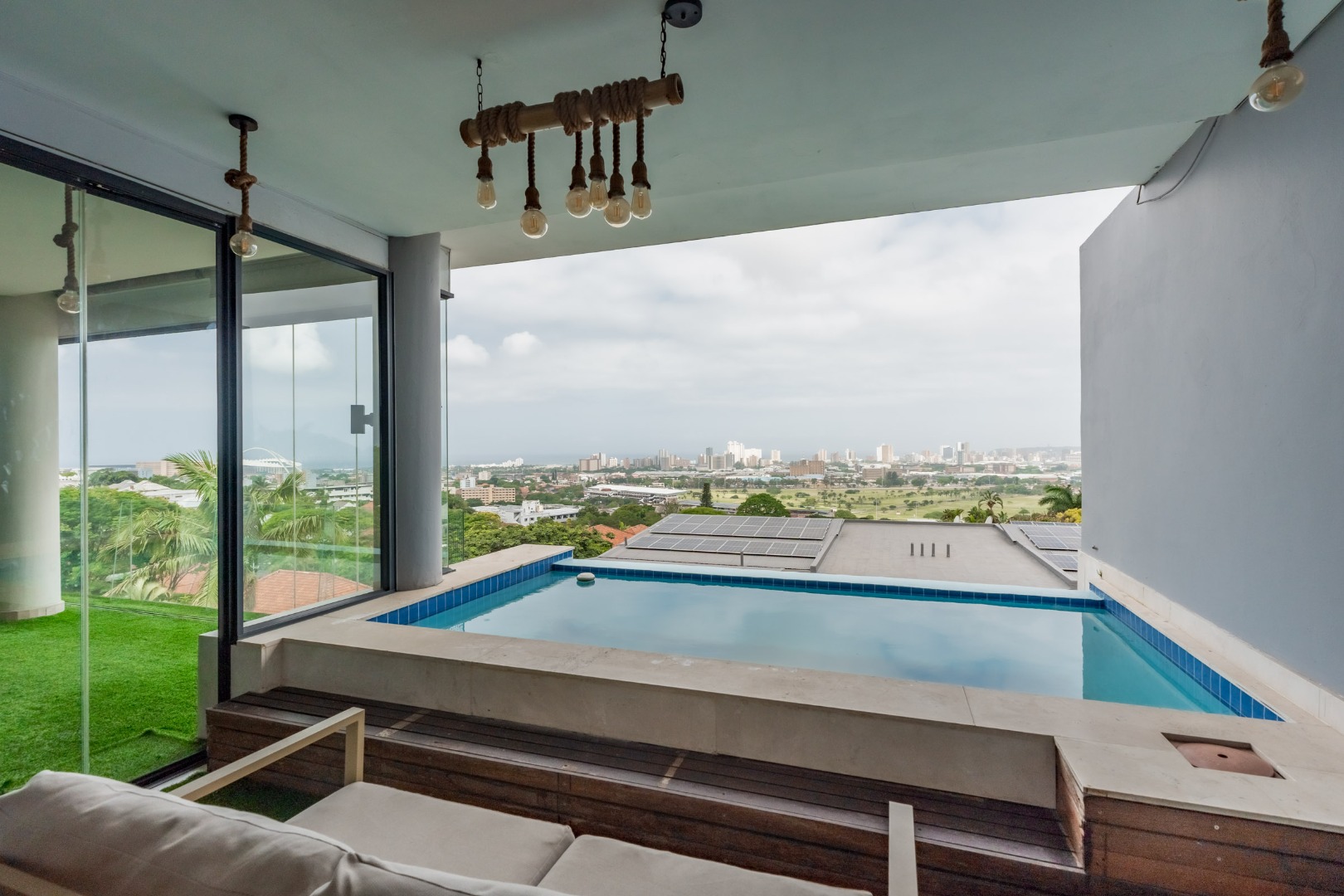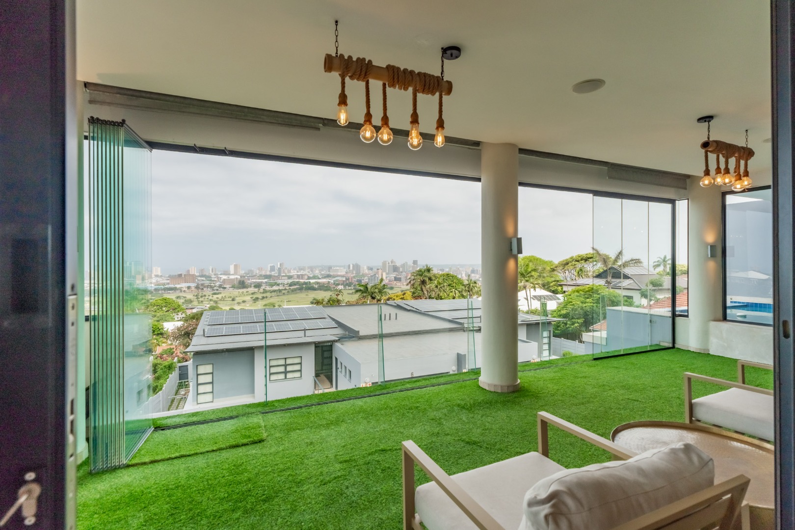 Located in an exclusive complex of only eight simplexes, this exceptional home offers drive up access and uninterrupted, breathtaking views of the ocean, city skyline, harbour, and Greyville Racecourse.