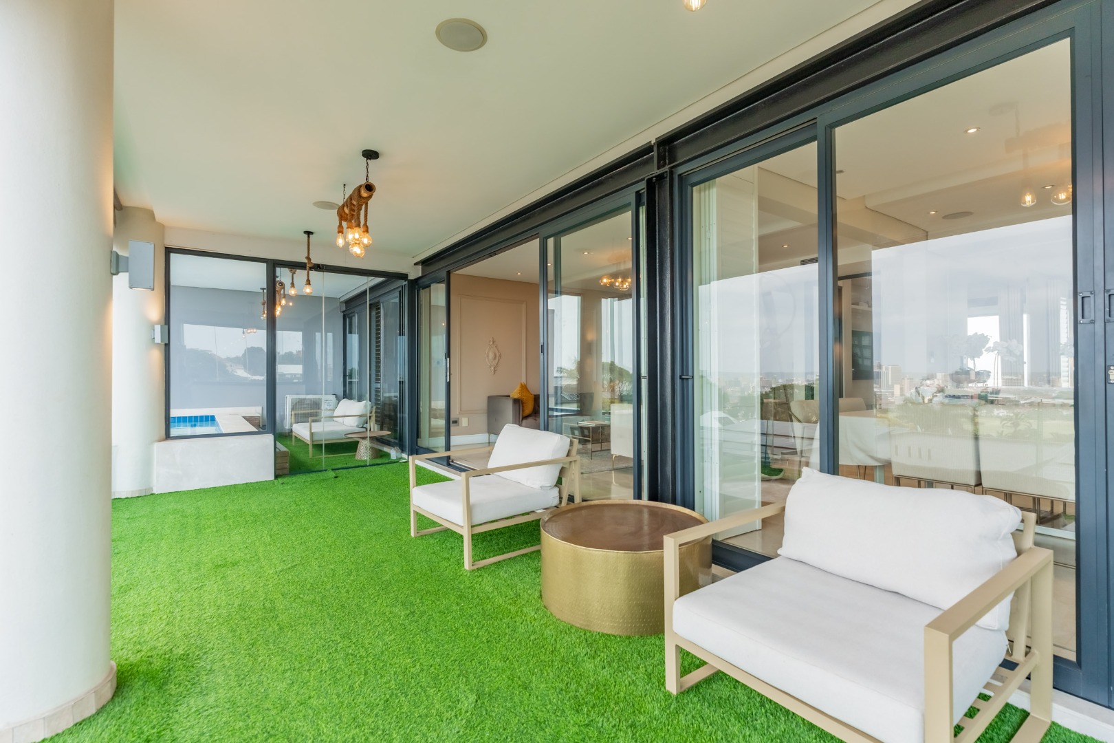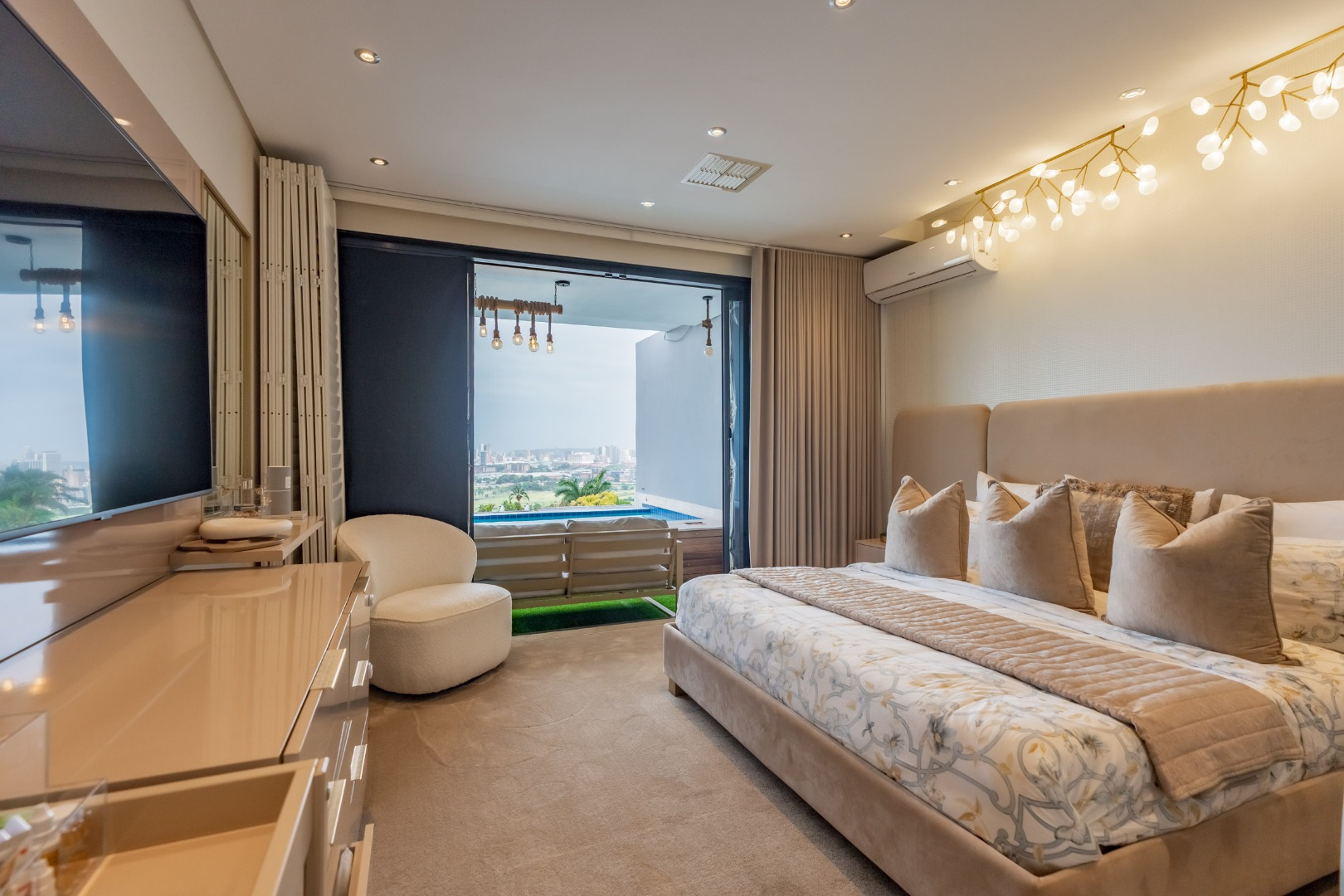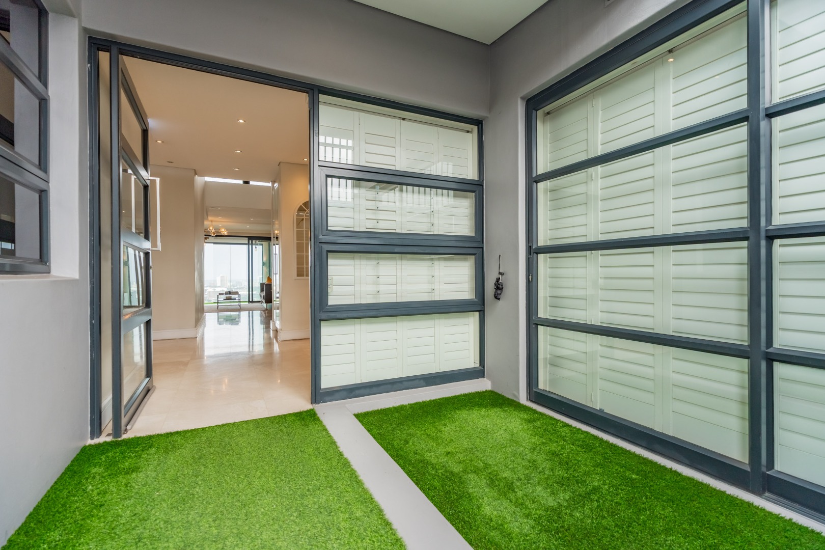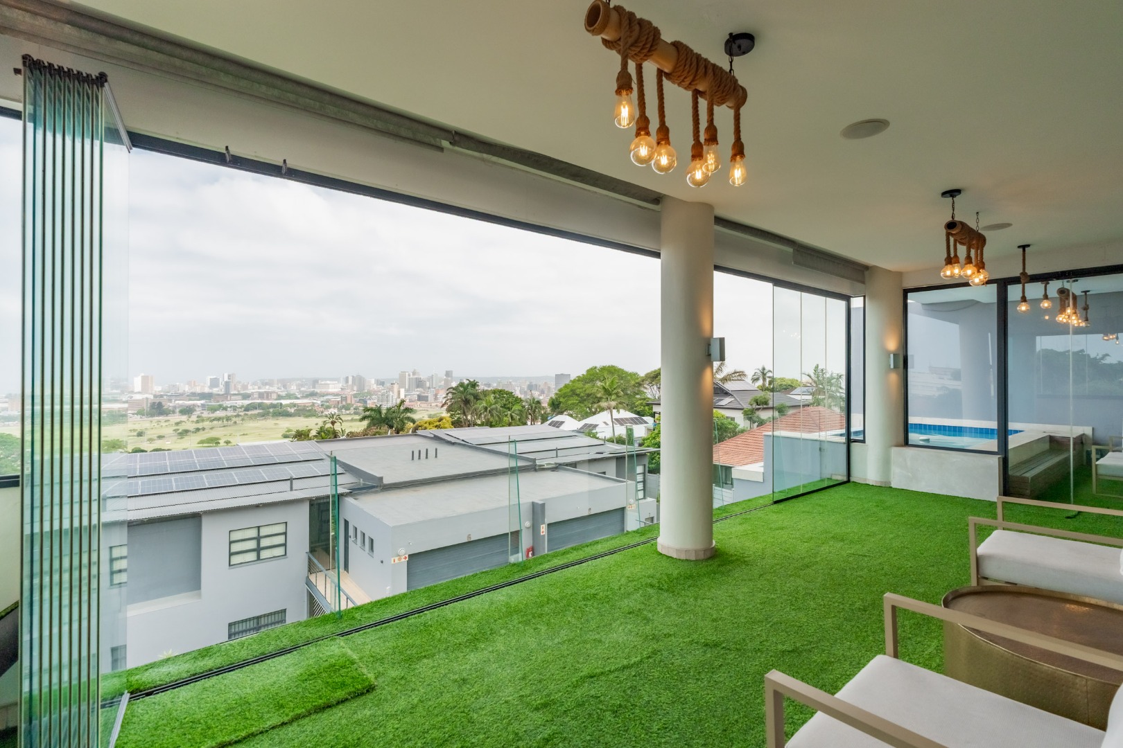 Located in an exclusive complex of only eight simplexes, this exceptional home offers drive up access and uninterrupted, breathtaking views of the ocean, city skyline, harbour, and Greyville Racecourse.