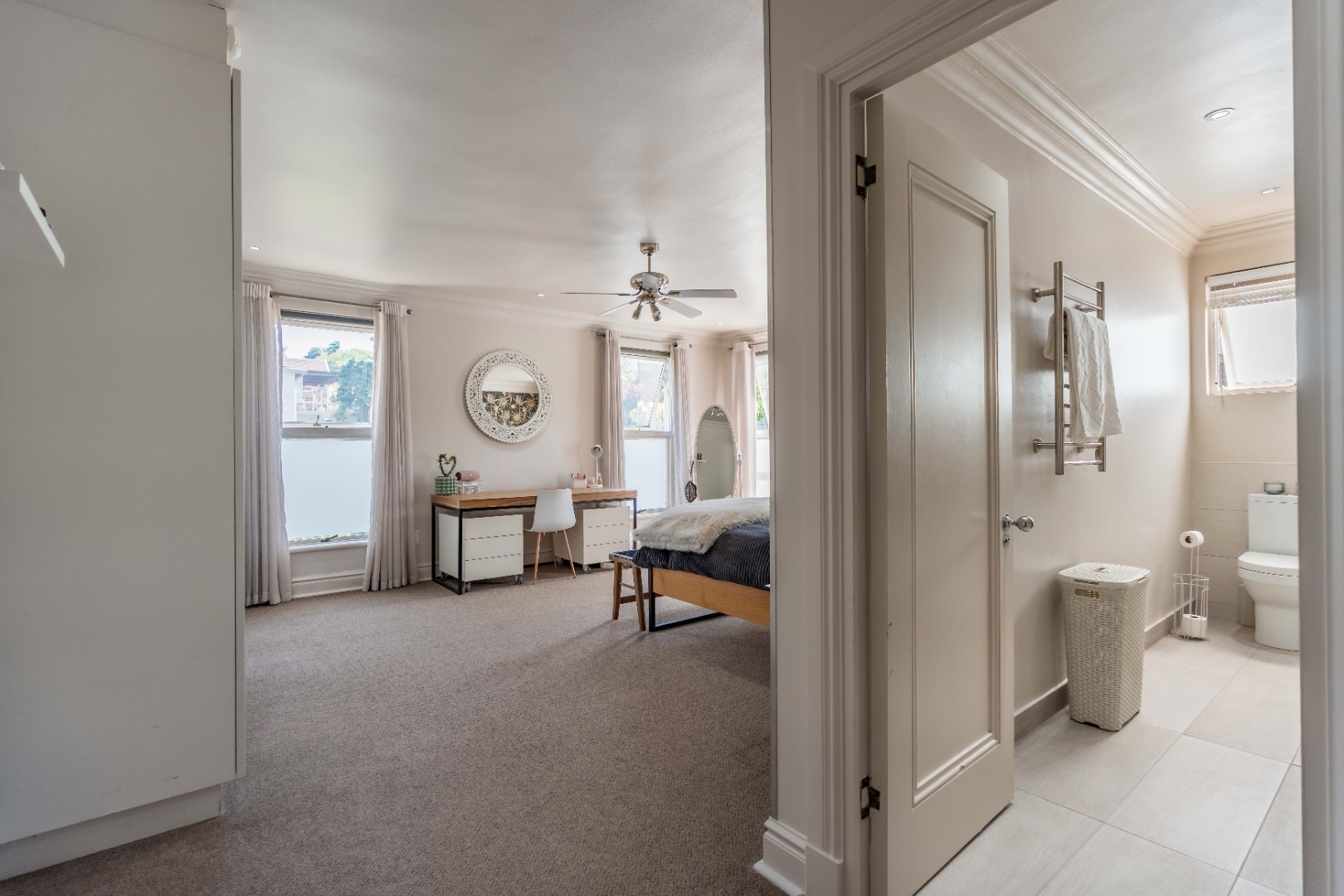 The master bedroom features a dressing room, while the home offers exceptional storage throughout, including linen cupboards upstairs, additional cupboards beneath the staircase, and dedicated storage spaces for towels and household essentials making this home as practical as it is spacious.