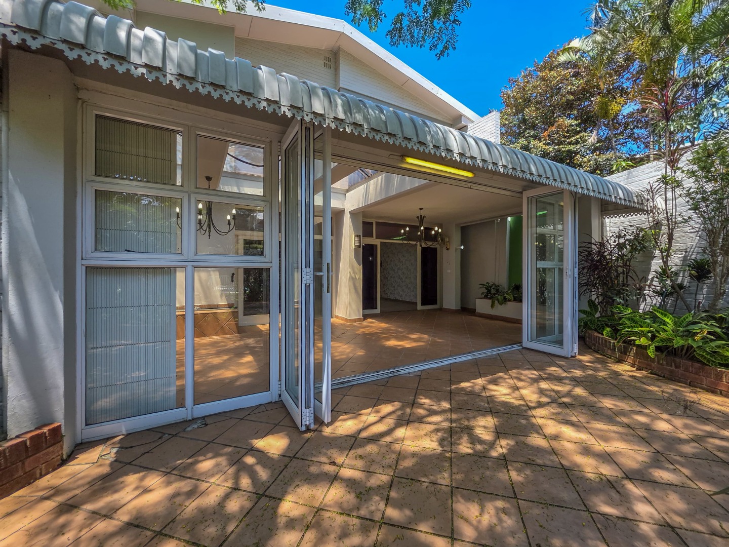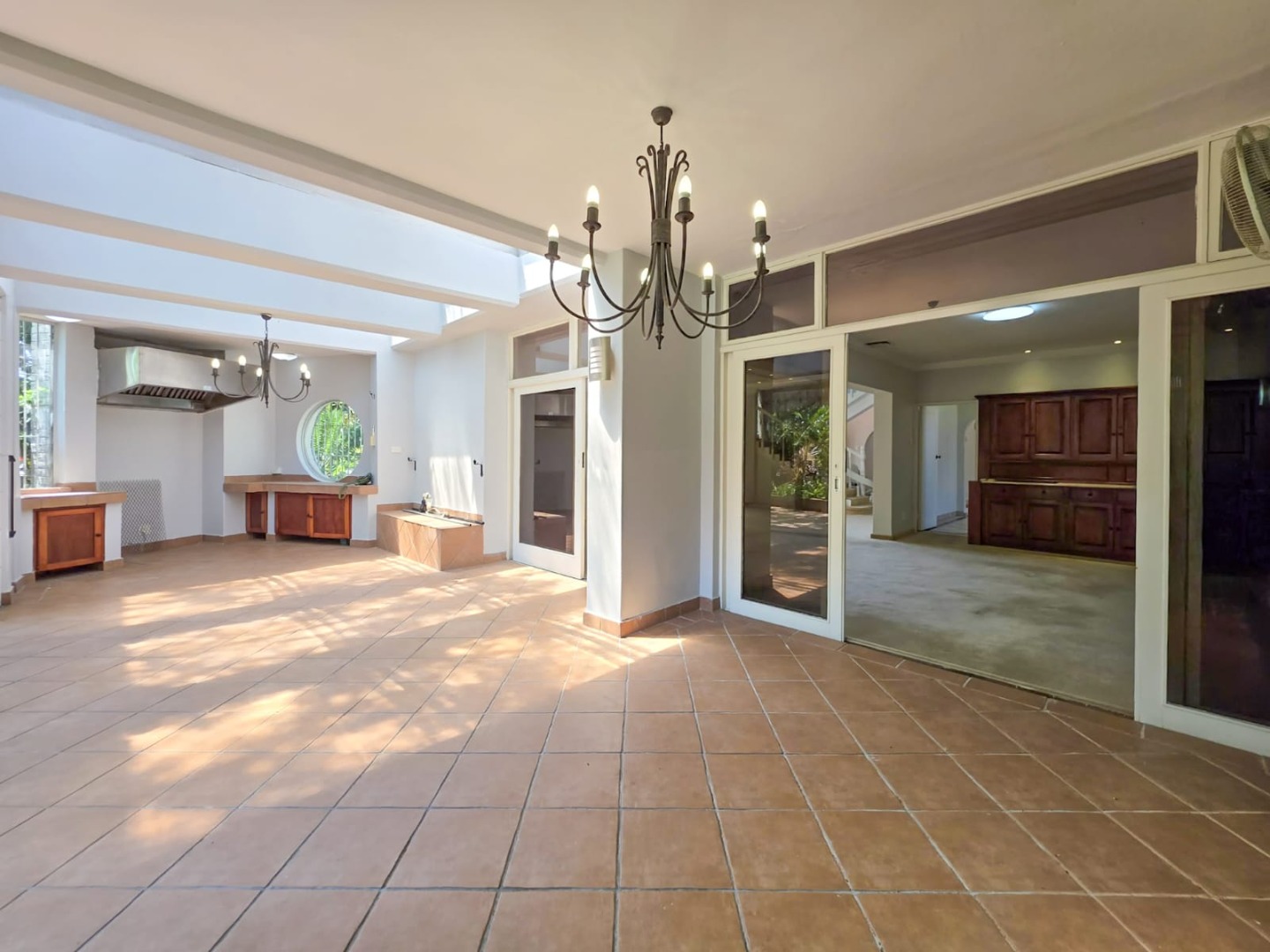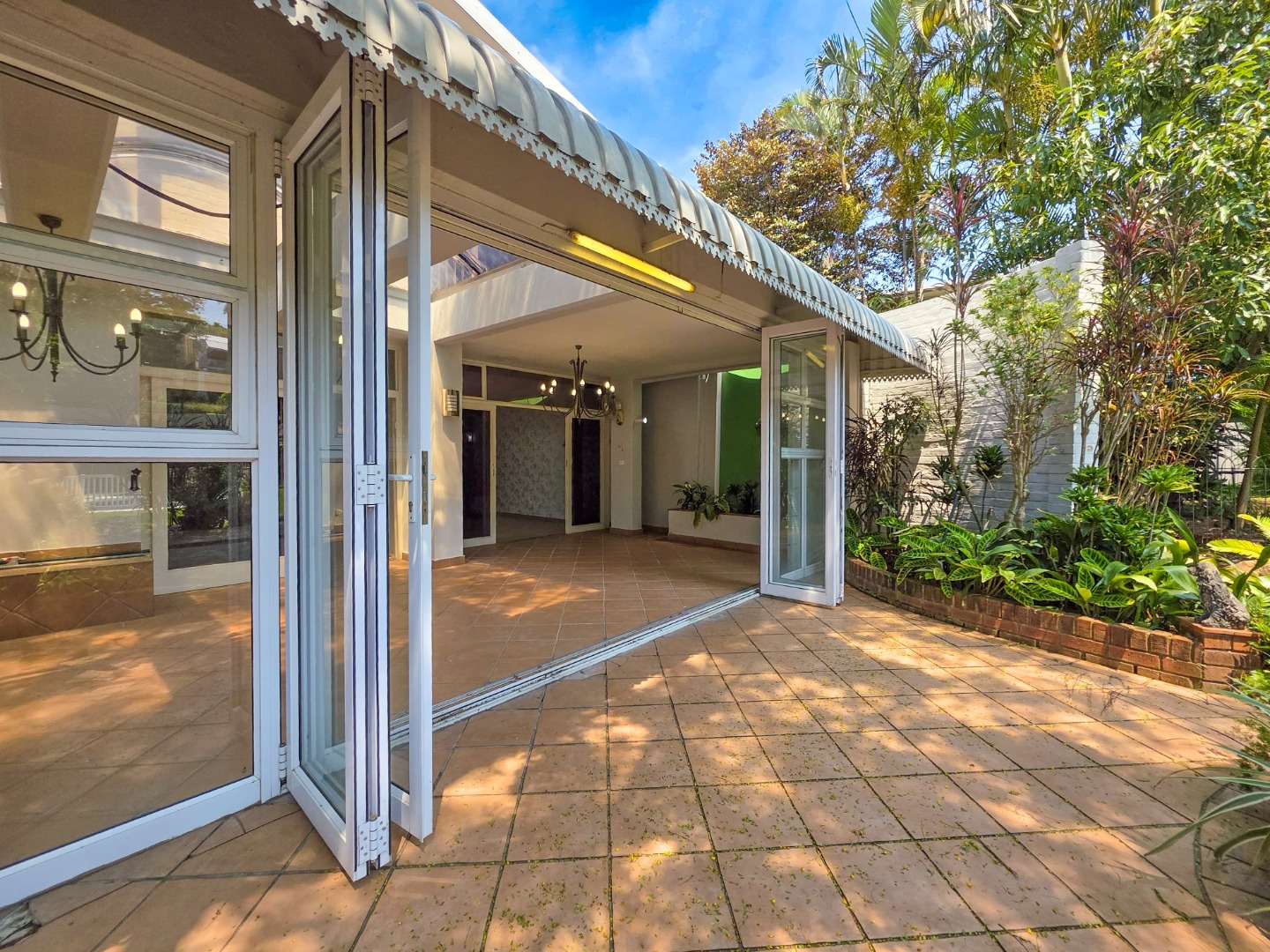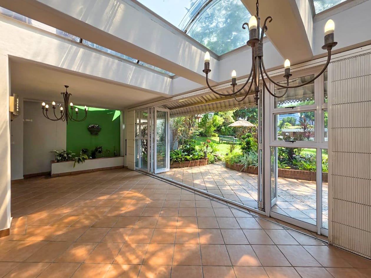 - Separate dining and lounge areas flowing onto a large patio with a built-in braai