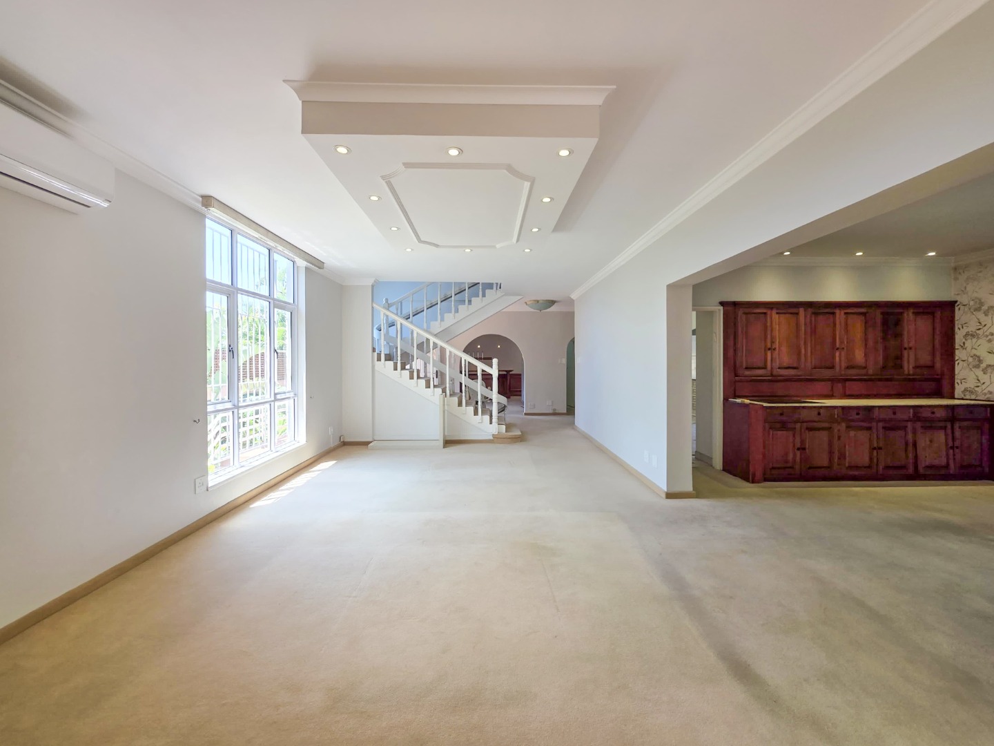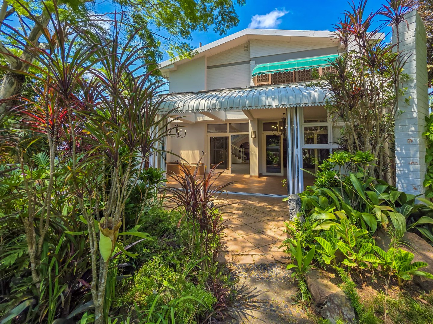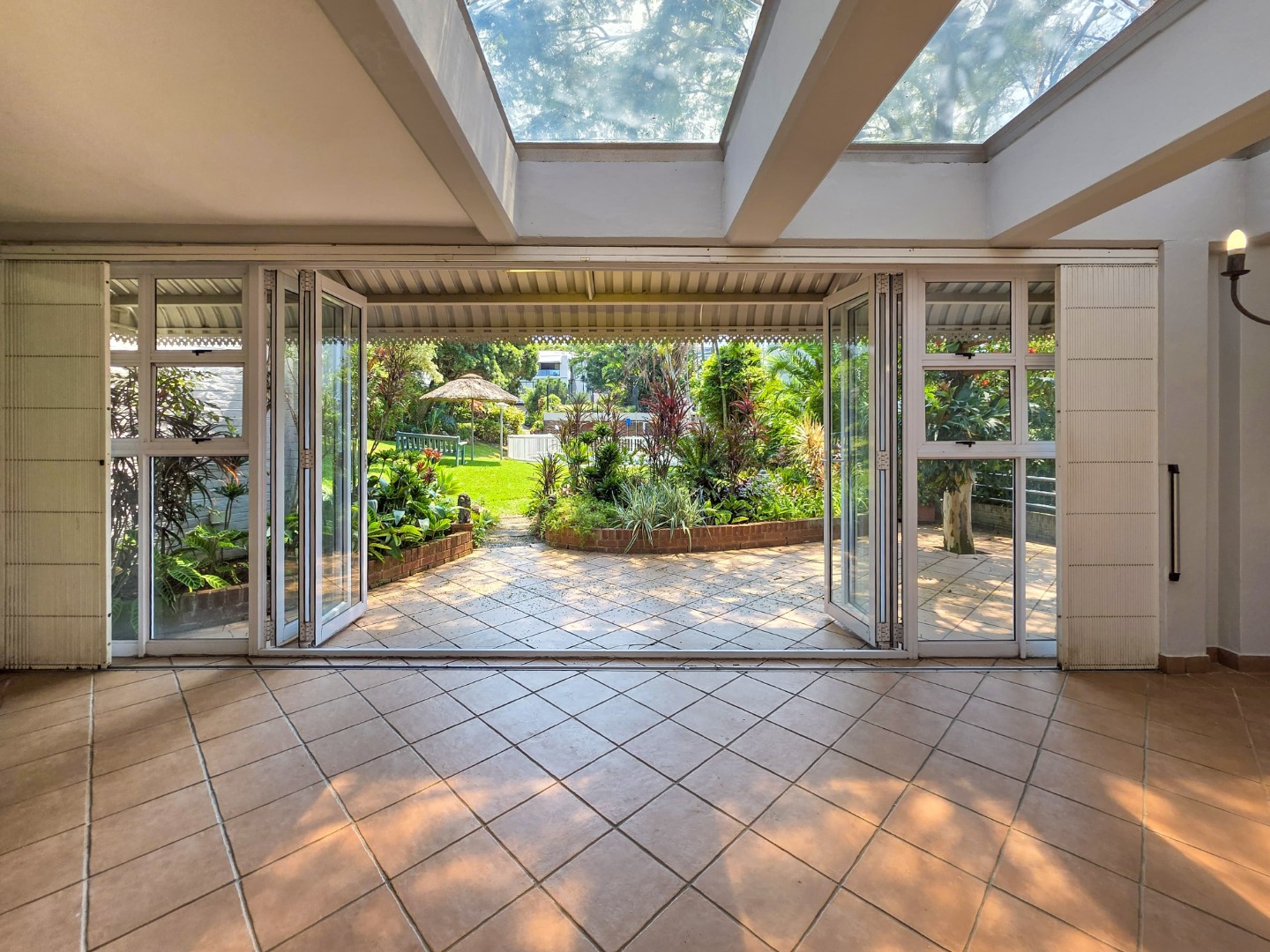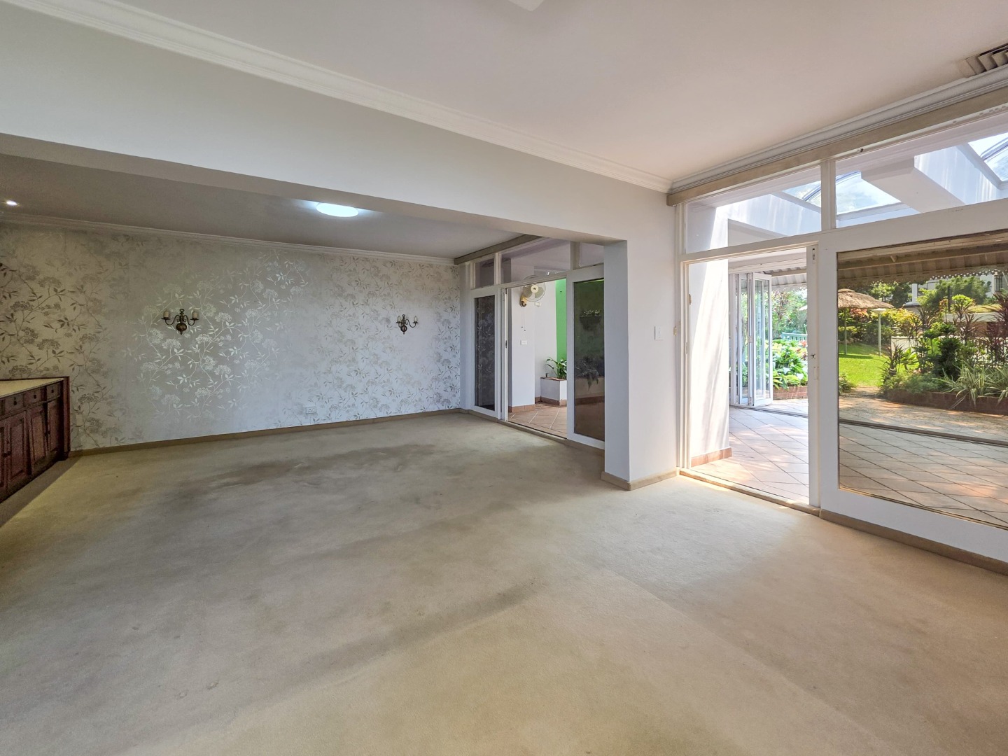 - Separate dining and lounge areas flowing onto a large patio with a built-in braai