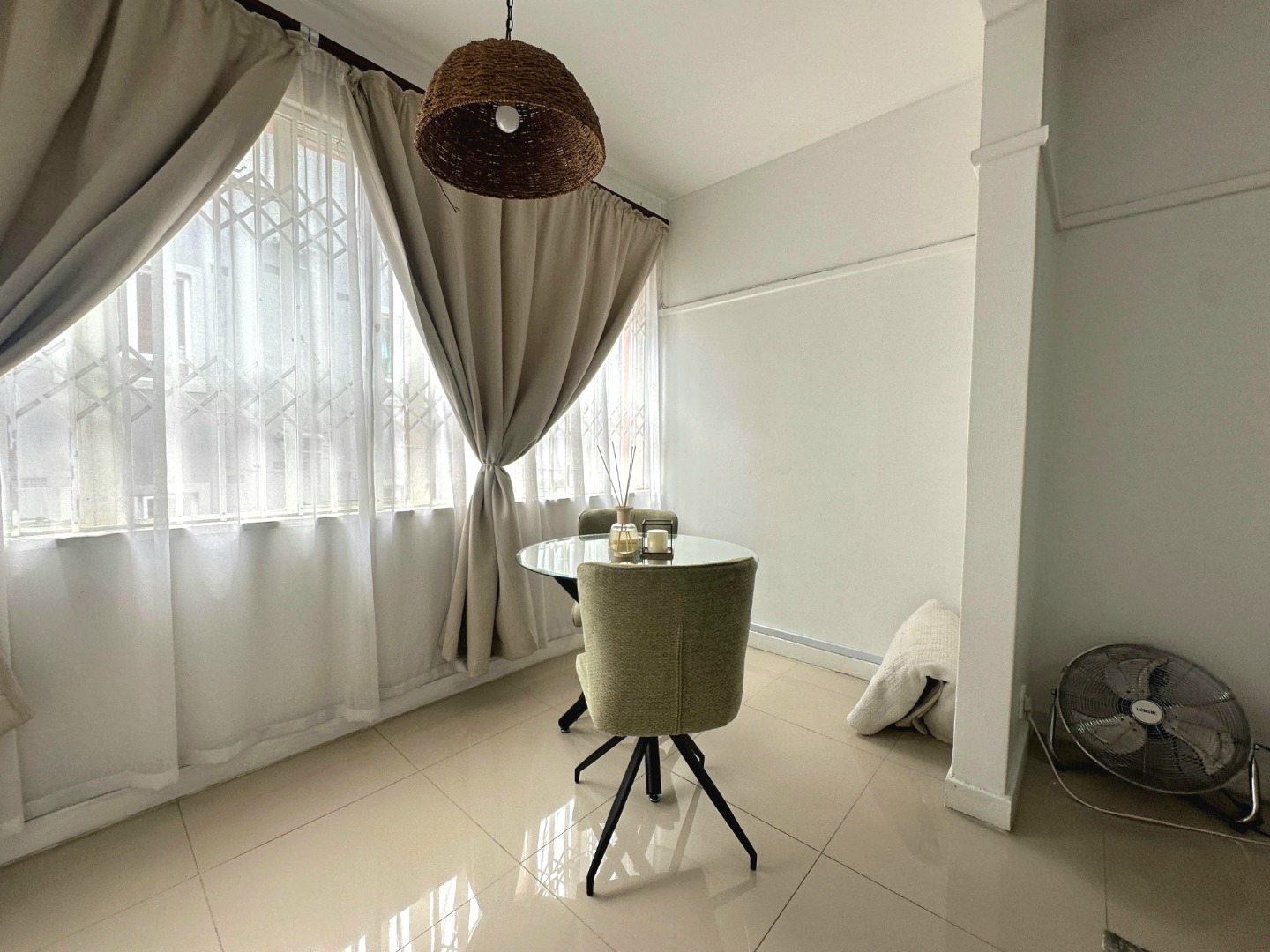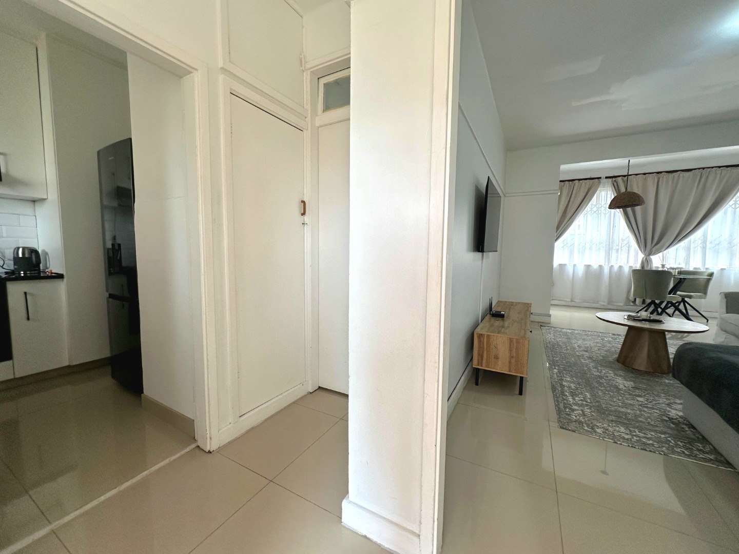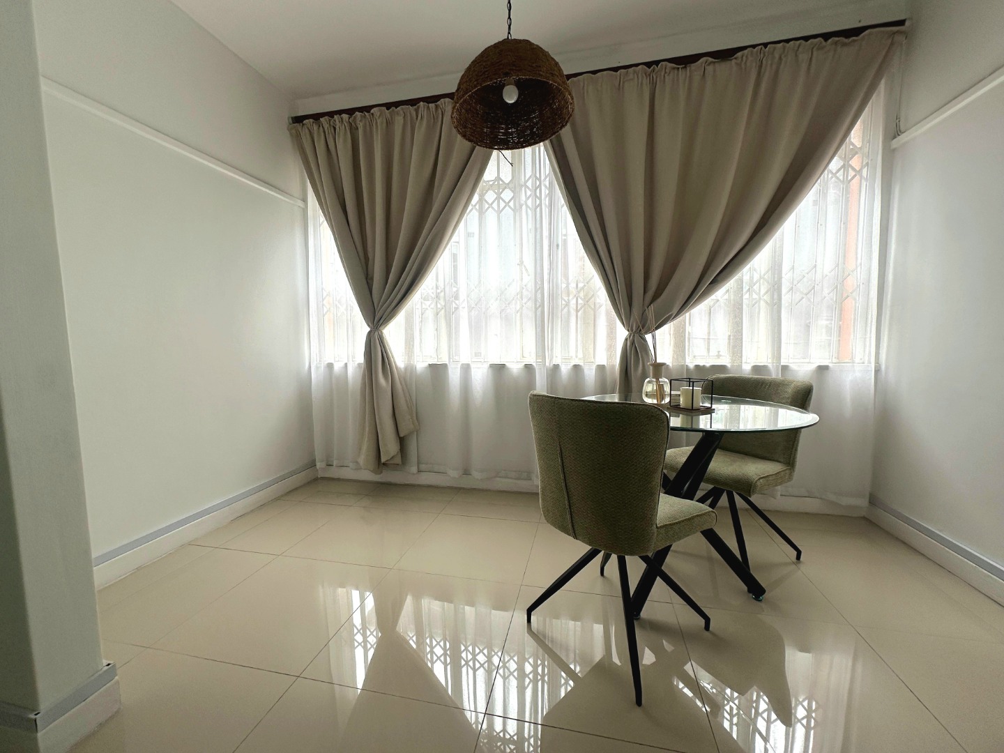 Discover modern suburban living in this inviting 1-bedroom apartment located in the vibrant Bulwer area of Durban. This well-appointed residence offers a comfortable and contemporary lifestyle, ideal for individuals or couples seeking convenience and style. This established Durban suburb is known for its accessibility and community atmosphere, providing a balanced urban experience. Spanning 61 square metres, the apartment boasts a bright and open-plan living area, seamlessly connecting to a dedicated dining space. The interior features a clean, neutral aesthetic with durable tiled flooring throughout, offering both elegance and easy maintenance. The lounge is designed for relaxation, accommodating a spacious L-shaped sofa and a wall-mounted TV, complemented by a stylish rug and a modern wooden entertainment unit. Natural light floods the dining area through large windows, creating an airy and welcoming ambiance, perfect for intimate meals or entertaining guests. A unique stained glass accent above a doorway adds a touch of character to the contemporary design. The apartment comprises one comfortable bedroom and a well-appointed bathroom, providing a private retreat. Designed with practicality in mind, these spaces offer a clean and functional environment, ready for personal touches. Convenience is key with one dedicated parking bay included, ensuring secure off-street parking. This property presents an excellent opportunity for those looking to invest in a modern, low-maintenance home within a desirable Durban suburb. Key Features: * 1 Bedroom, 1 Bathroom * 61 sqm Floor Size * Open-plan living and dining area * Modern, neutral interior finishes * Tiled flooring throughout * Dedicated parking bay * Located in suburban Bulwer, Durban