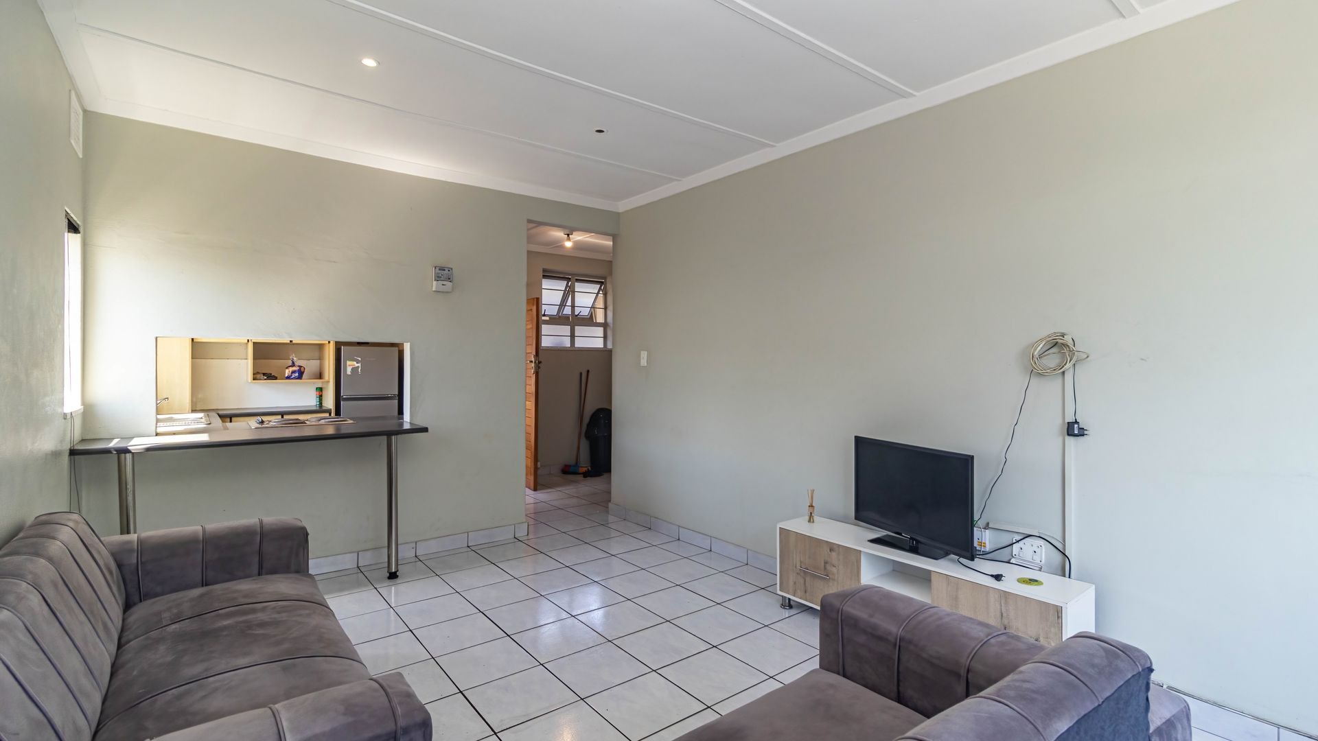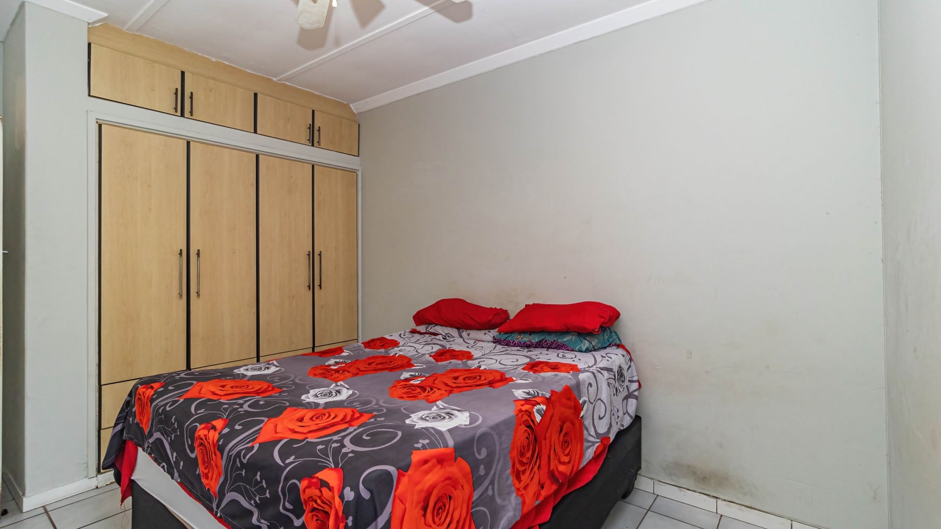 The main bedroom and additional half-bedroom both feature built-in cupboards, offering practical storage and flexibility — perfect for a home office, guest room, or nursery.