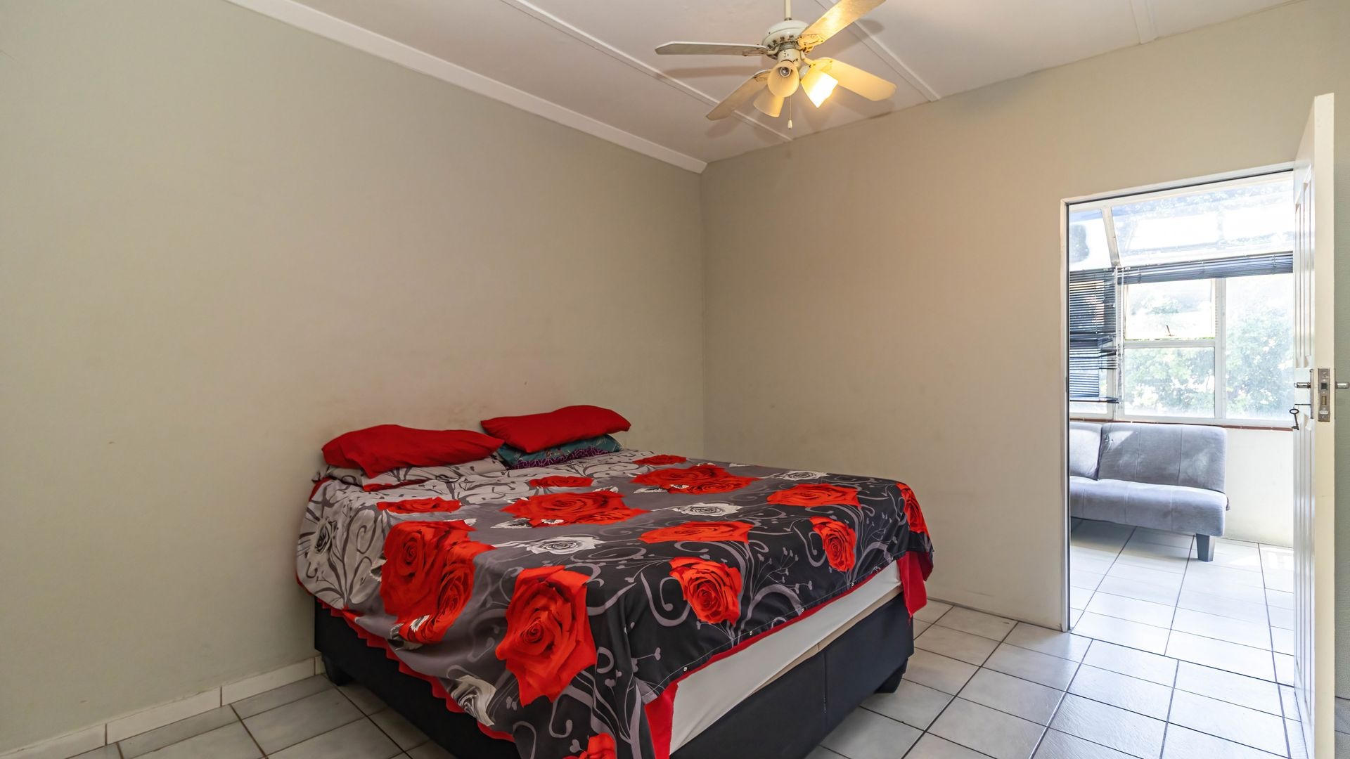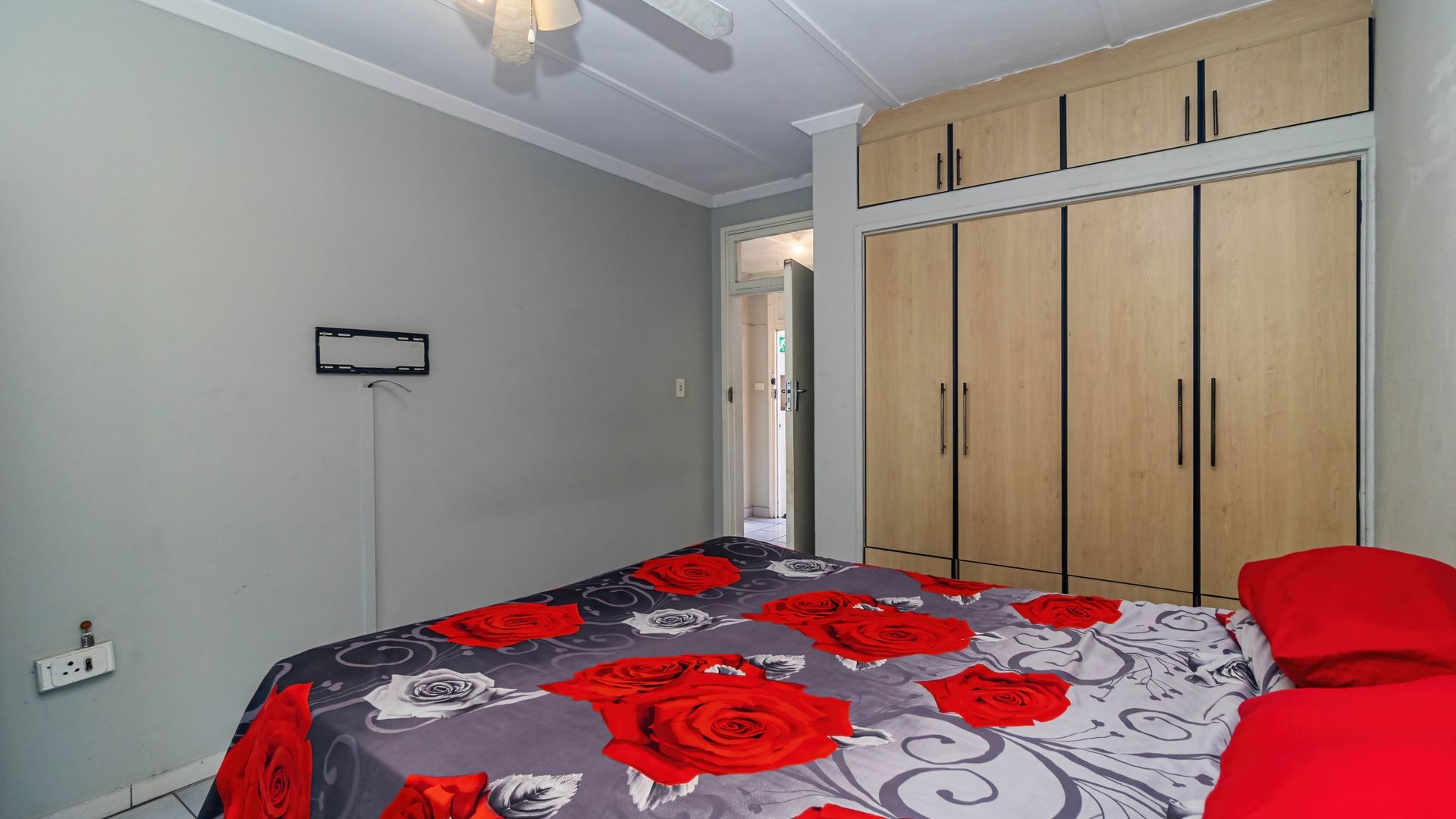 The main bedroom and additional half-bedroom both feature built-in cupboards, offering practical storage and flexibility — perfect for a home office, guest room, or nursery.