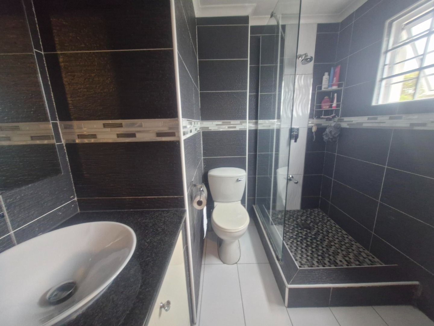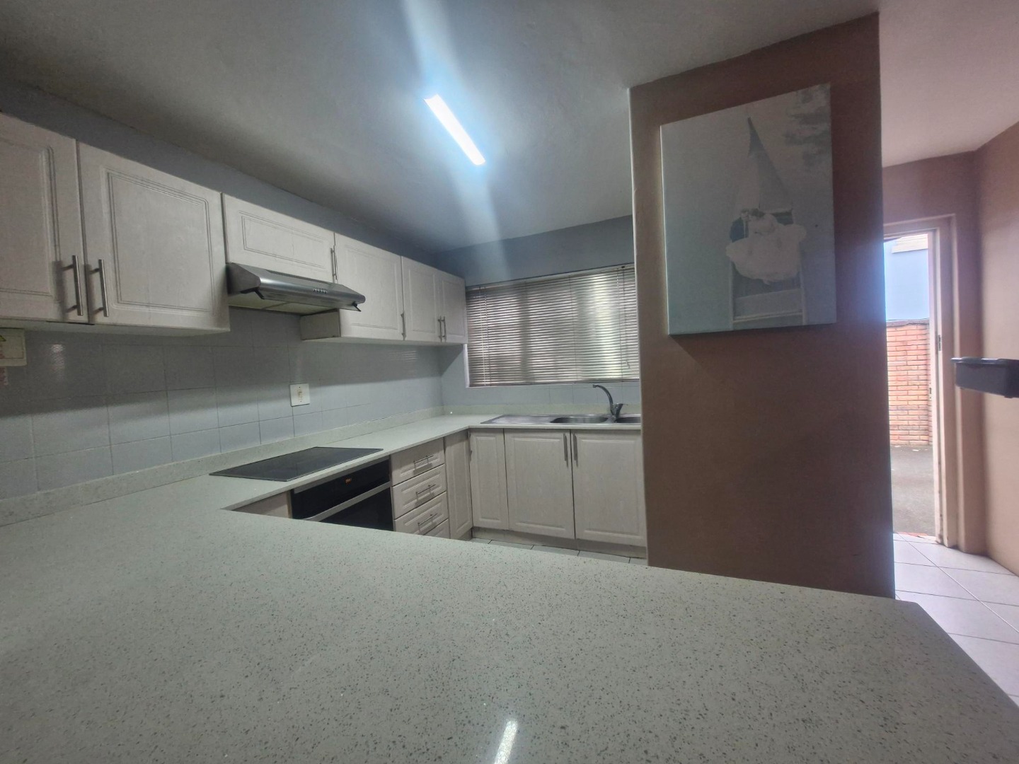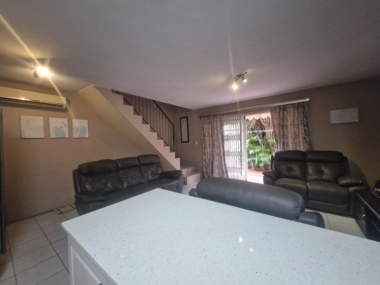 Downstairs, you'll find a modern Caesarstone kitchen leading to open-plan living areas. The spacious, maintenance-free outside entertainment area is perfect for braaing and sipping sundowners. There's even a guest loo downstairs!
