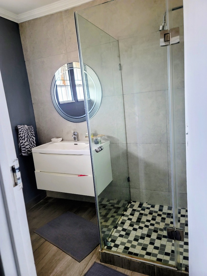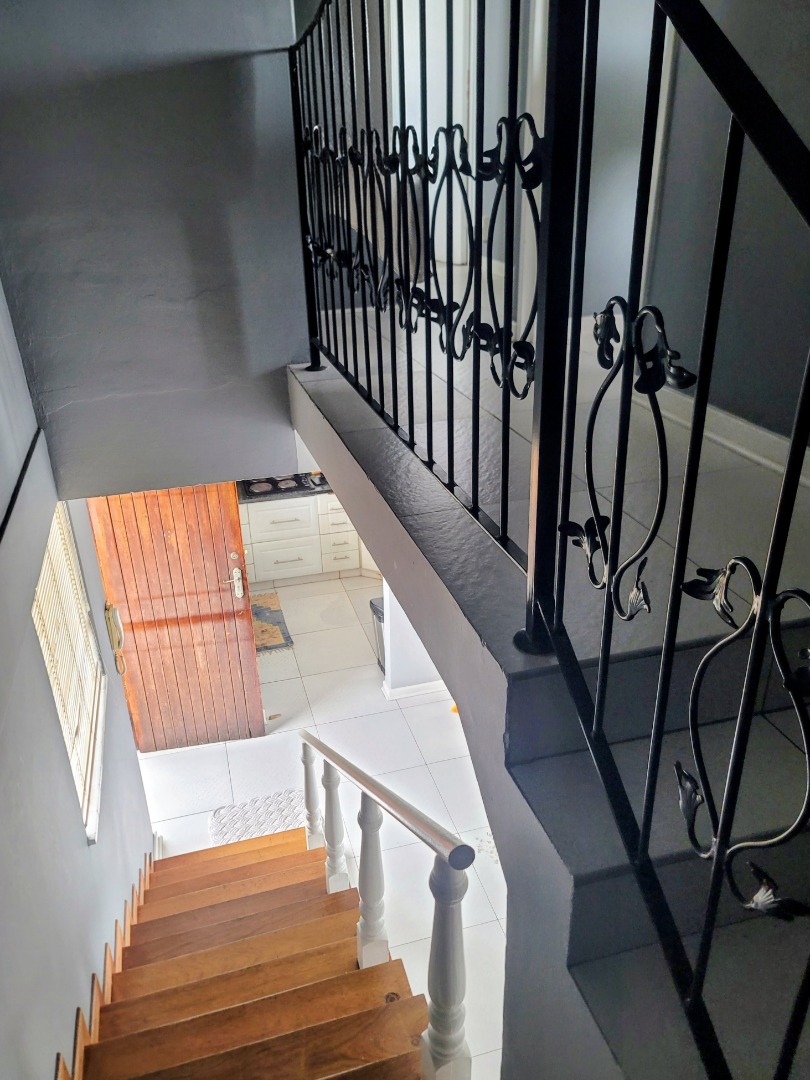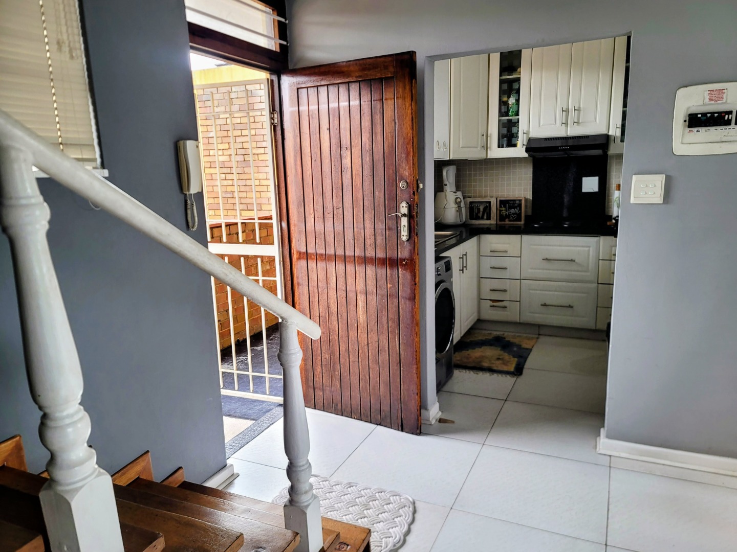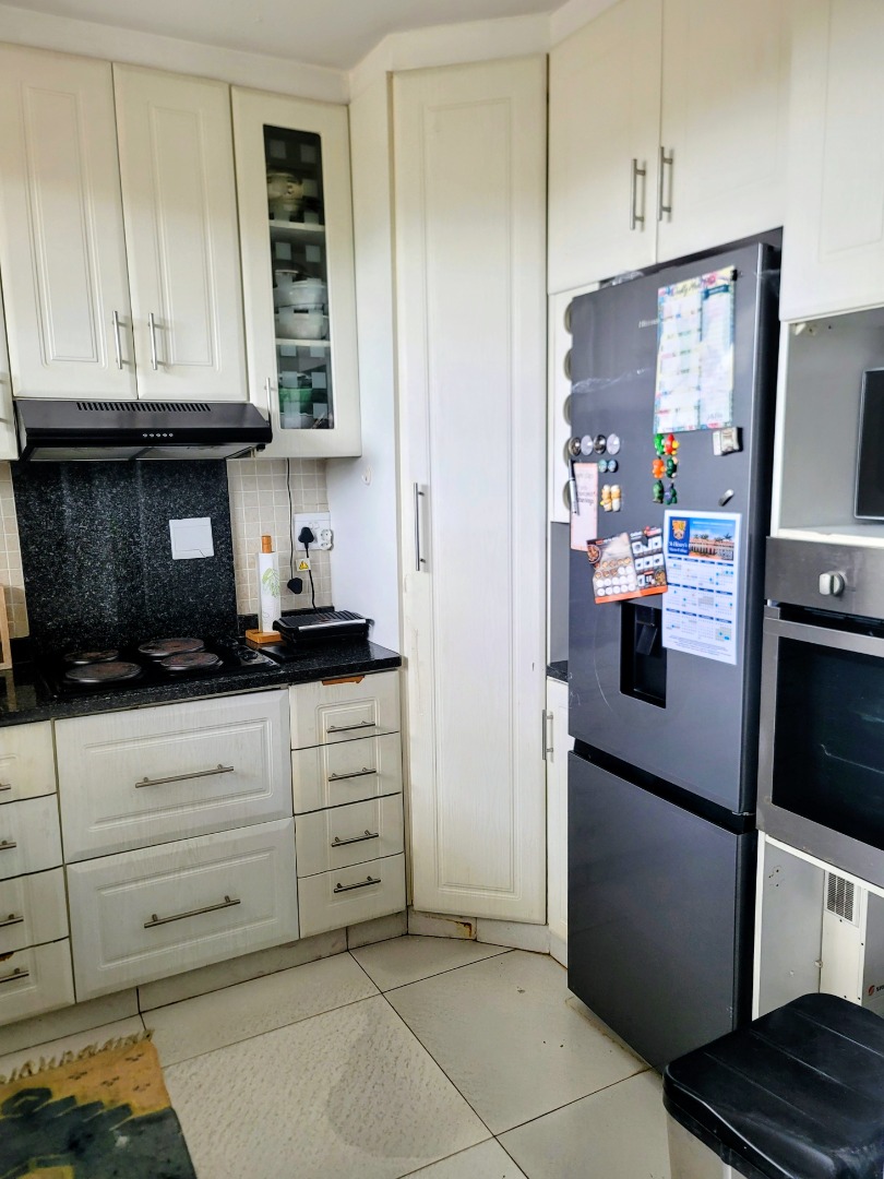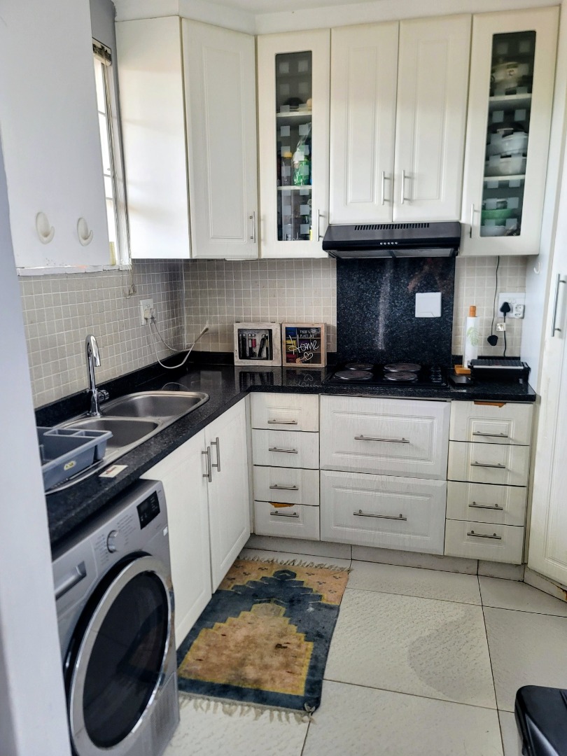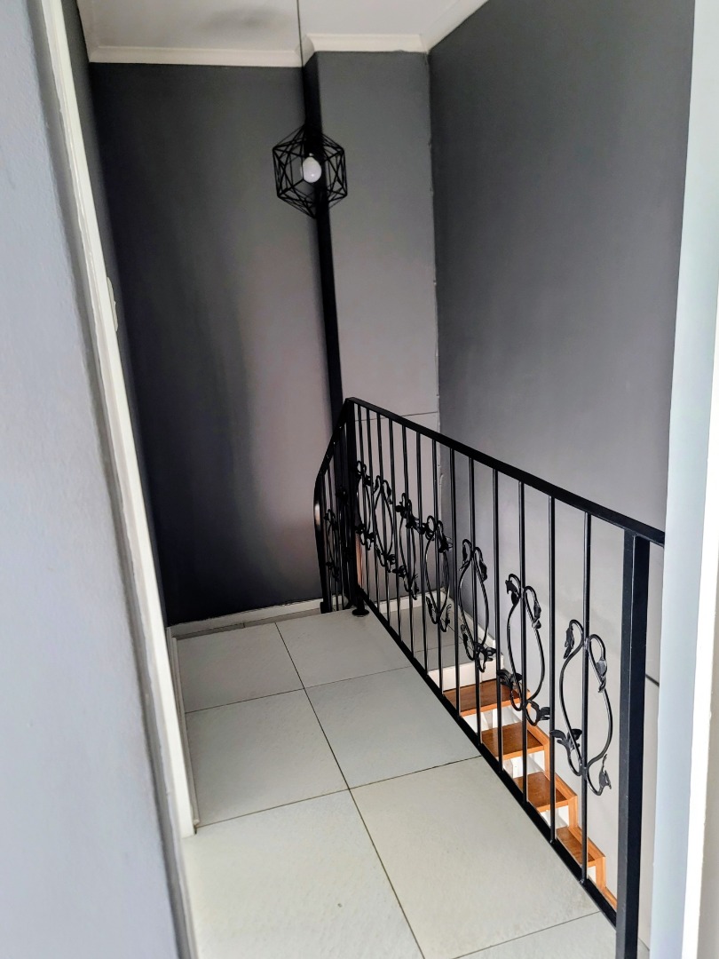 Features a fully fitted kitchen, modern staircase leading to the bedrooms, and an en suite bathroom in one of the rooms. Ample storage includes a big linen closet.