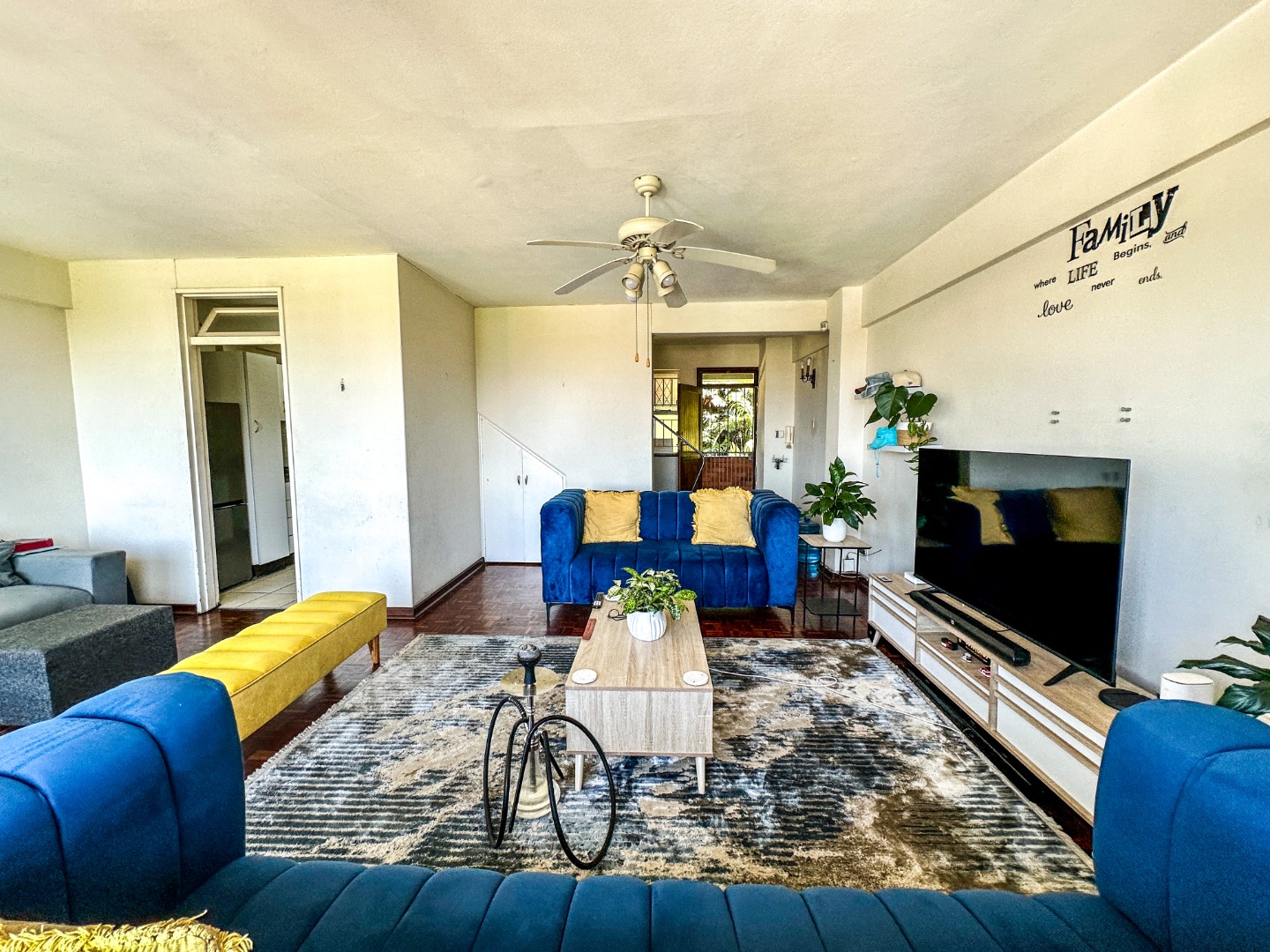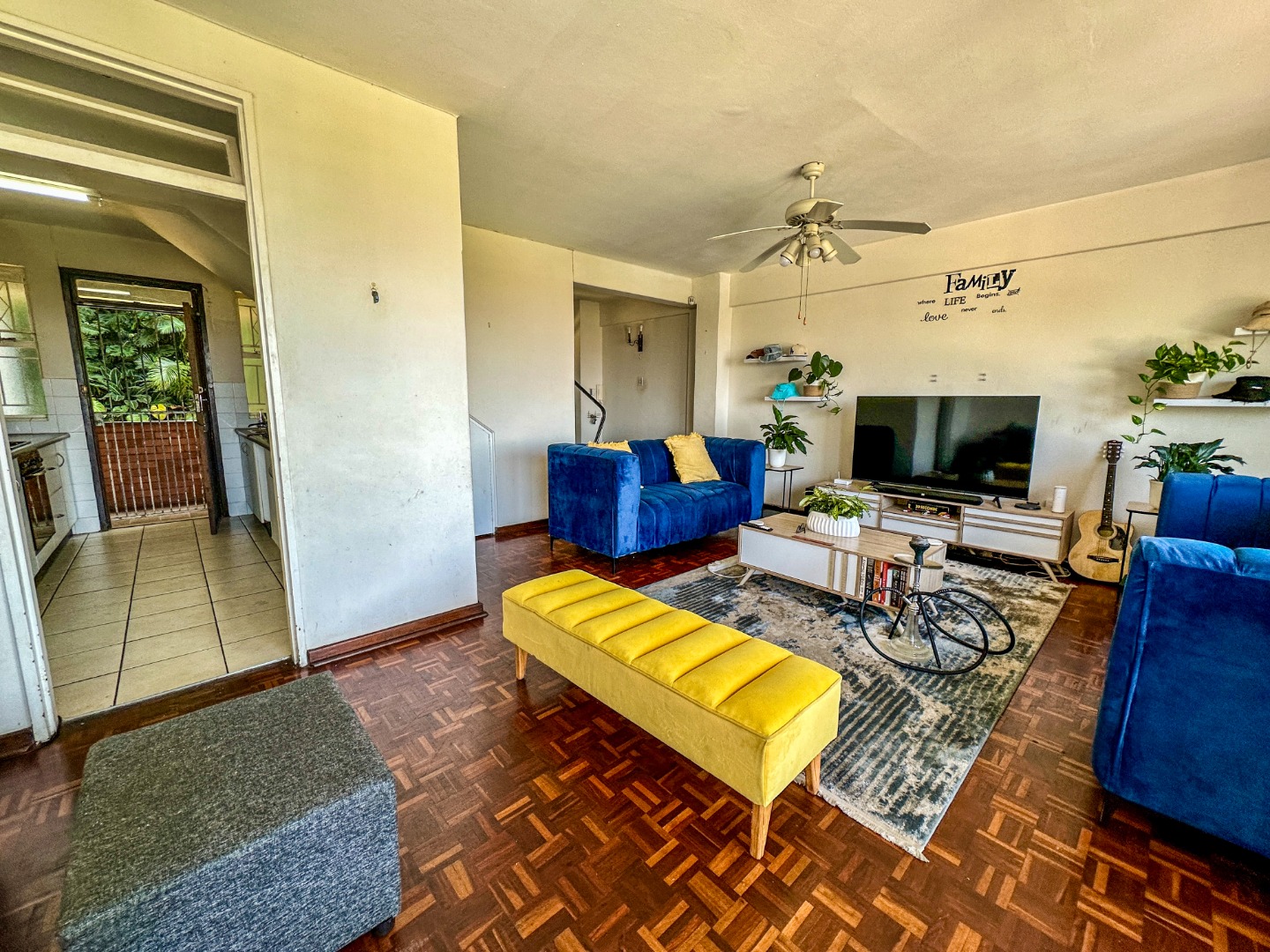 Discover this spacious 116 sqm apartment located in a vibrant suburban area of Durban. Upon entering, you are greeted by a generously sized lounge, bathed in natural light from large windows and a balcony door. The classic hardwood parquet flooring extends throughout the living spaces, adding character and warmth. The layout provides a functional flow, leading to a well-appointed kitchen, ready for your personal touch. This apartment features three comfortable bedrooms, offering ample space for residents or guests. Each bedroom benefits from natural light, creating bright and inviting personal retreats. A single, well-maintained bathroom serves the property, providing essential amenities. Step out onto the private balcony, an ideal spot to enjoy expansive city views and fresh air. This outdoor space enhances the apartment's appeal, perfect for relaxation. The property includes a dedicated garage and an additional parking bay, ensuring convenient and secure vehicle accommodation. Security is a key consideration, with the apartment featuring burglar bars on windows and doors for peace of mind. The building benefits from electric fencing, contributing to a secure living environment within this suburban setting. While offering a solid foundation, this apartment presents an excellent opportunity for modernisation, allowing new owners to infuse their personal style and enhance its inherent charm. Situated in a well-established suburban neighbourhood in Durban, residents enjoy convenient access to local amenities, educational institutions, and transport routes. Key Features: * 3 Bedrooms, 1 Bathroom * 116 sqm Floor Size * Spacious Lounge * Private Balcony with Scenic City Views * Hardwood Parquet Flooring * 1 Garage & 1 Parking Bay * Burglar Bars & Electric Fencing * Located in Suburban Durban