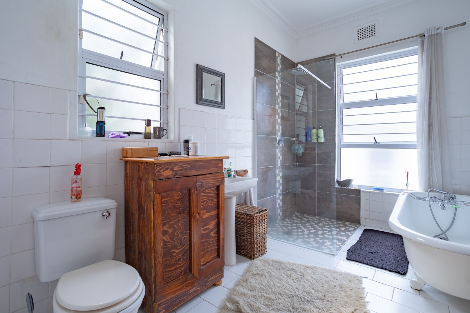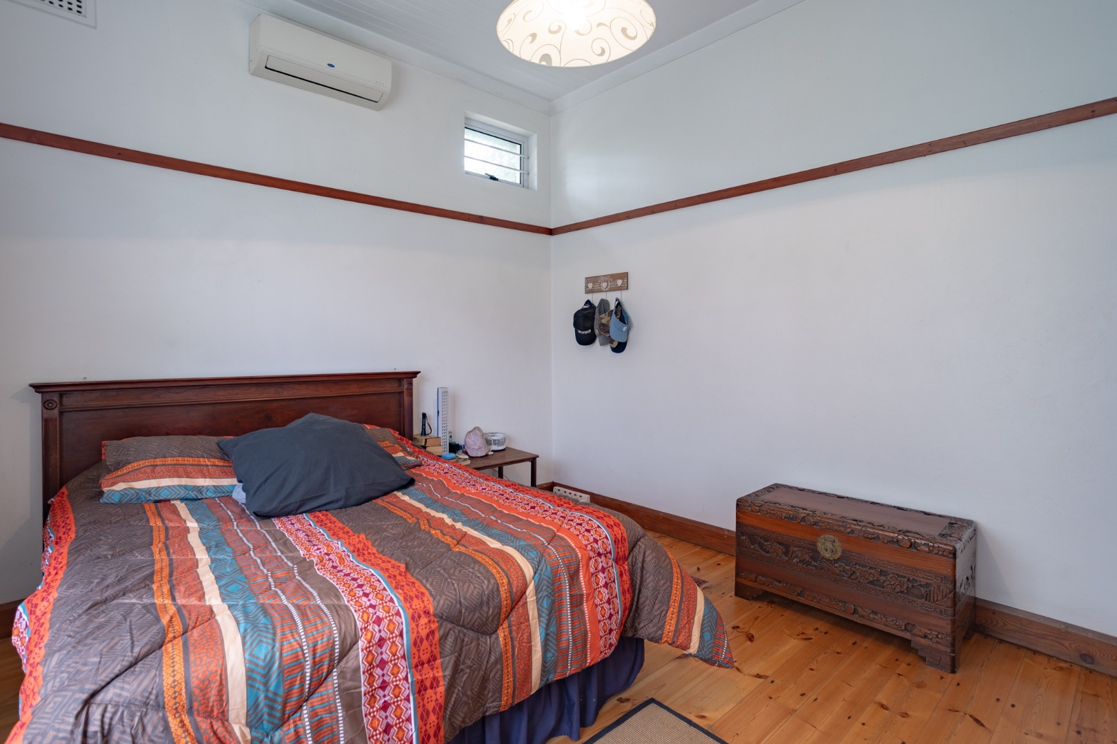 All three bedrooms are generously sized, each fitted with built-in cupboards and air conditioning for year-round comfort. The renovated family bathroom includes a shower, bath, toilet, and basin.