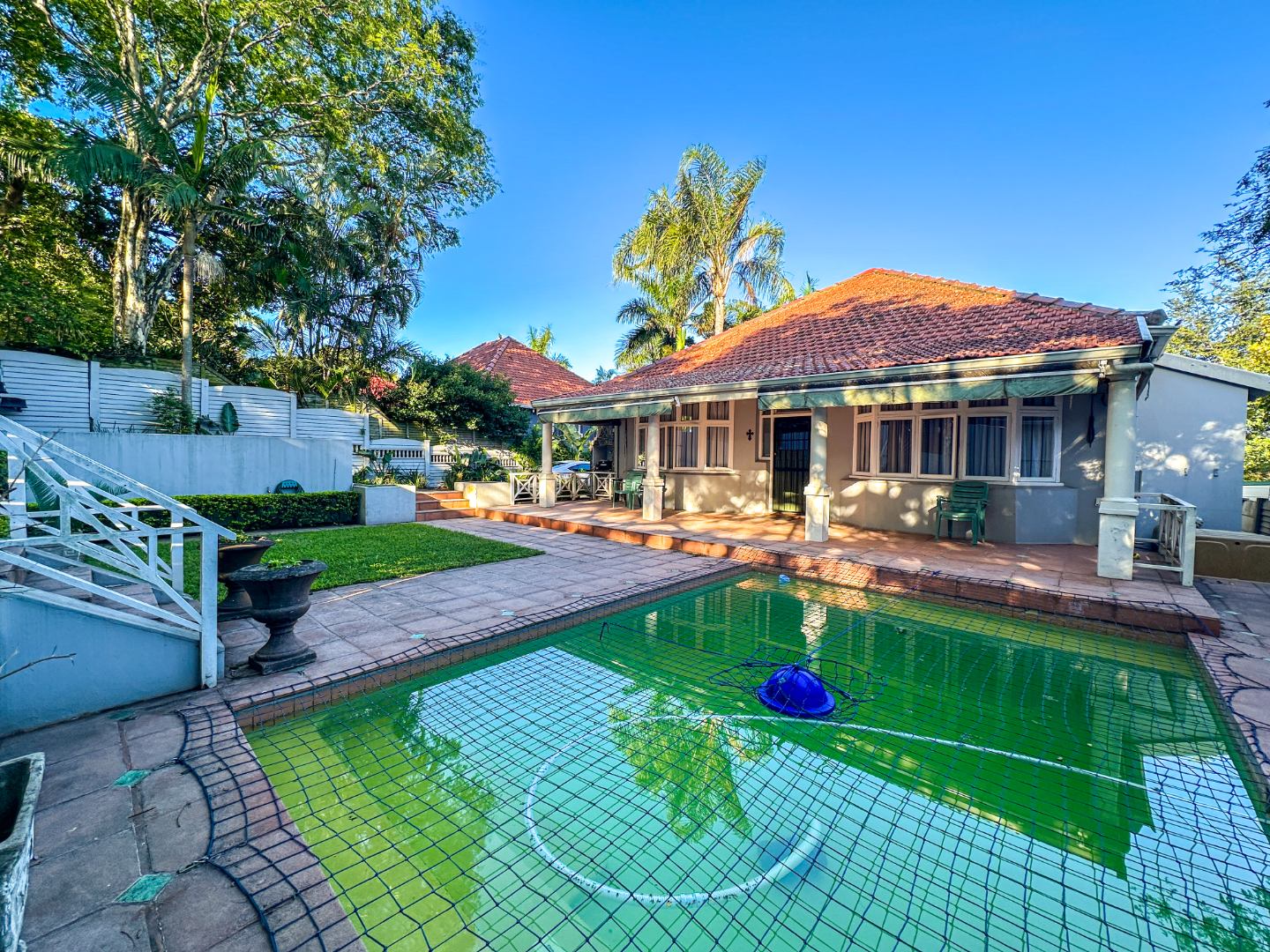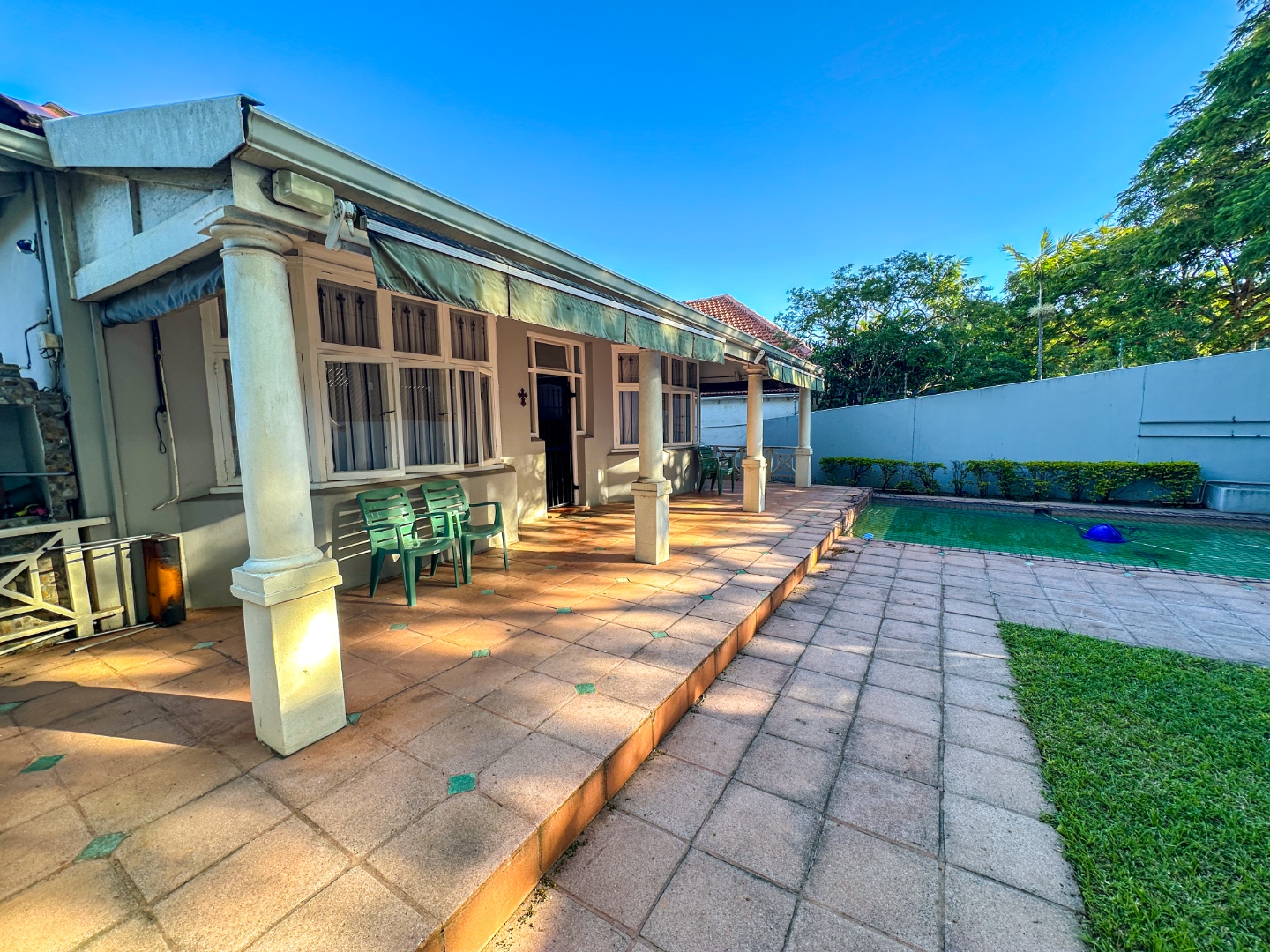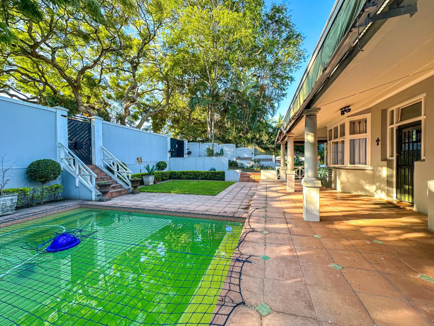 Perfectly positioned in the sought-after suburban area of Glenwood, Durban, this spacious 3-bedroom, 2-bathroom residence offers a comfortable lifestyle. With a generous floor size of 635 sqm, the property boasts a welcoming exterior featuring mature palm trees, paved outdoor areas, and a private swimming pool, hinting at its potential for relaxed living.