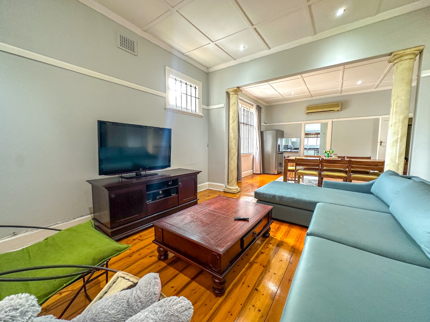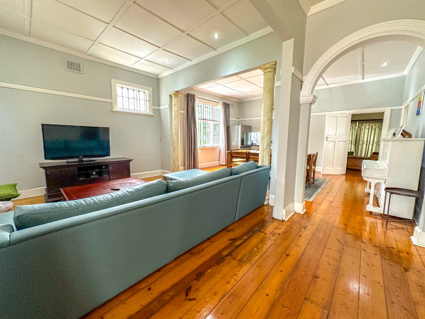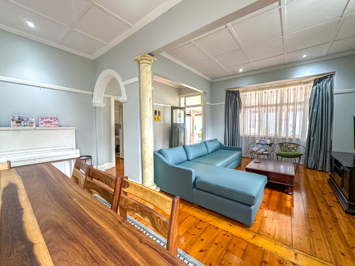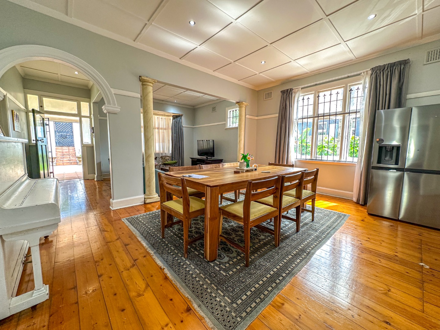 * Open-Plan Living with Wooden Floors & Coffered Ceilings