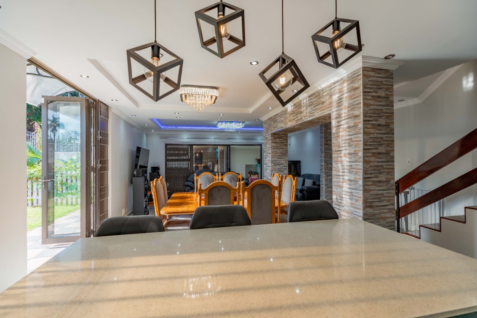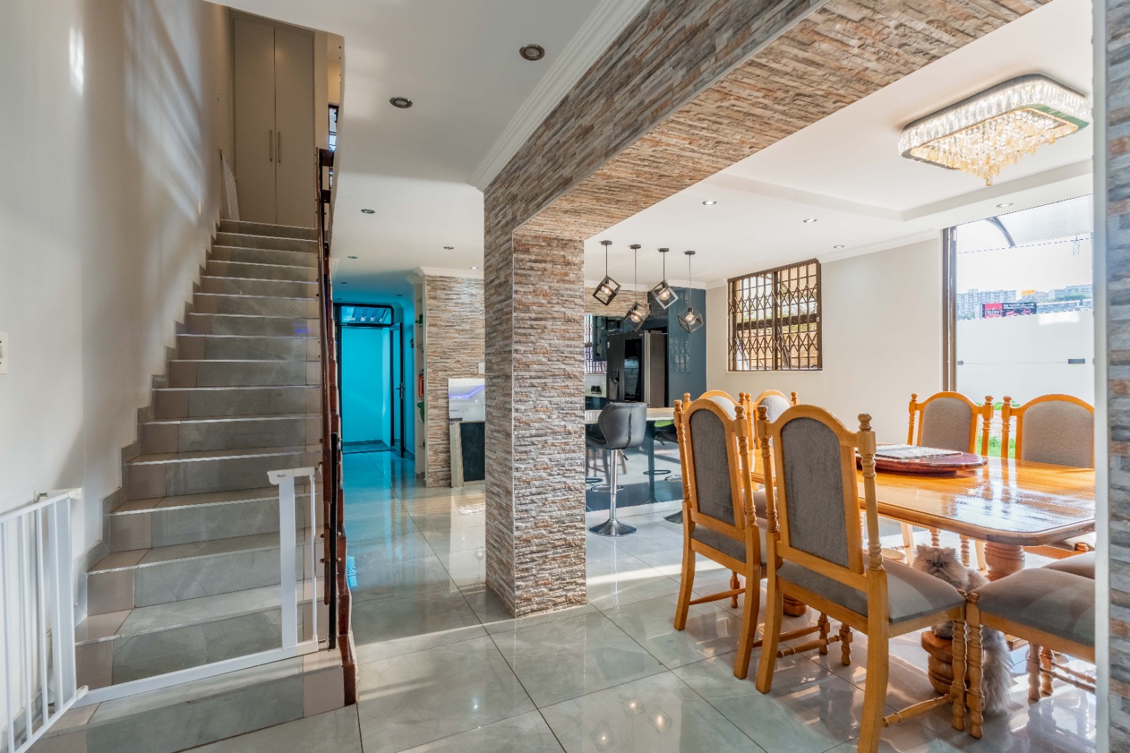 Additional features include a single garage, ample off-street parking, staff quarters, and extra storage space. The property is well-secured with an access gate, alarm system, electric fencing, and intercom, offering peace of mind. Pet-friendly and well-located, this home presents an excellent opportunity to secure a flexible and well-appointed property.