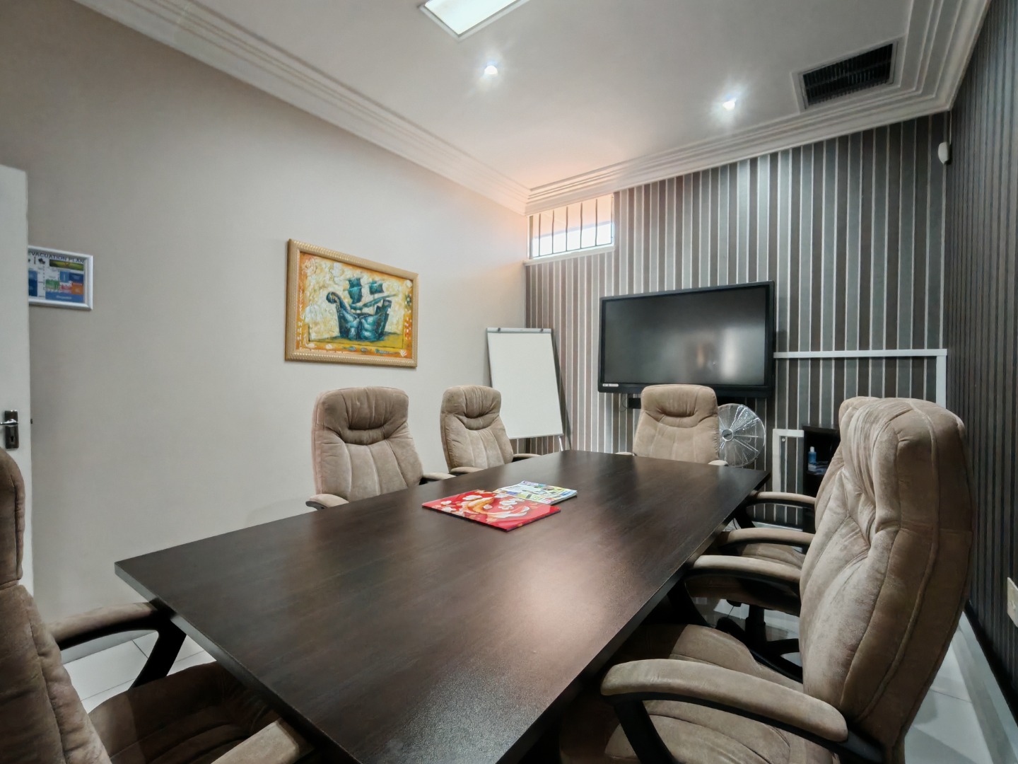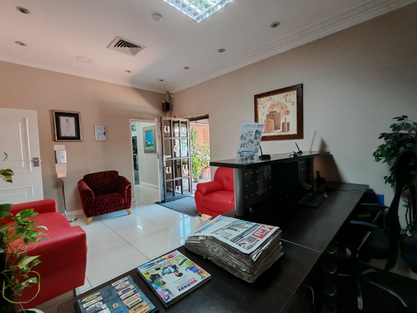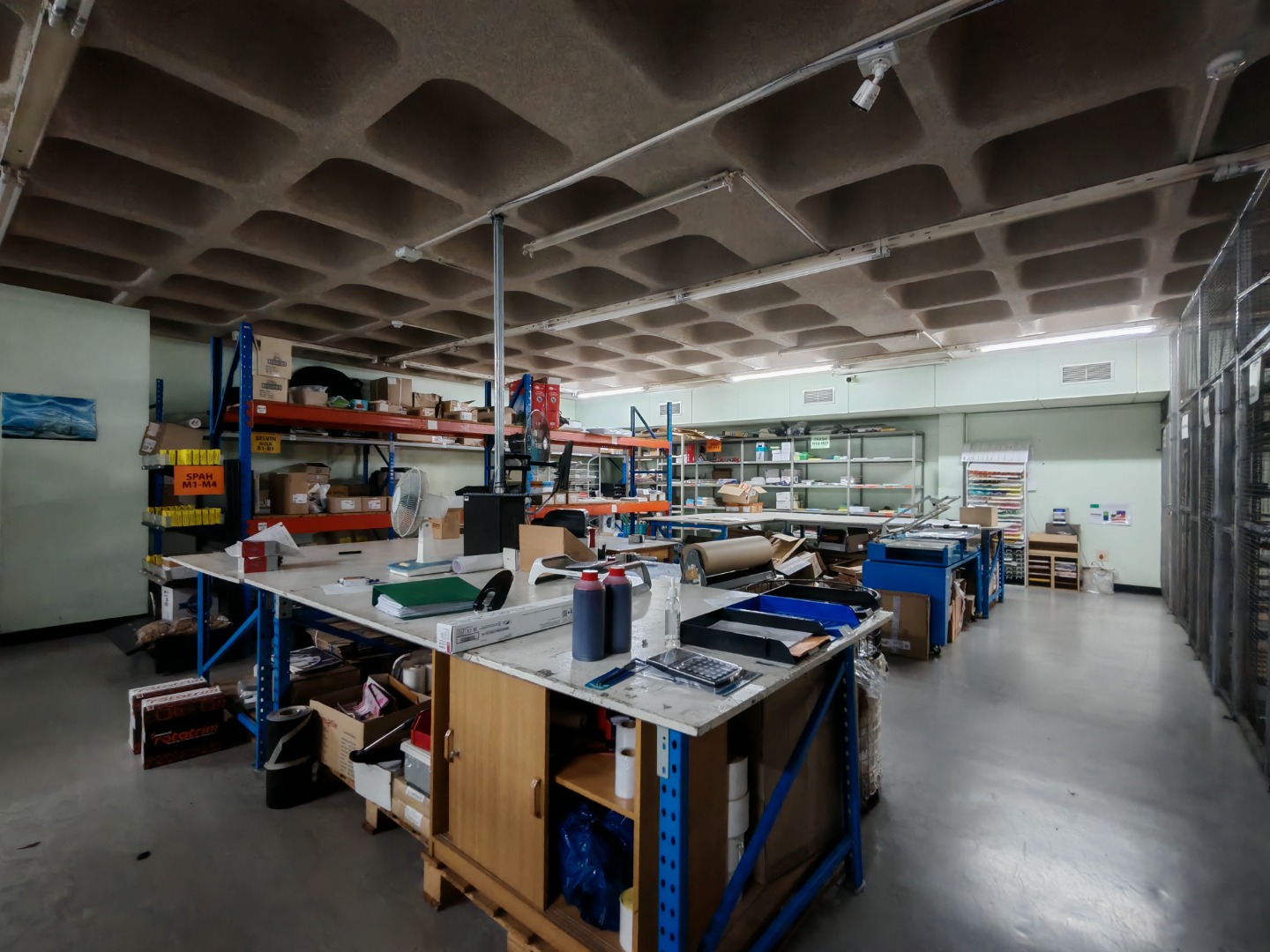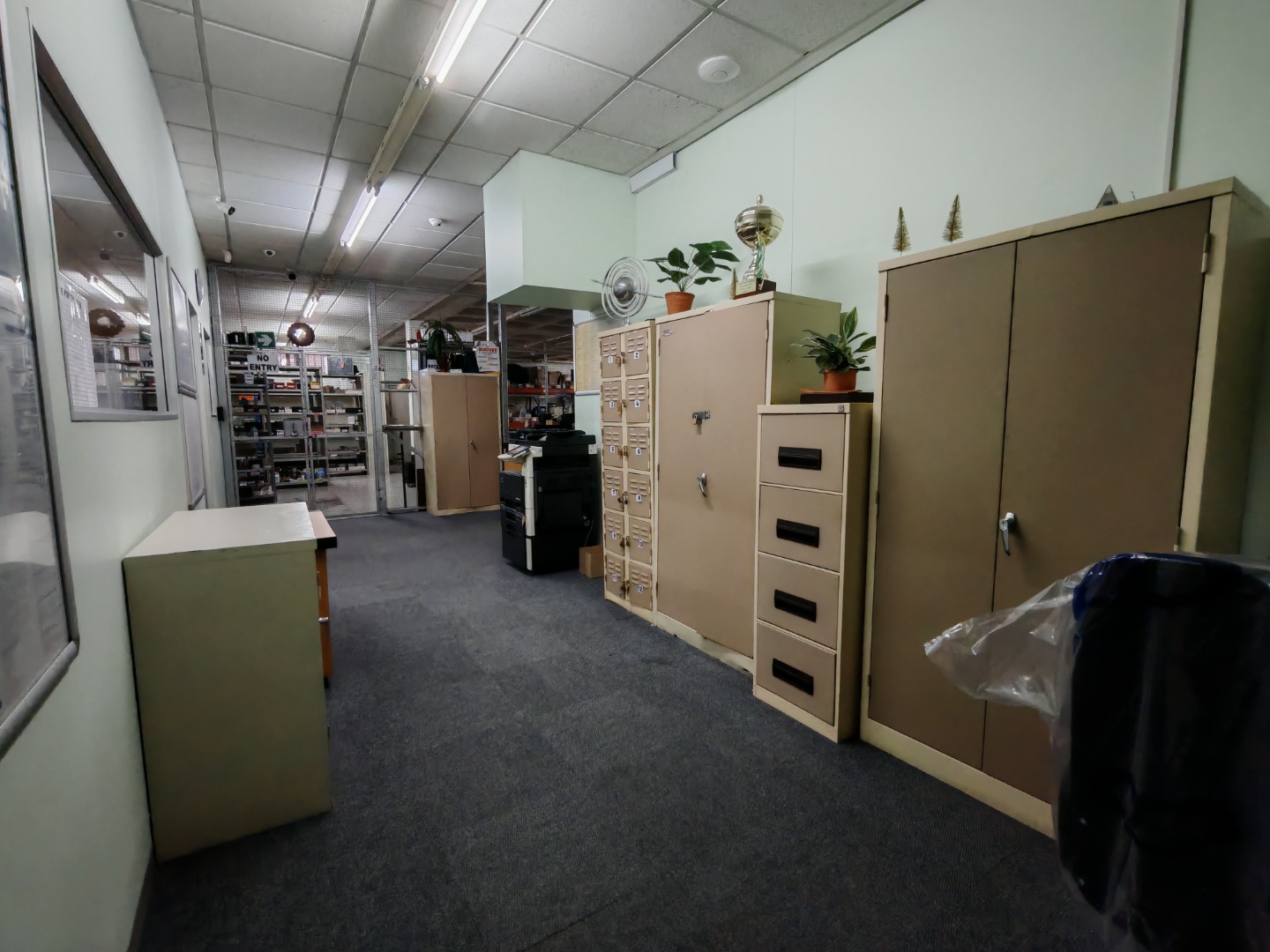 The property is currently being used as a printing business, highlighting its suitability for similar operations or other service, retail, office, or light industrial uses. The front section comprises approximately four well-appointed offices, along with a welcoming reception area that creates a strong first impression.