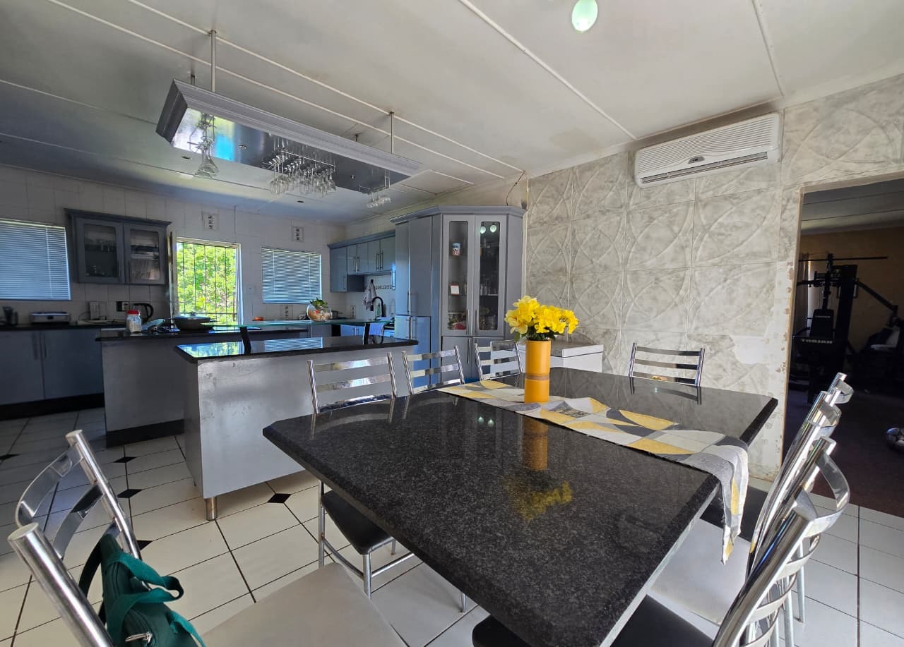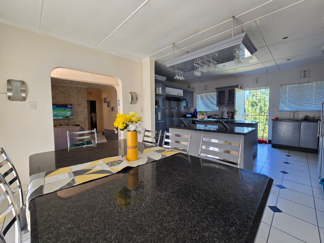 Discover this inviting four-bedroom, two-bathroom family home situated on a generous 757 sqm erf in the established suburban area of Greenwood Park, Durban. This residential sale offers a comfortable lifestyle with its practical layout and desirable features, ideal for families seeking space and convenience. The interior boasts an open-plan design, seamlessly connecting the lounge, dining area, and kitchen. Tiled flooring extends throughout, ensuring easy maintenance. The living spaces are enhanced by modern ceiling light fixtures and feature walls, providing a contemporary feel. The kitchen is well-appointed with granite countertops, ample blue-grey cabinetry, a central island, integrated oven, double sink, and even an overhead wine glass rack, making it perfect for both everyday living and entertaining. Accommodation includes four spacious bedrooms, with one featuring an en-suite bathroom, complemented by a second well-appointed bathroom. The layout provides comfort and privacy for all residents. Step outside to a private oasis featuring a refreshing swimming pool with a tiled patio surround, perfect for relaxation and aquatic activities. The property also offers a well-maintained garden, paved driveway, and three open parking spaces, catering to all your outdoor needs. This home is pet-friendly and wheelchair-friendly, ensuring accessibility for everyone. Security is addressed with an access gate and security gate, providing peace of mind. Greenwood Park is a vibrant Durban suburb known for its community feel and convenient access to local amenities, schools, and transport routes, making it a sought-after location for family living. Key Features: * Four Bedrooms, Two Bathrooms (one en-suite) * Open-Plan Living, Dining, and Kitchen Areas * Modern Kitchen with Granite Countertops and Ample Cabinetry * Private Swimming Pool and Tiled Patio * Spacious Garden and Paved Driveway * Three Open Parking Spaces * Pet-Friendly and Wheelchair-Friendly * Access Gate and Security Gate * 757 sqm Erf Size