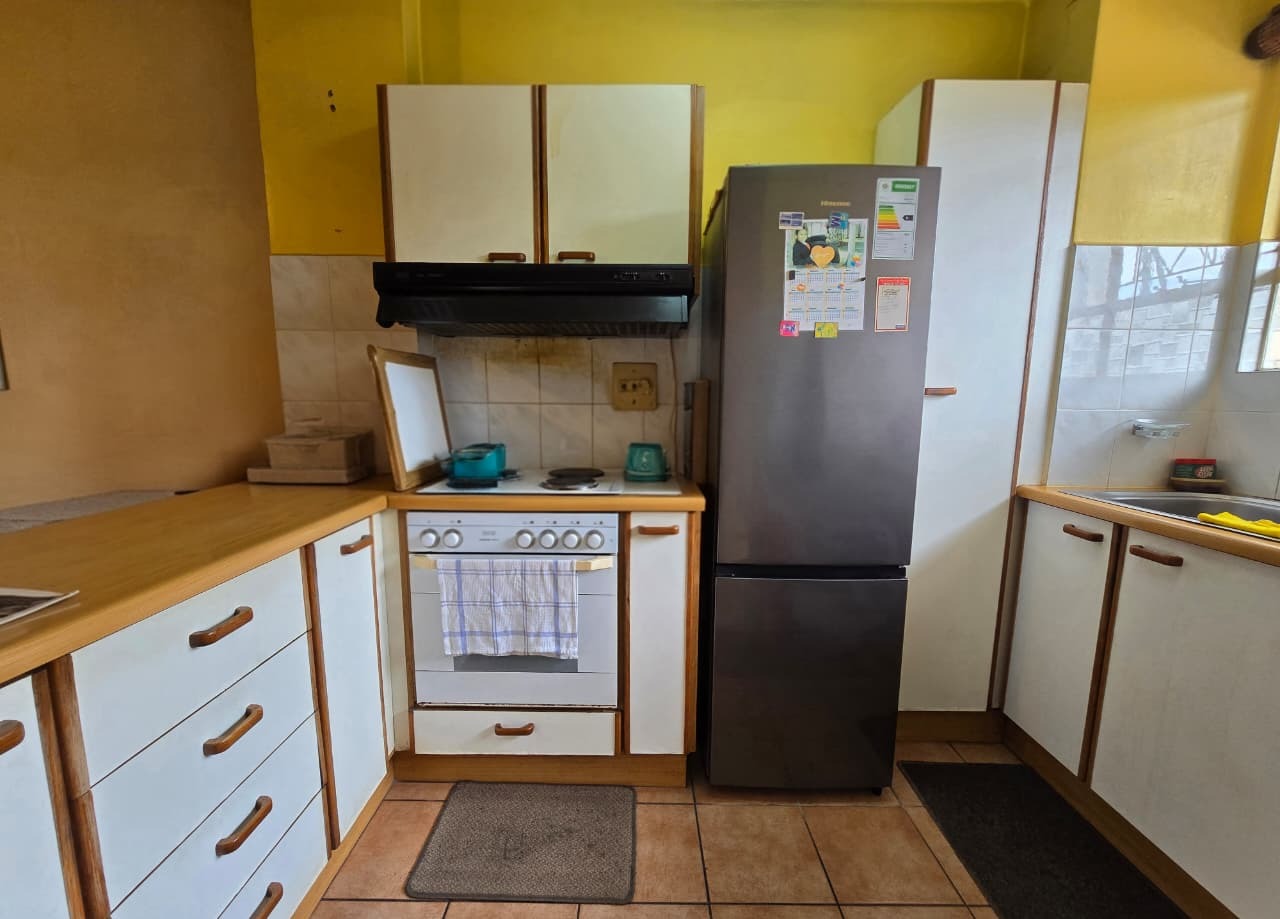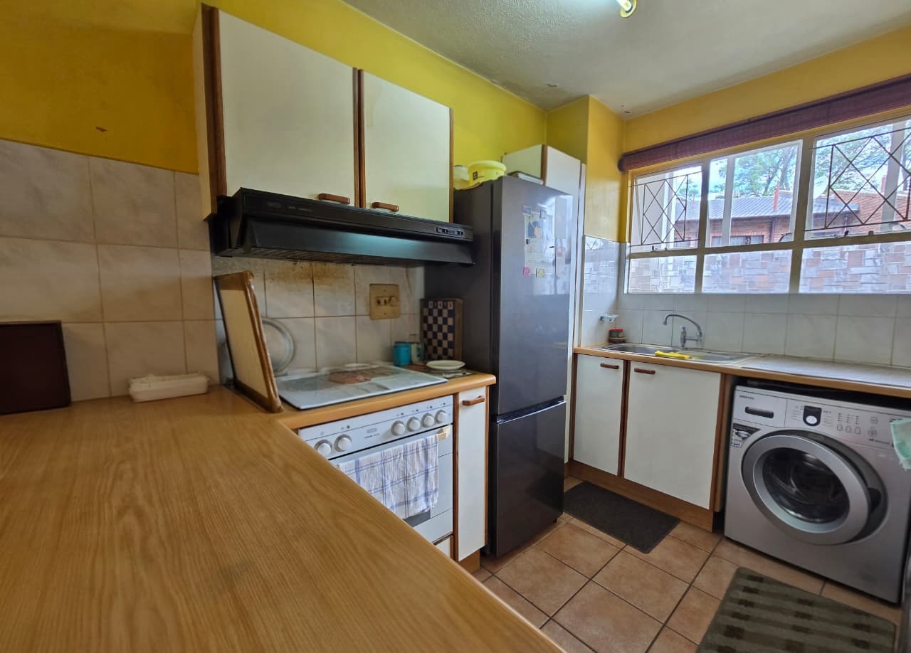 Enhancing the lifestyle offering, the apartment includes a private, covered balcony with tiled flooring, perfect for enjoying scenic views of the lush green garden and mature trees. This outdoor space provides an ideal spot for relaxation. The complex further benefits from a large, manicured lawn and offers two dedicated parking bays. The property also features a secure fence and an access gate, contributing to peace of mind within this complex environment.