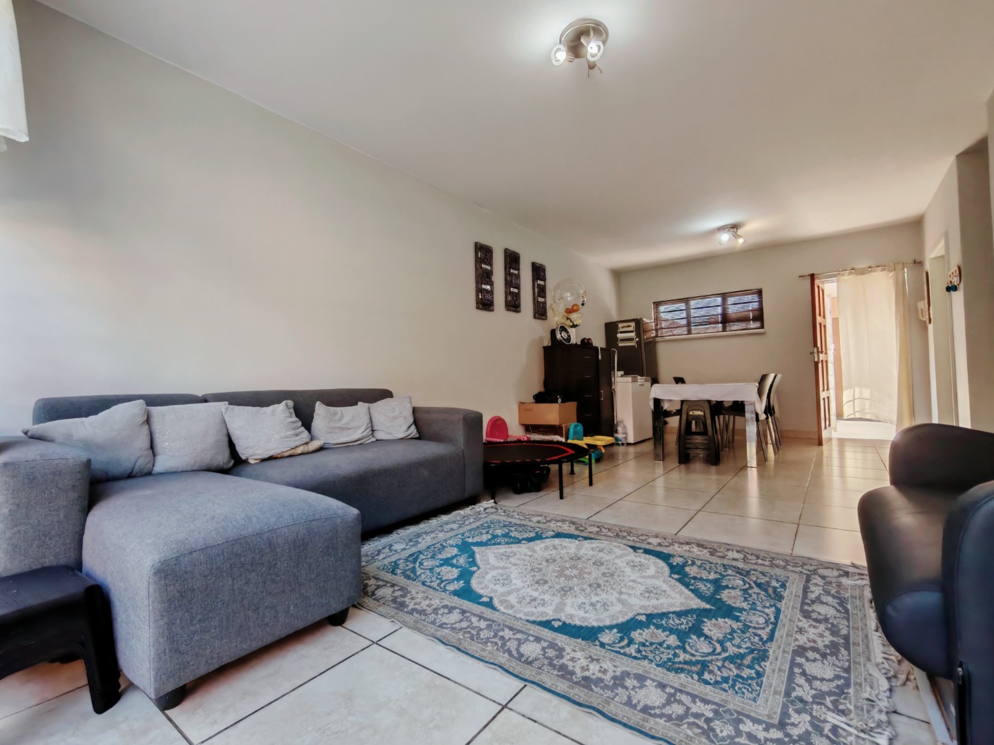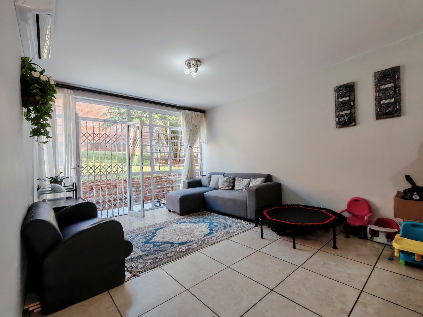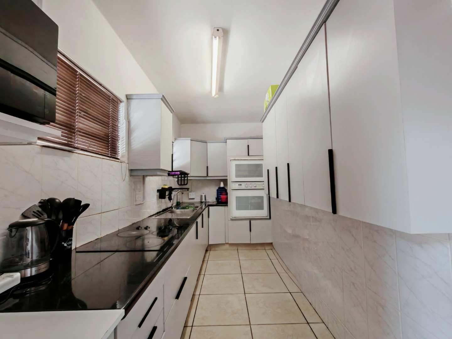 The kitchen is tastefully finished with beautiful cupboards and flows seamlessly into a cozy open-plan lounge and entertainment area. This inviting living space is filled with natural light and opens via sliding doors onto a small private patio and communal outdoor area — perfect for relaxing or enjoying afternoon coffee.